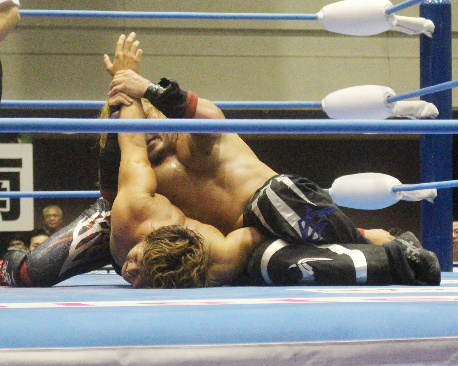 【3勝2敗=6点】○河上隆一 菊田一美(10分11秒 変形膝十字固め)【5敗=0点】×野村卓矢 阿部史典<第5試合 「最侠タッグリーグ」ストロングブロック公式リーグ戦 20分1本勝負>