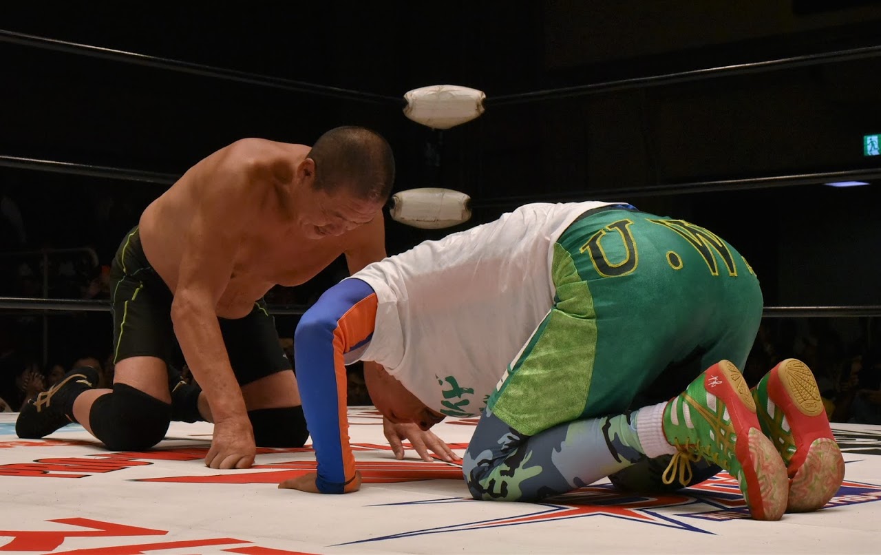 垣原「これがUWFです。最高の試合でした。冨宅さん、最後残念だったけど、すごいよ。僕の同期です。(出場選手たちや関係者たちをリングへ)僕には、こんな最高の仲間がいます。だから病気になんか負けるわけない。心配なのは、高山選手です。みんなで、高山選手のことを応援していきましょう! 高山はあれですよ、彼は帝王です! 僕がここまで回復してリングに戻ることができたんです。高山、帝王、オマエは絶対大丈夫。高山、絶対大丈夫だよ! 高山! 高山! 絶対大丈夫だからな! 負けるなよ! 高山は絶対大丈夫、大丈夫! みんなが応援してるし、絶対応援しよう。絶対大丈夫、高山は絶対このリングに戻ってきます。みなさんよろしくお願いします。これからも走っていきます。きょうはありがとうございました!(UWFのテーマが鳴って大「カキハラ」コールでエンディング。)【垣原のコメント】