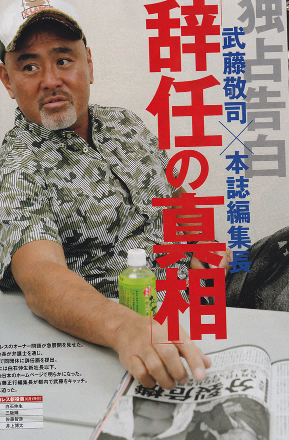 そして武藤は新団体旗揚げの準備をしている、といっても株の買い戻しの交渉は武藤の代理人(弁護士)を通じて継続しているが、おそらく武藤は決裂すると見ている。武藤が要求しているのは株100%と商標権の買戻し、しかし白石社長は武藤の慰留には務めるが株50%を譲る共同経営案も出しているが、白石社長の考えるフロント主導による合議制でのマッチマークと鎖国は譲る気はなく、妥協点は見出せていない。