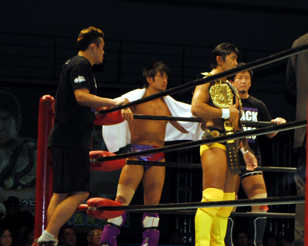 試合後に第4試合で河野真幸をワイルドボンバーで下した征矢学が大森の敵討ちといわんばかりに挑戦を表明、船木も敗れたらGET WILD解散という条件を突きつけ、征矢も条件を飲んで三冠初挑戦が内定となった。船木vs征矢となると征矢にはシングルでの実績があまりないことから、征矢が船木に勝てる可能性が低いのではと思っているファンが多いと思う、だが征矢は期待できる不思議な雰囲気を持ち、また背水の陣に自ら追い込むほど力を発揮する選手なのではと思う。三冠挑戦はおそらく最強タッグ以降になるだろうが、自分は征矢に期待してみたいと思っている。