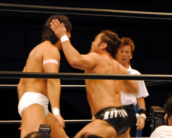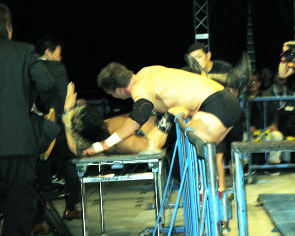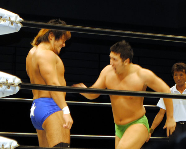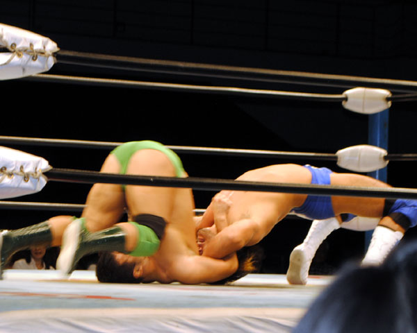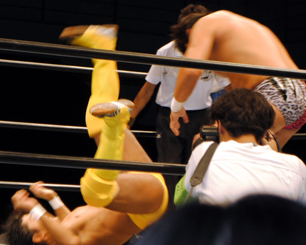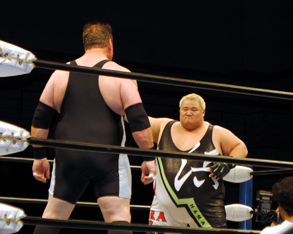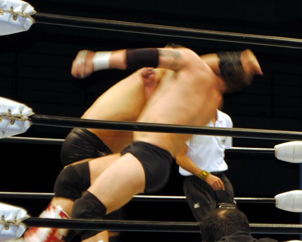 速攻勝負が無理とわかったのか今度はグラウンドの攻防となるが、グラウンドとなると船木が圧倒、グラウンドを嫌った大森がチョップから打撃戦へと持ち込み執拗にスリーパーを仕掛けるが、船木がバックドロップを決めると試合は大きく動き、船木のキックをキャッチした大森がアックスギロチンドライバーを炸裂させ、勝負と見てアックスボンバーを狙うが船木がブロック、それでも大森はショートレンジのアックスボンバーを決めるも、もう一発を狙ったところで船木がハイキックで迎撃し掌打の連打から再び浴びせ蹴りが炸裂、最後はハイブリットブラスターが決まって3カウントで終わってみると試合時間は6分33秒、速攻勝負での試合だったが秋山準戦と比べると自分的には呆気なかったというのが感想、ハイブリットブラスターが決まった瞬間ファンがため息をついたところを見ると“ああやっぱり”と思っていたファンのほうが多かったのではないだろうか・・・