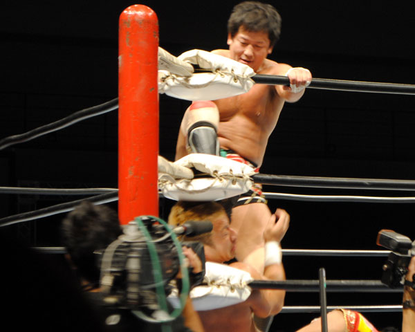 第7試合のアジアタッグ王座決定戦 金本浩二、田中稔のジュニスタvs本間朋晃、宮本和志のターメリック・ストームは、ターメリックの二人が本間がGBH、宮本が大阪プロレスやアパッチなどでヒールをやっていた経験を生かしてラフ一辺倒で試合の主導権を握りファンの顰蹙を買い捲るが、宮本もジュニスタの二人をまとめて担いで投げ捨てるなどパワーファイターぶりを見せつける。ジュニスタも分断されることが多く主導権を握れなかったが、稔が懸命に粘って最後はFIREBALLスプラッシュで宮本を降し3カウントでジュニスタが新王者に、金本も新日本所属ながらも全日本に定着してから初タイトルとなったが、金本もプライベートも含めて散々なことが続いていただけに今回の王座奪取が厄落としになればいいのだが・・・