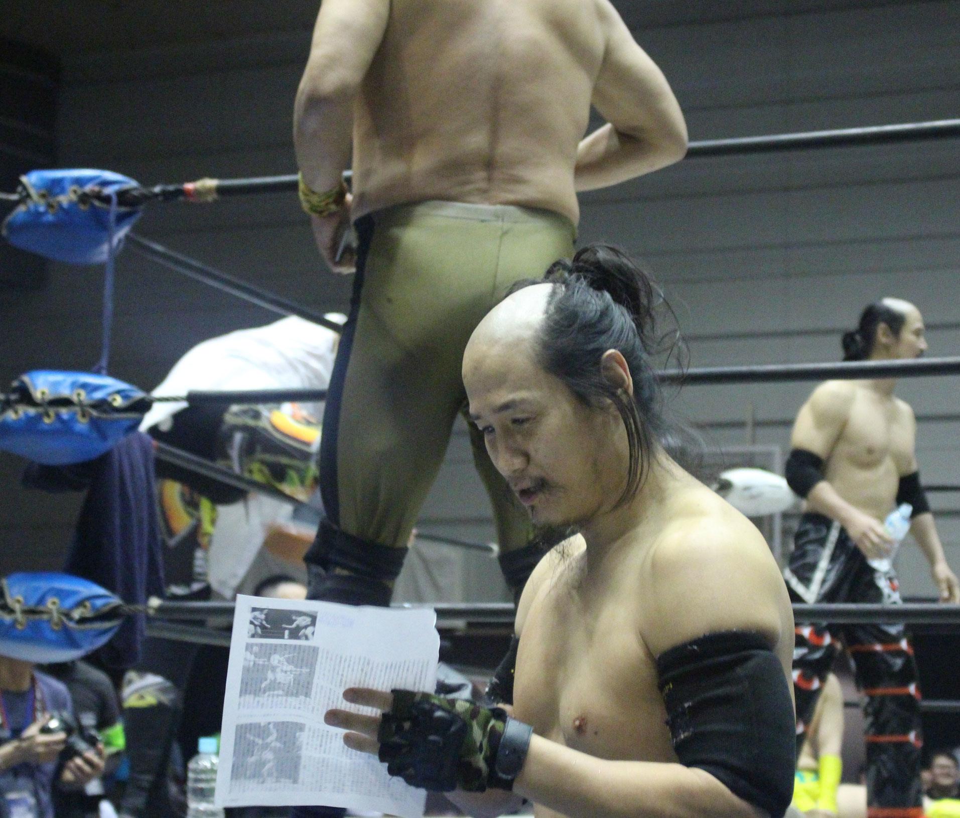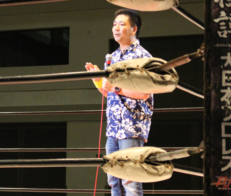 【大地の話】「正直、試合に関してはなんもない。なんもないですよ…。自分がホントに情けなくてしょうがない…。それ以上の何もでないし。強くなってきたつもりでいたし。大神としても、個人としてもね。けど、そんなに現実は甘くなかったし。これ以上なんもしゃべることもないし。自分を見直す期間かな。個人としてもいまやってる大神としても。あとちょっとしたらタッグリーグだって始まるし。俺一人できょう負けて取れなくて、神谷の足手まといにもなりたくないし、しっかり見直すよ。あと、個人的な意見で一つ言うなら、鈴木秀樹がベルトを持ってようが持ってなかろうが、個人的にもう一度シングルマッチをしたいです。いまじゃなくていいし、もうちょっとちゃんと鍛えて出直してくるんで。そのときにまた、鈴木秀樹とシングルマッチをやりたいです。きょうの負けをネガティブにとらえないで、明日に向かう一歩としてやっていきます。ホントすいませんでした、取れなくって。