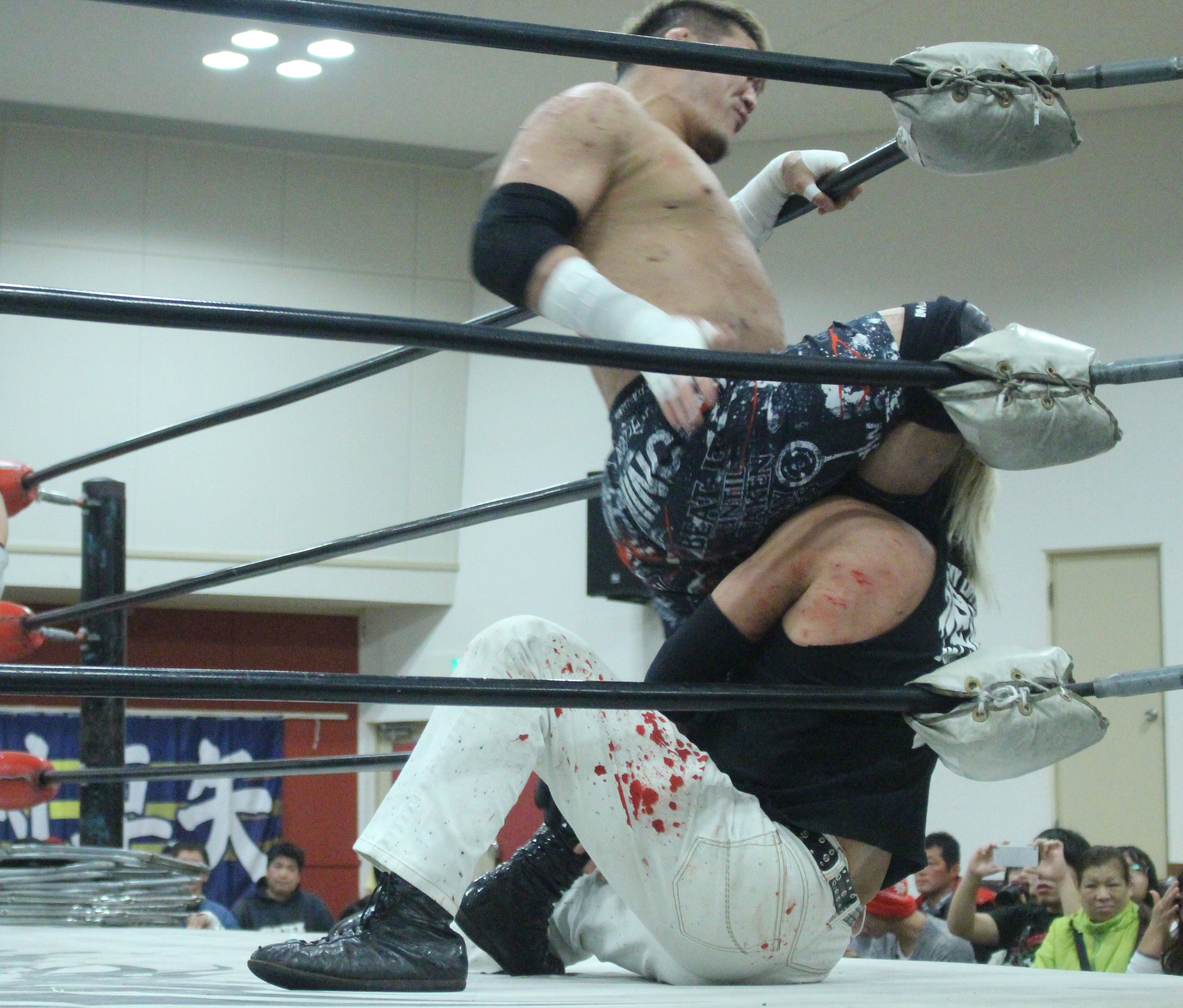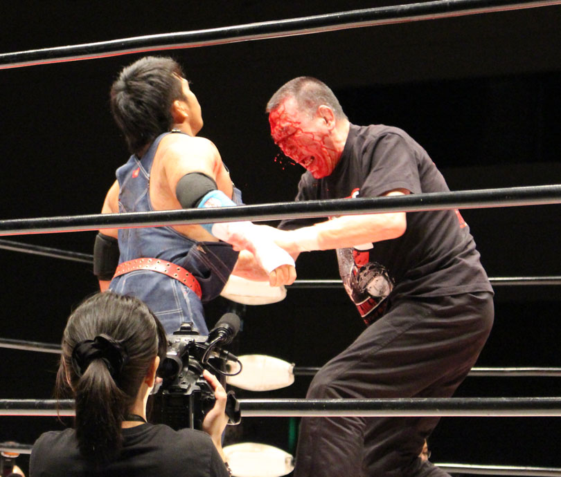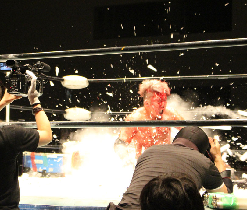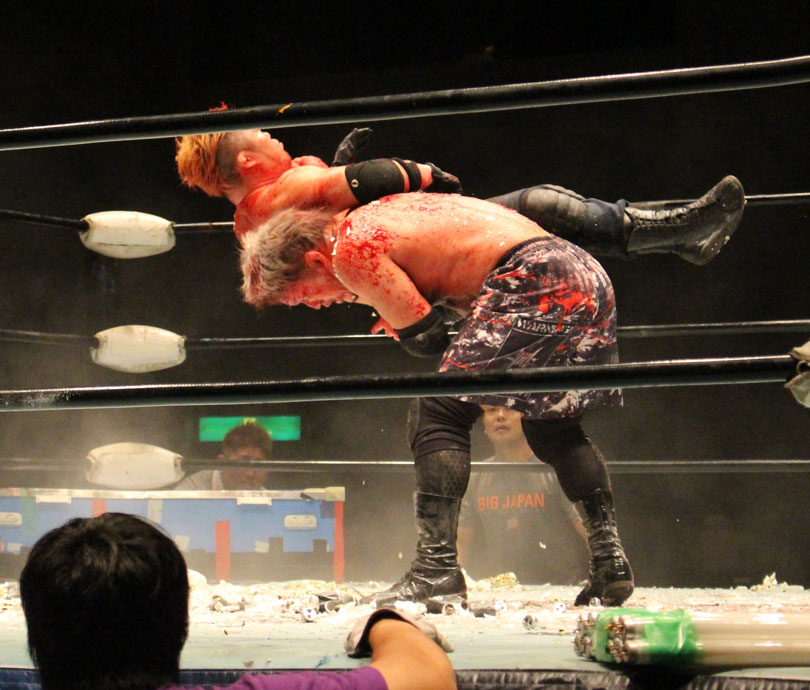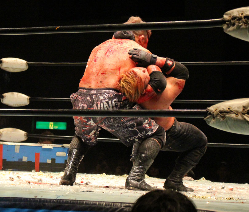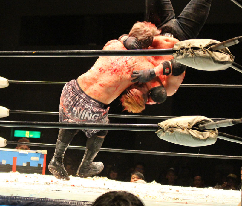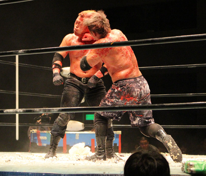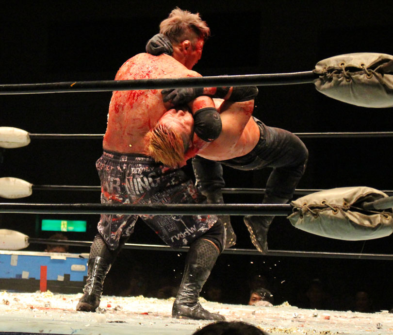 (いまの大日本のデスマッチに何を取り戻したい?)デスマッチとストロングって対極のところにいるけど、結局は同じで。俺はここ(ハート)だと思ってるんで。ストロング、ストロングと言われてるからってデスマッチが前座じゃいけない。大日本はデスマッチの団体だと思って俺は上がっている。下の世代もそうですけど、全体がもっと牙を剥いて、やってやろうという気持ちでやれたらいいんじゃないですか」【高橋の話】「悔しいよ、そりゃ悔しいよ、せっかくアブドーラ・小林から取って、やっと第五世代が盛り上がっていこうという時に、竹田誠志、分が悪いよね。いつも勝てない。悔しい。でも勝てないから終わりじゃないんだ。勝つまでやる、勝つまでやる。俺らは簡単に諦めない。アイツ以上に血みどろは諦めが悪いから。必ず取り返してやる! 最高にしんどかったけど、楽しかった。クソッ」