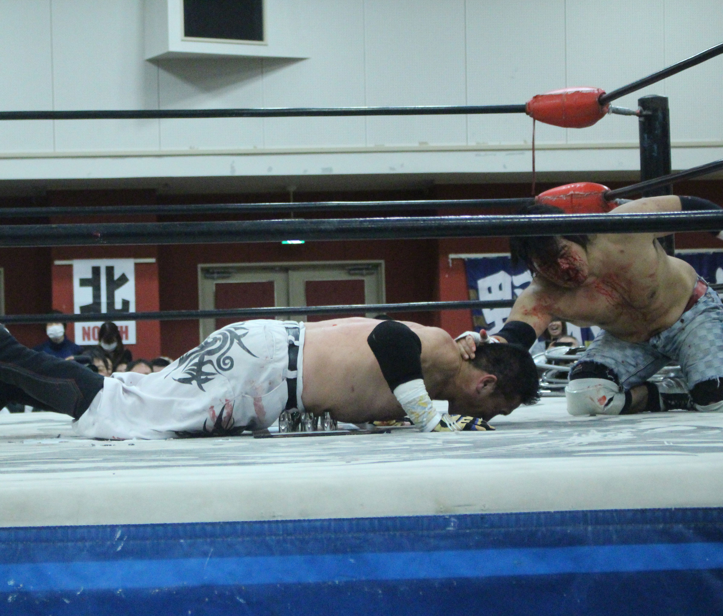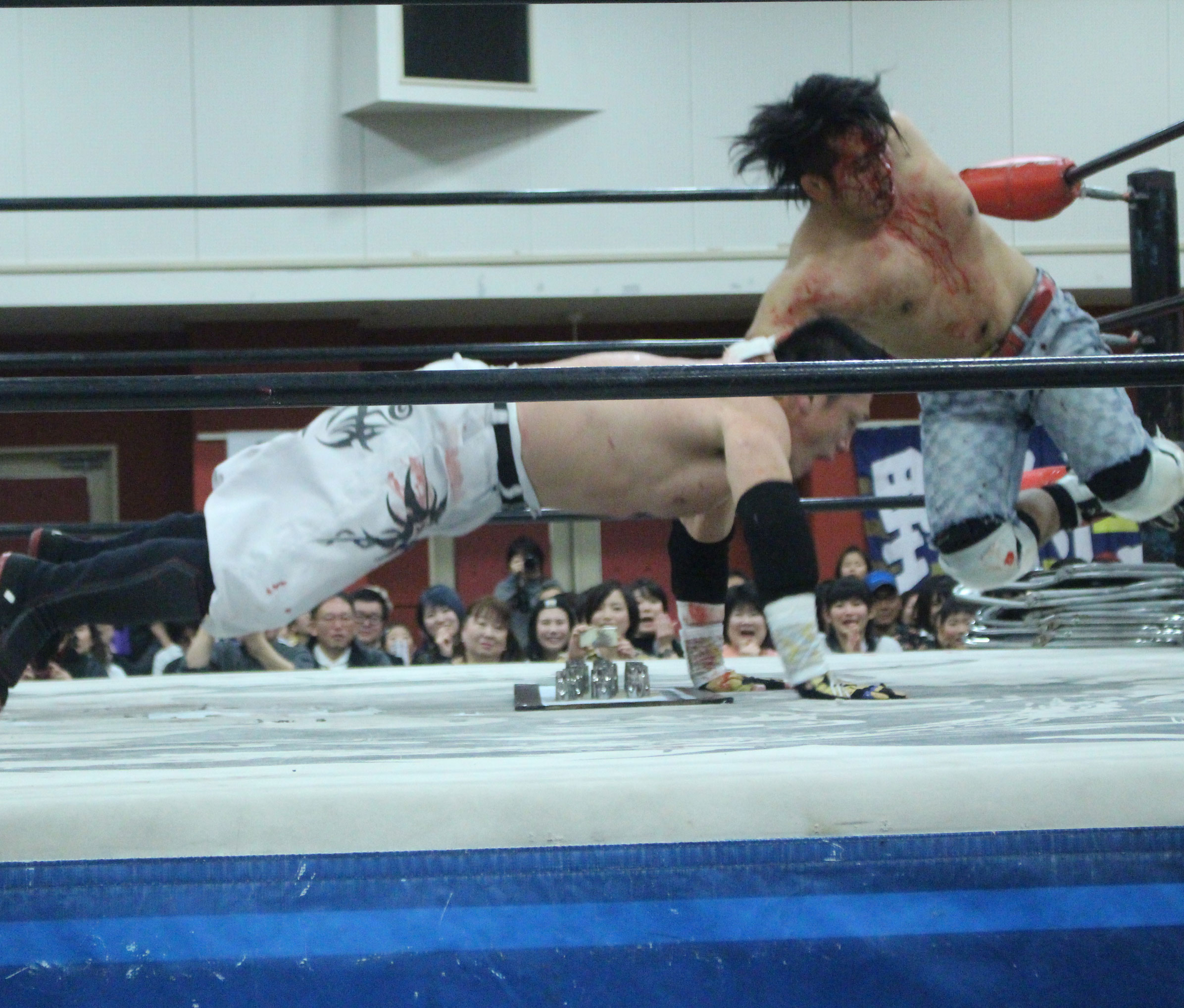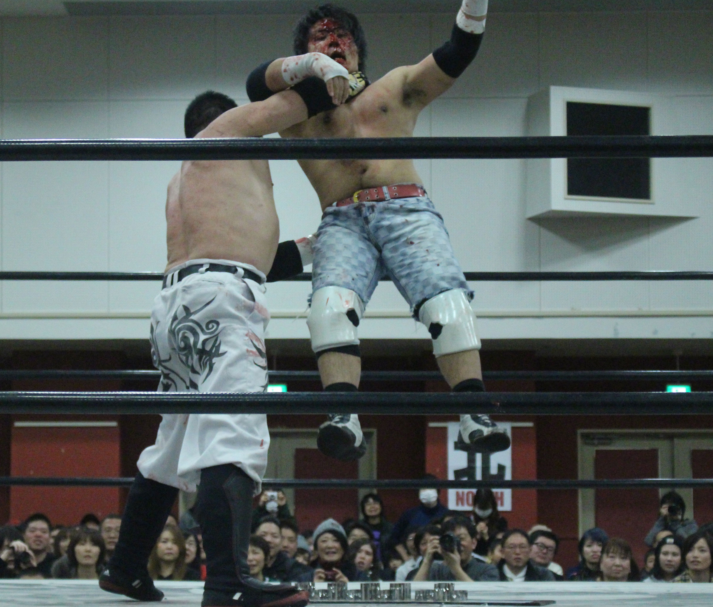 (いまの大日本のデスマッチに何を取り戻したい?)デスマッチとストロングって対極のところにいるけど、結局は同じで。俺はここ(ハート)だと思ってるんで。ストロング、ストロングと言われてるからってデスマッチが前座じゃいけない。大日本はデスマッチの団体だと思って俺は上がっている。下の世代もそうですけど、全体がもっと牙を剥いて、やってやろうという気持ちでやれたらいいんじゃないですか」【高橋の話】「悔しいよ、そりゃ悔しいよ、せっかくアブドーラ・小林から取って、やっと第五世代が盛り上がっていこうという時に、竹田誠志、分が悪いよね。いつも勝てない。悔しい。でも勝てないから終わりじゃないんだ。勝つまでやる、勝つまでやる。俺らは簡単に諦めない。アイツ以上に血みどろは諦めが悪いから。必ず取り返してやる! 最高にしんどかったけど、楽しかった。クソッ」