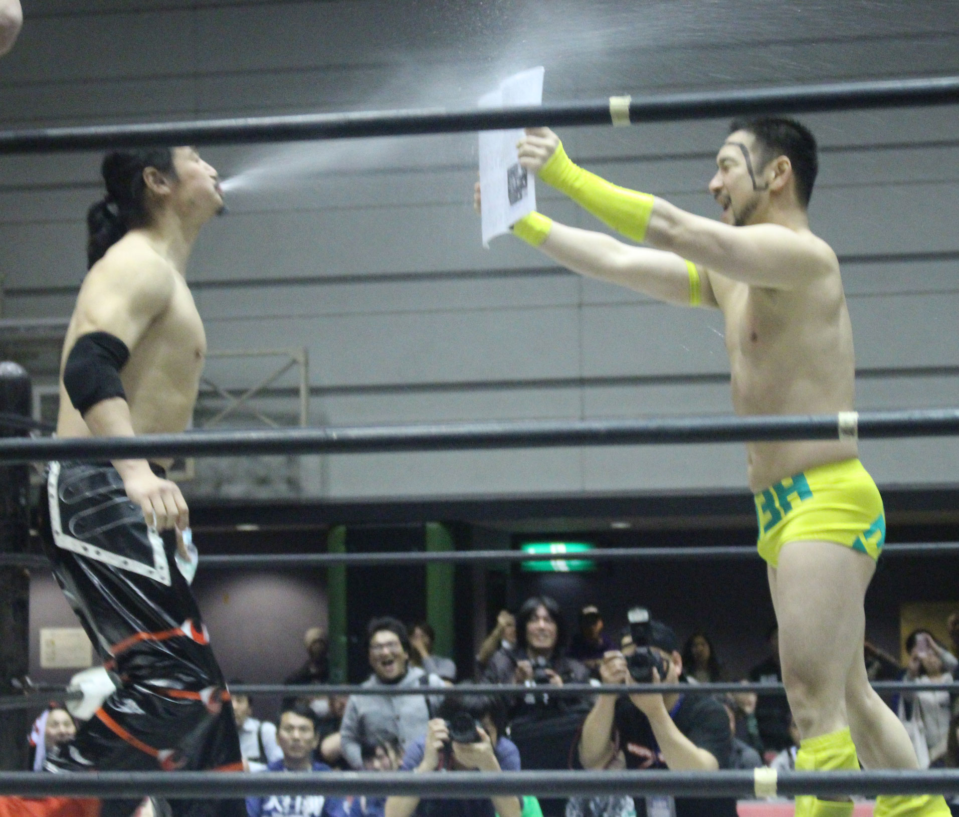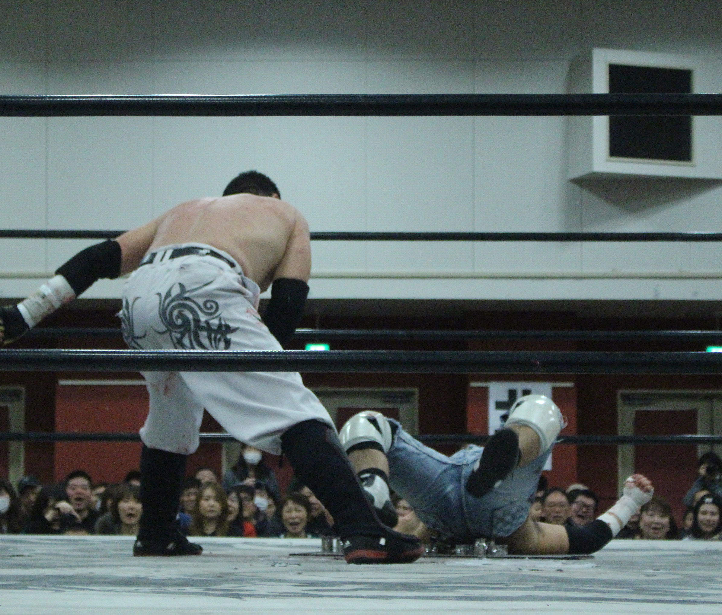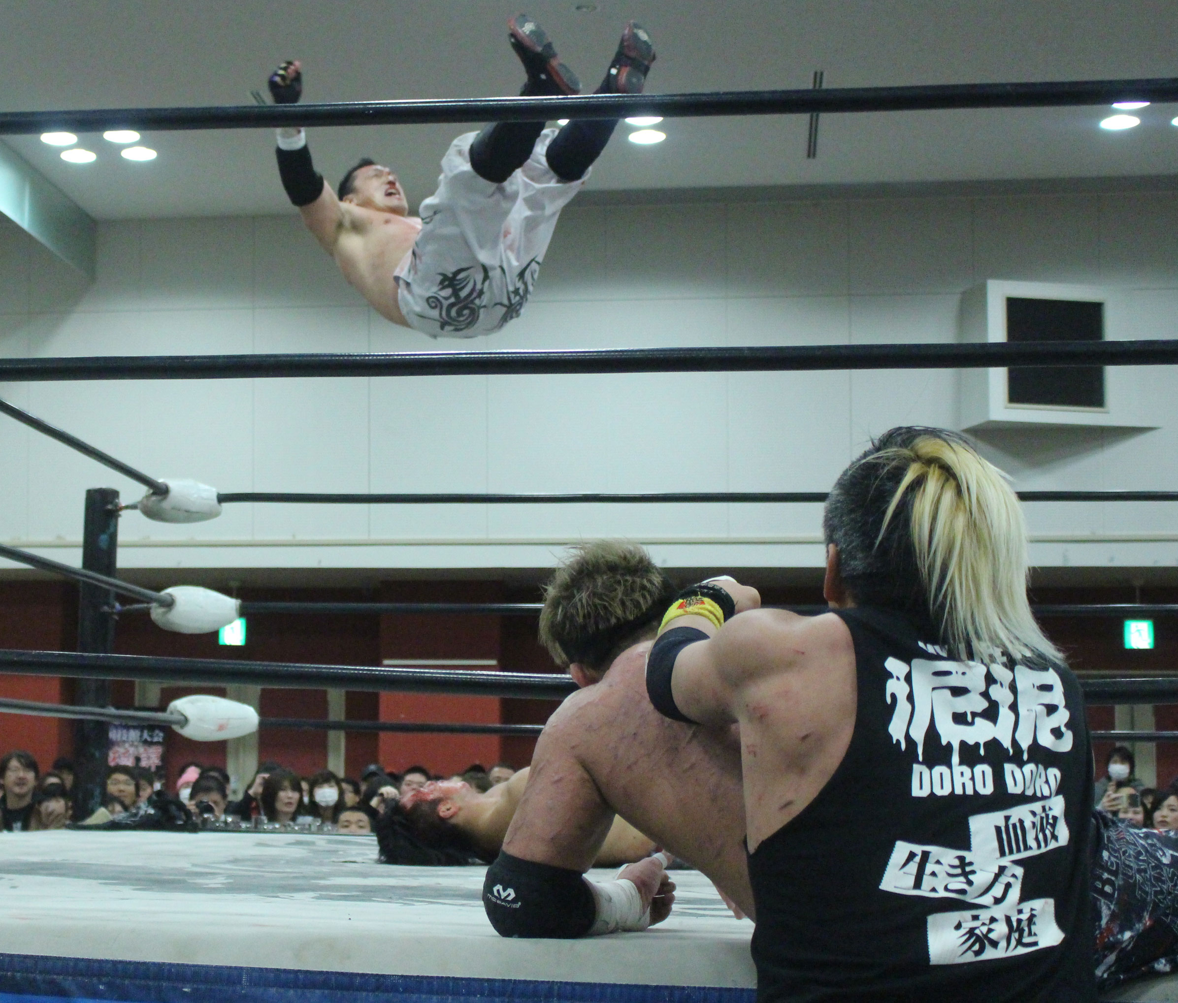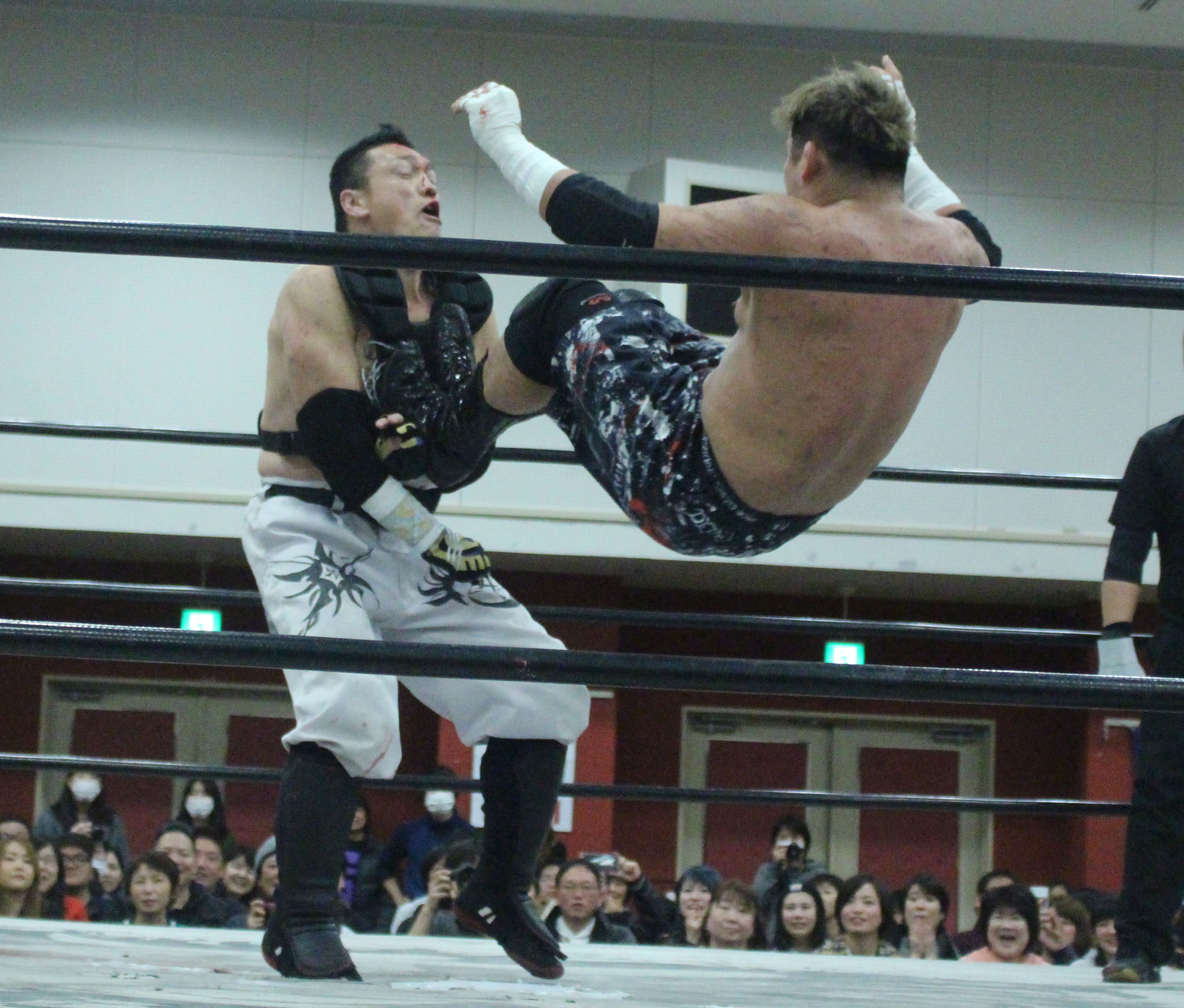 (いまの大日本のデスマッチに何を取り戻したい?)デスマッチとストロングって対極のところにいるけど、結局は同じで。俺はここ(ハート)だと思ってるんで。ストロング、ストロングと言われてるからってデスマッチが前座じゃいけない。大日本はデスマッチの団体だと思って俺は上がっている。下の世代もそうですけど、全体がもっと牙を剥いて、やってやろうという気持ちでやれたらいいんじゃないですか」【高橋の話】「悔しいよ、そりゃ悔しいよ、せっかくアブドーラ・小林から取って、やっと第五世代が盛り上がっていこうという時に、竹田誠志、分が悪いよね。いつも勝てない。悔しい。でも勝てないから終わりじゃないんだ。勝つまでやる、勝つまでやる。俺らは簡単に諦めない。アイツ以上に血みどろは諦めが悪いから。必ず取り返してやる! 最高にしんどかったけど、楽しかった。クソッ」