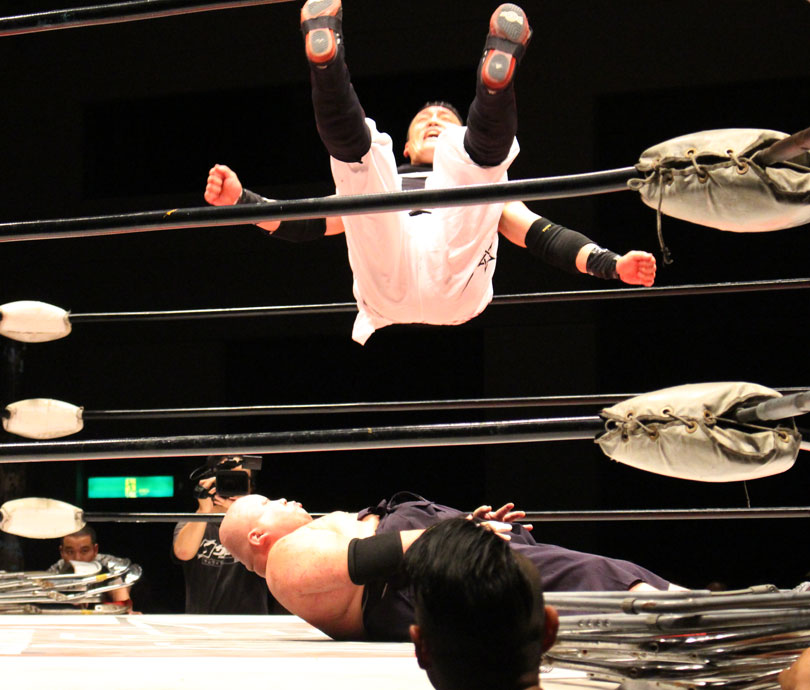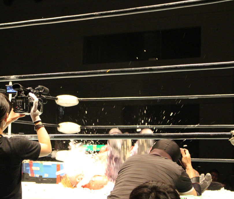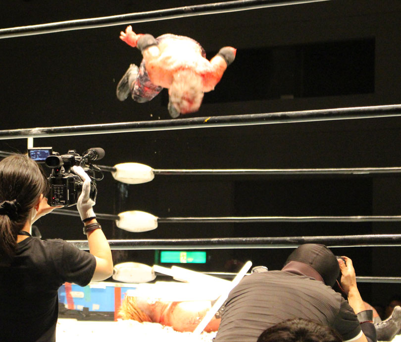 ※ダイビングエルボードロップ<第5試合=有刺鉄線ボード6人タッグデスマッチ 30分1本勝負>