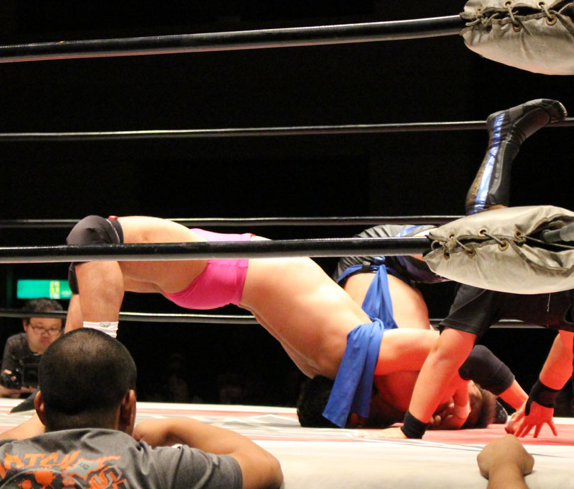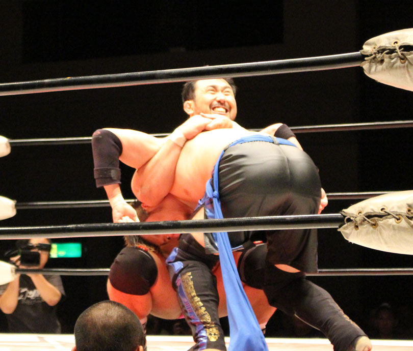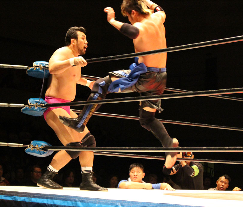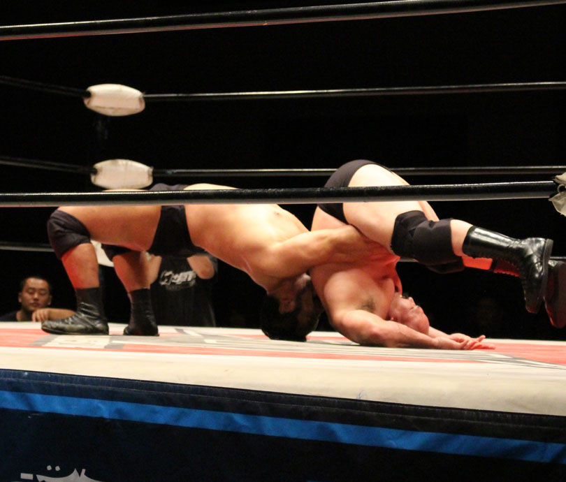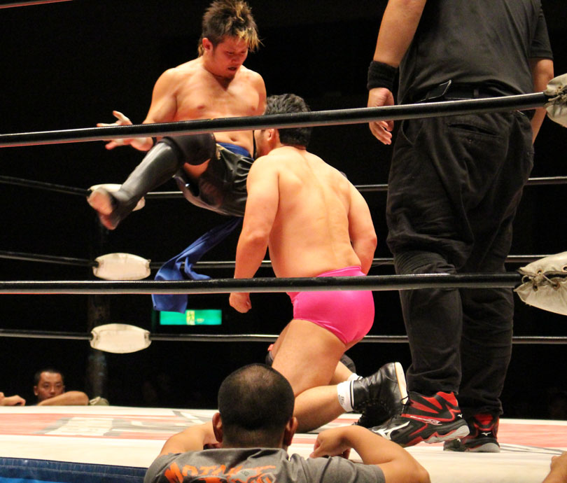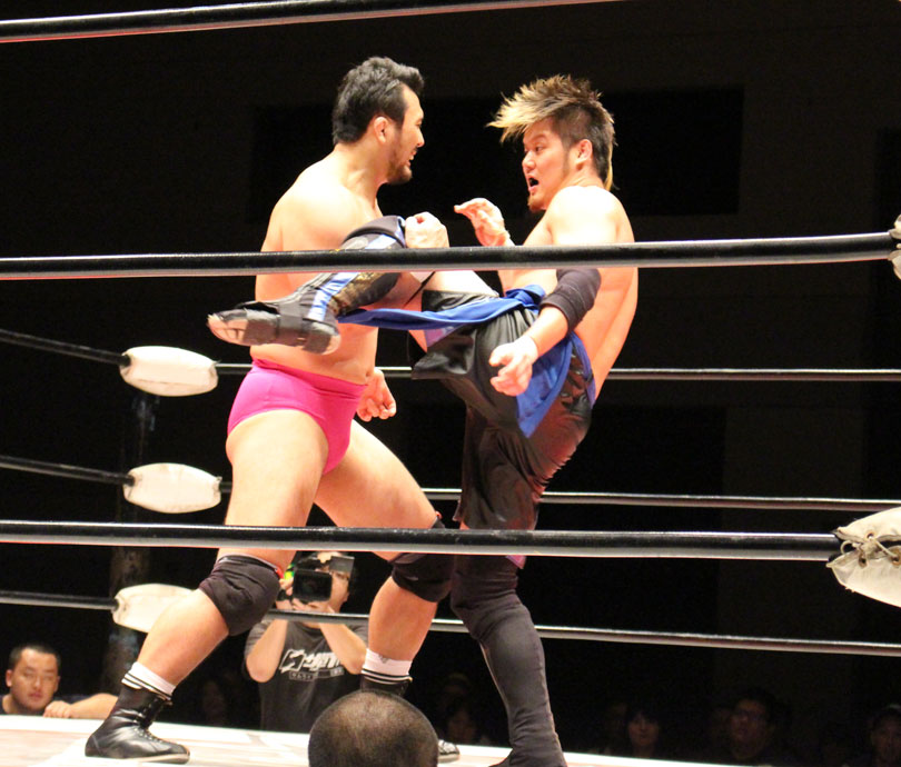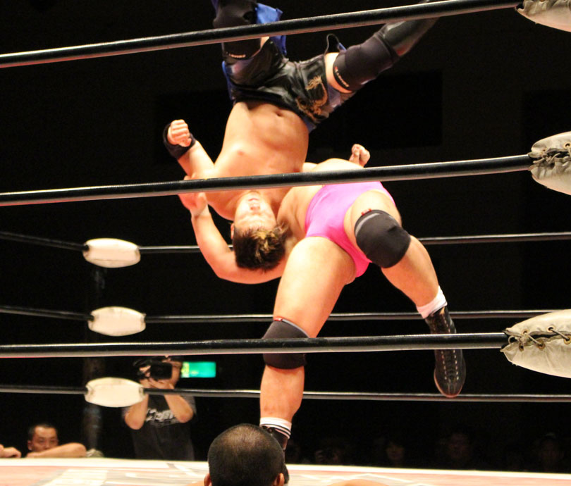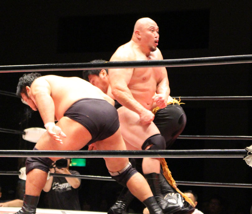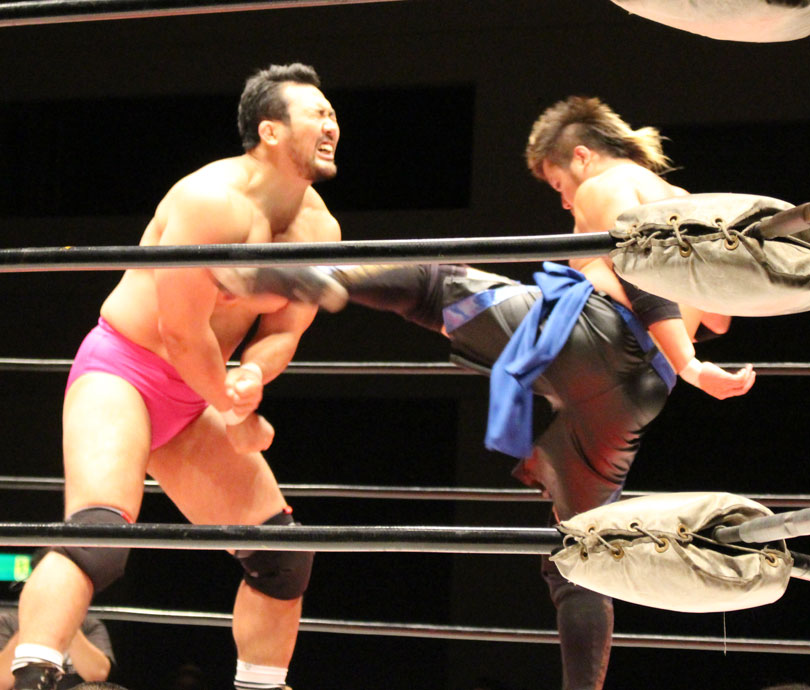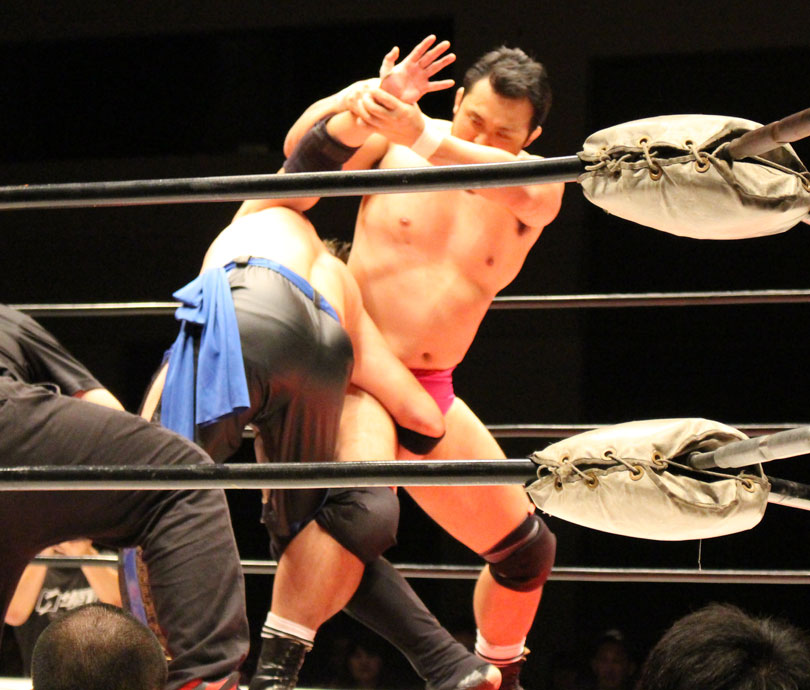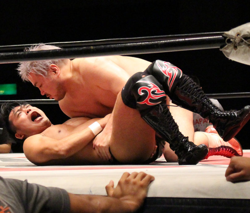 浜亮太 ○中之上靖文 宇藤純久(12分8秒 片エビ固め)関本大介 橋本大地 ×野村卓矢