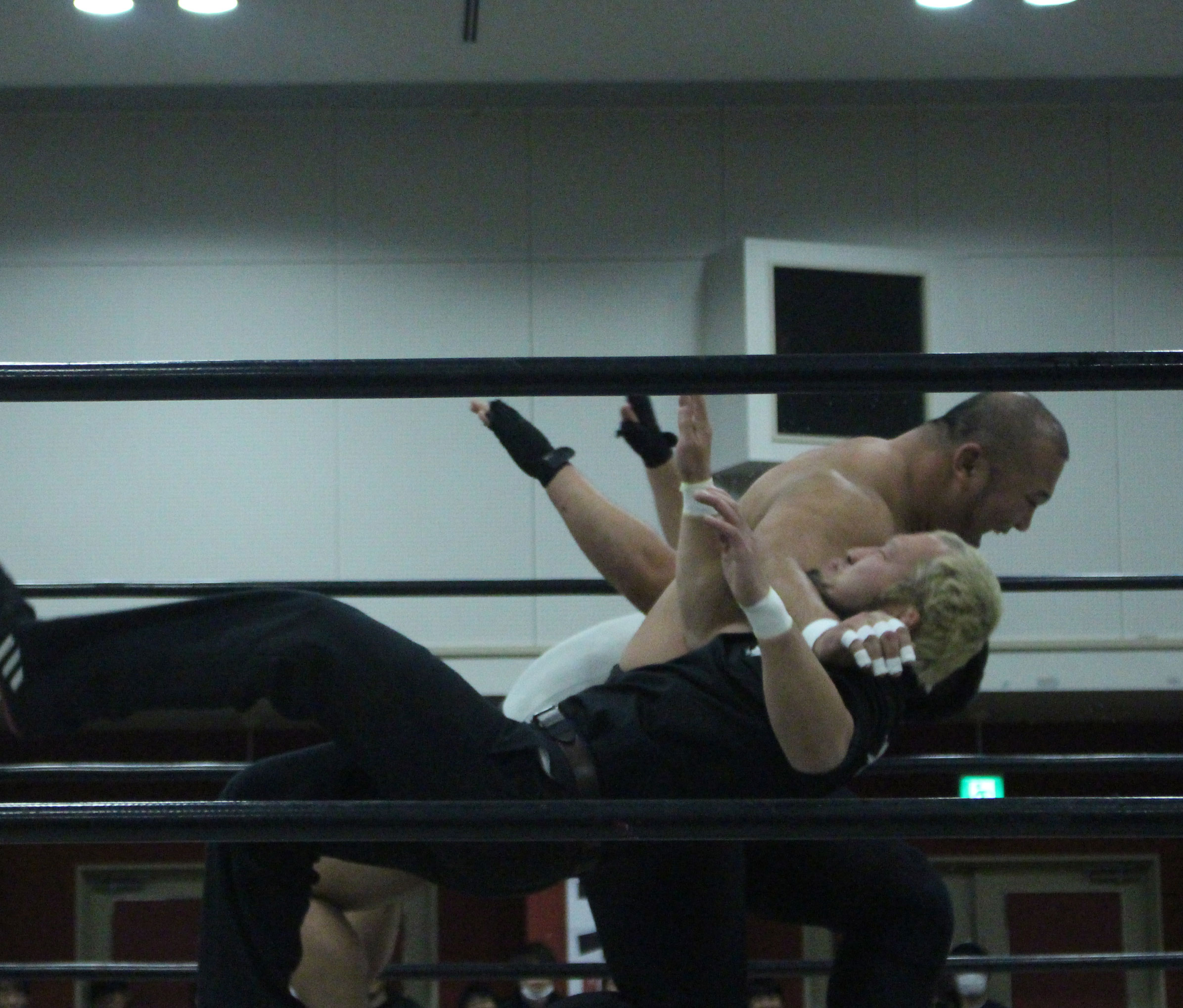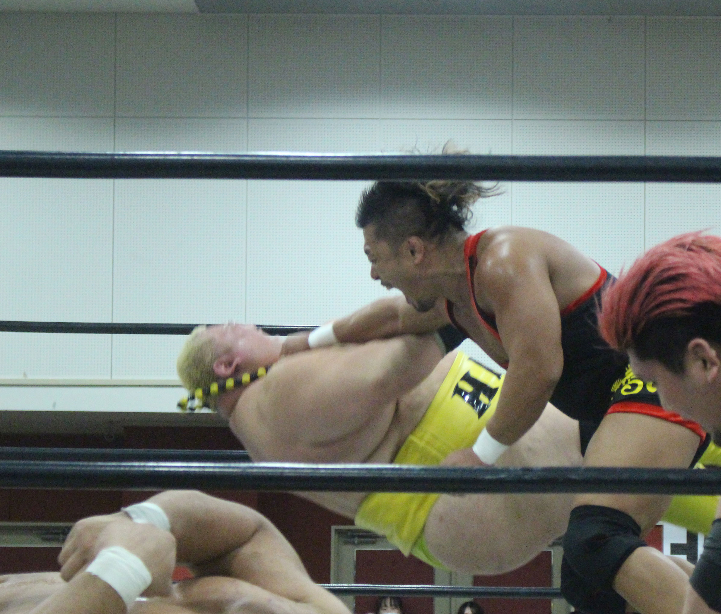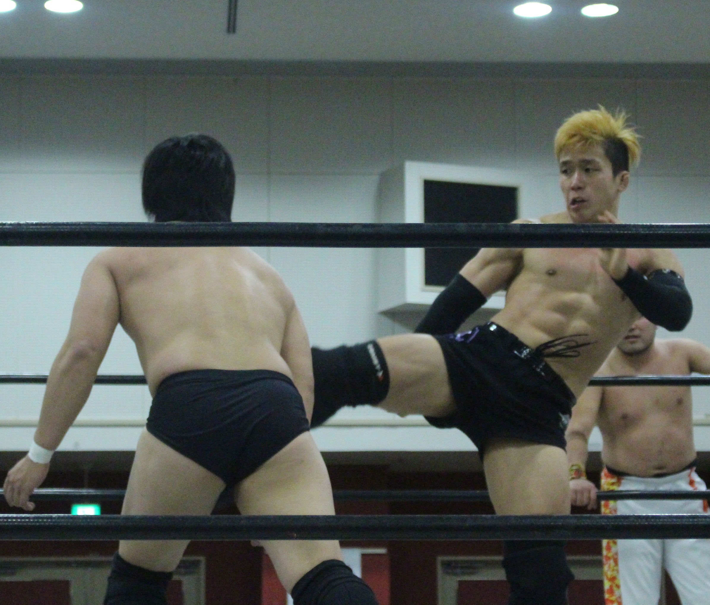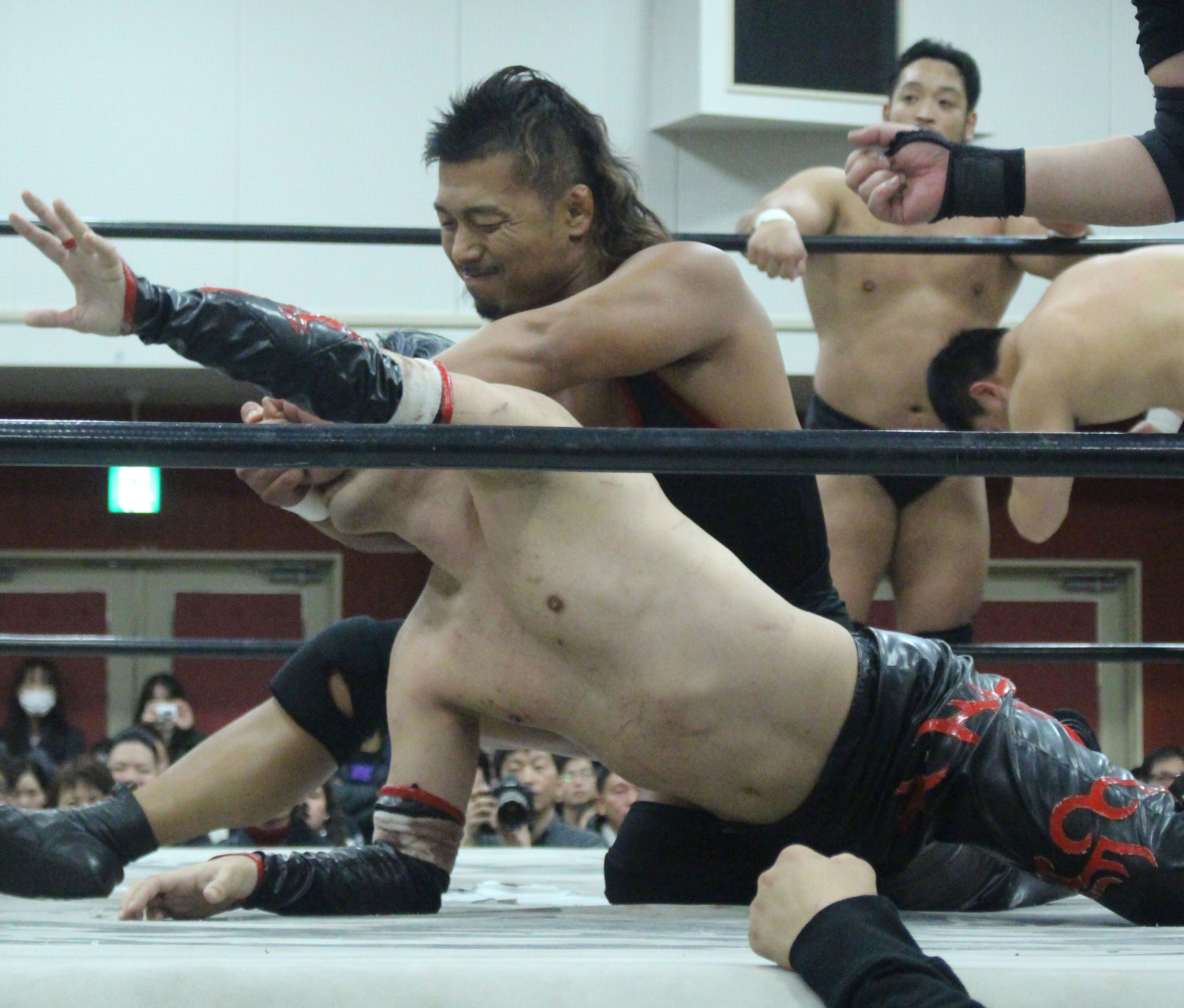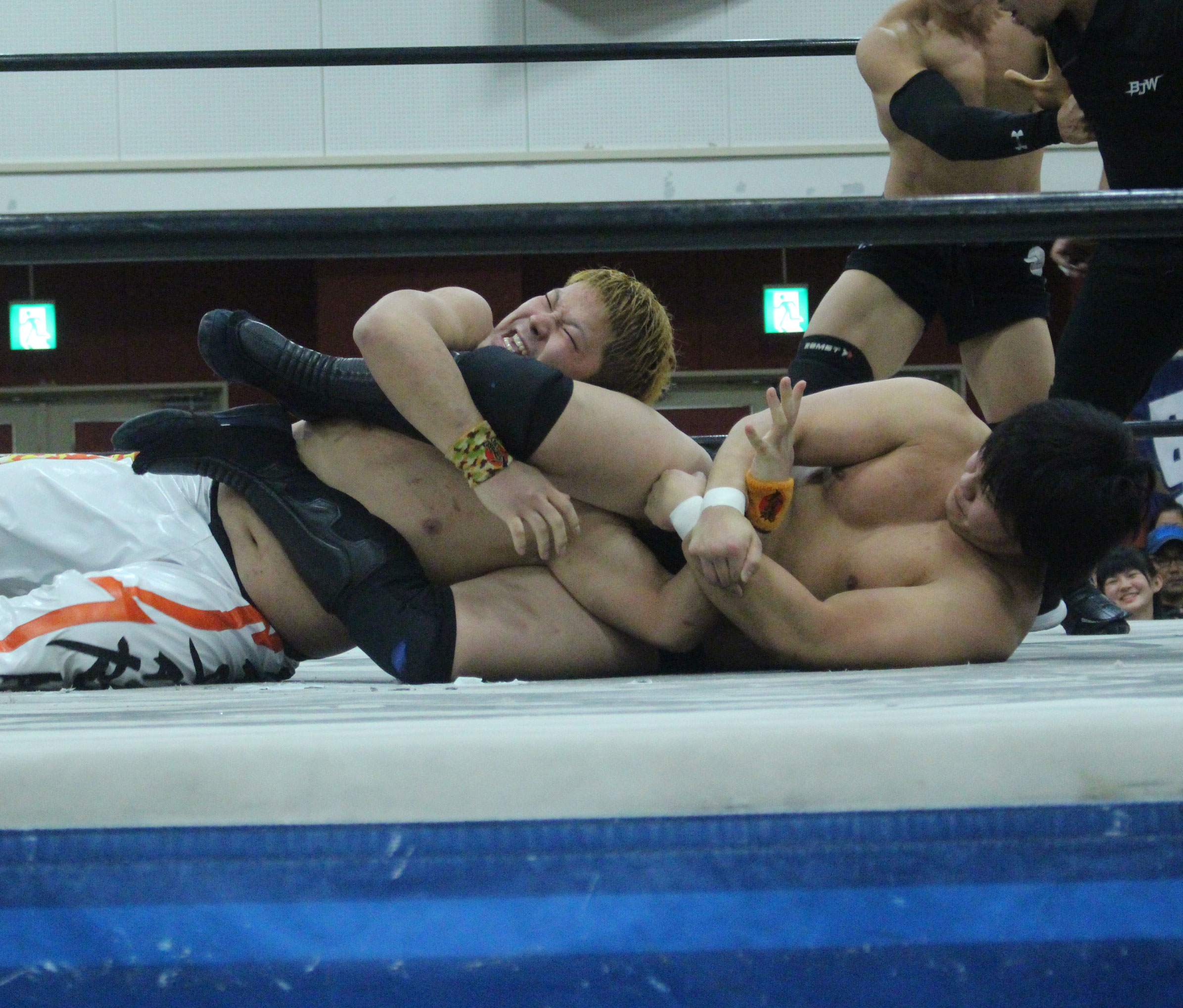 浜亮太 ○中之上靖文 宇藤純久(12分8秒 片エビ固め)関本大介 橋本大地 ×野村卓矢