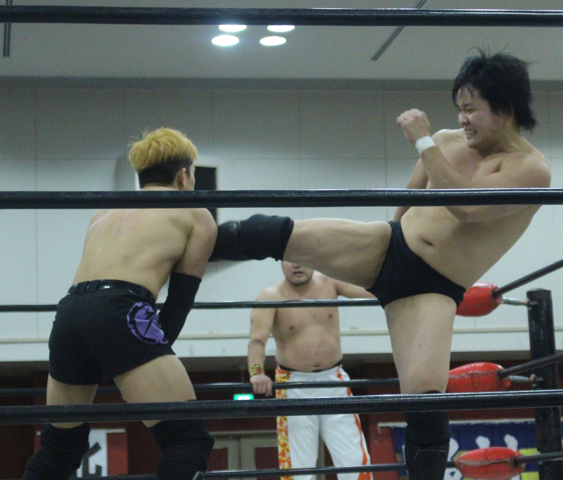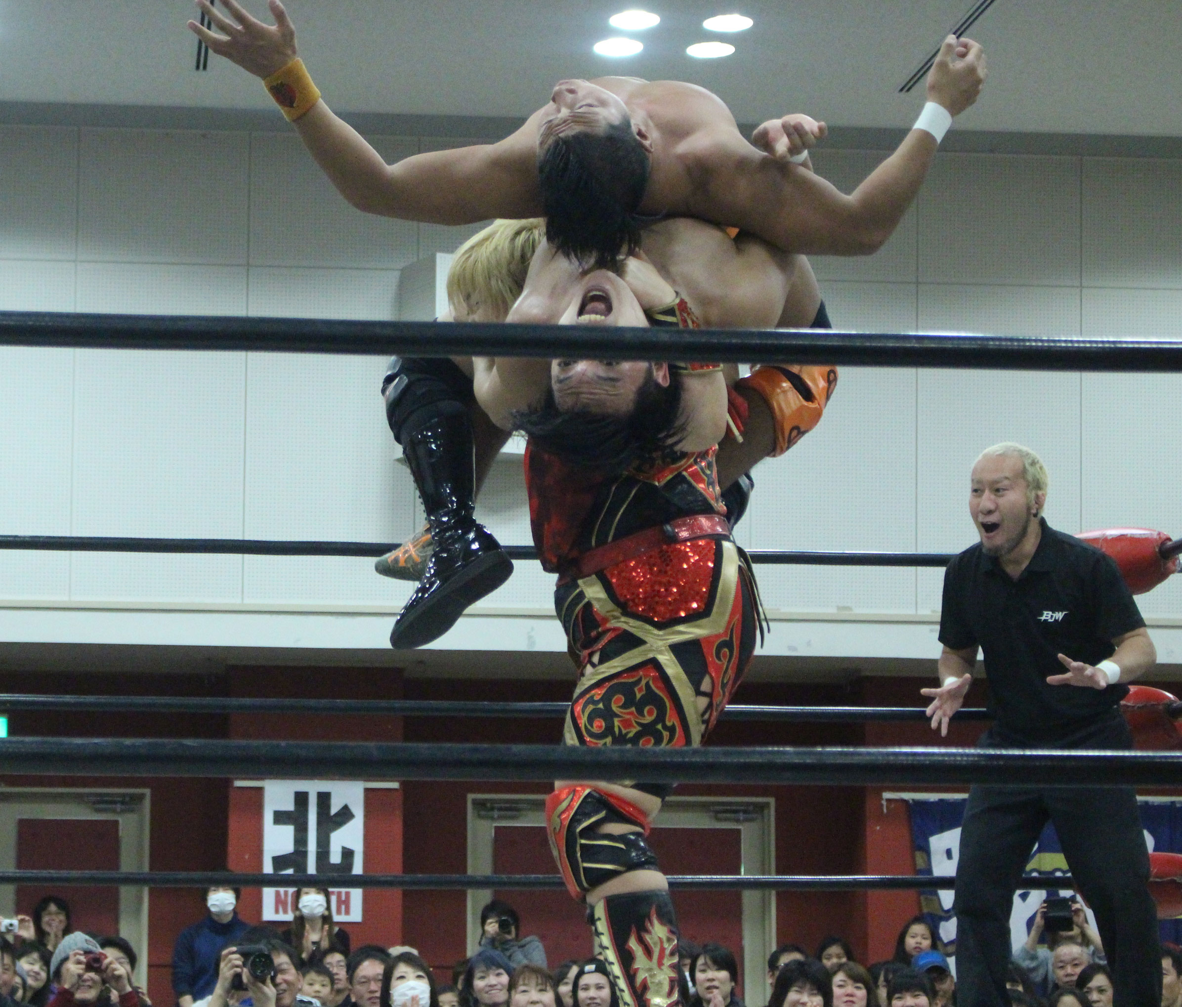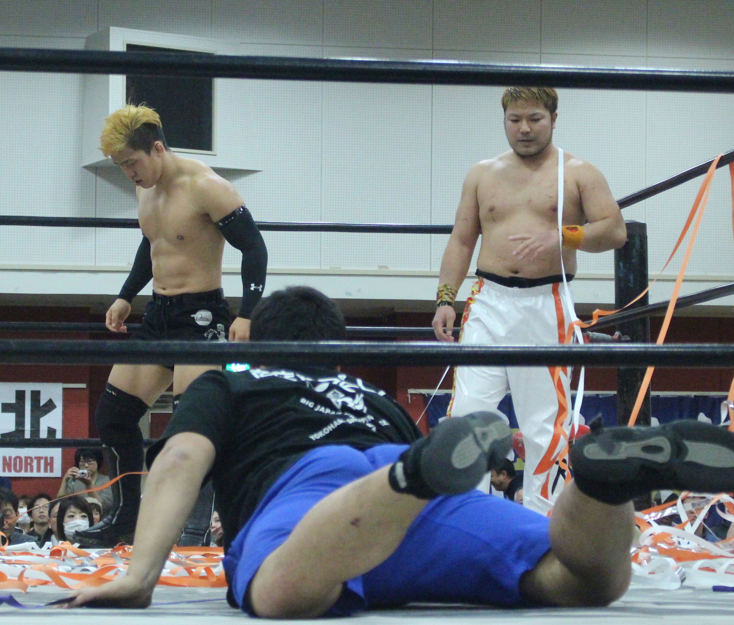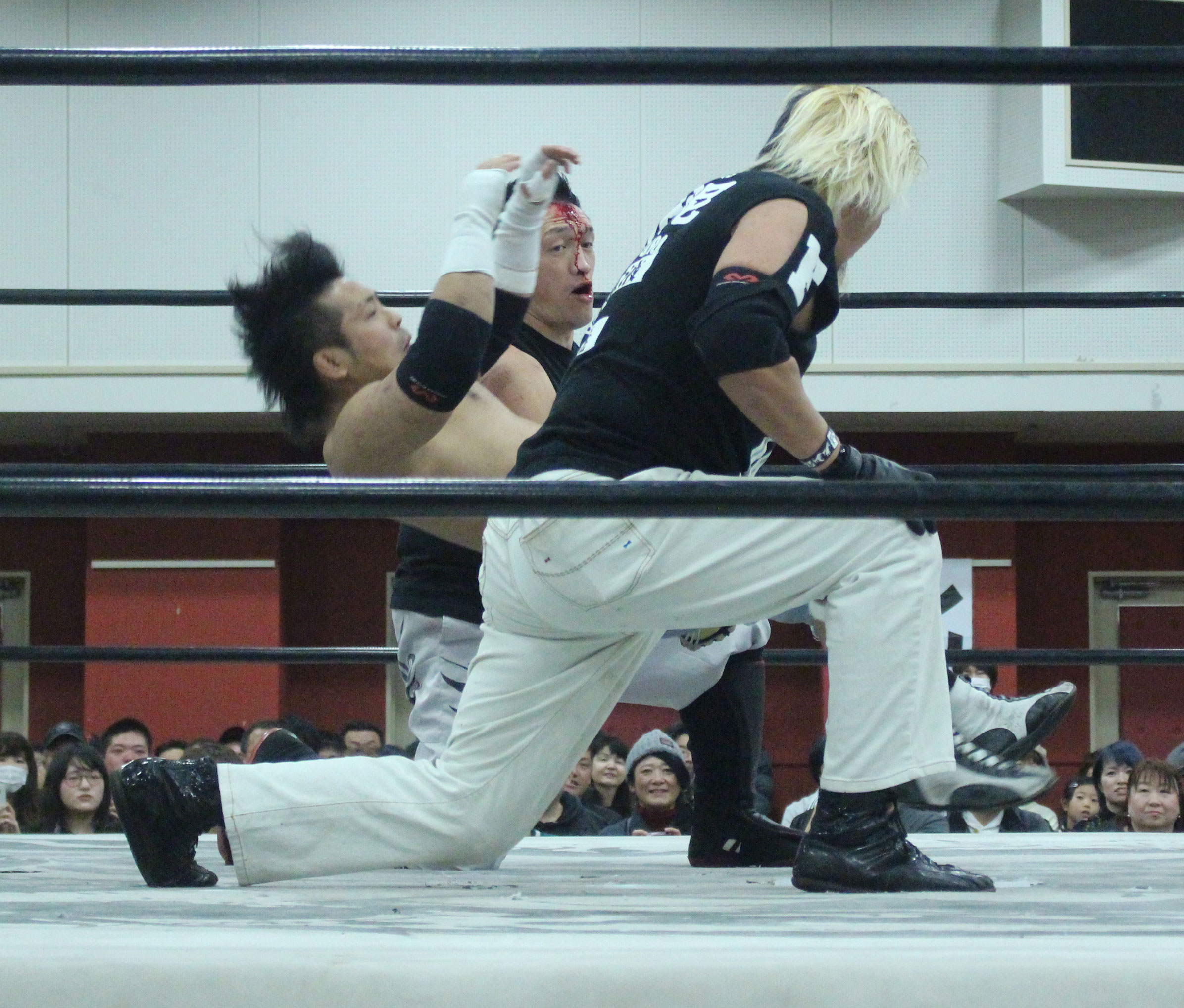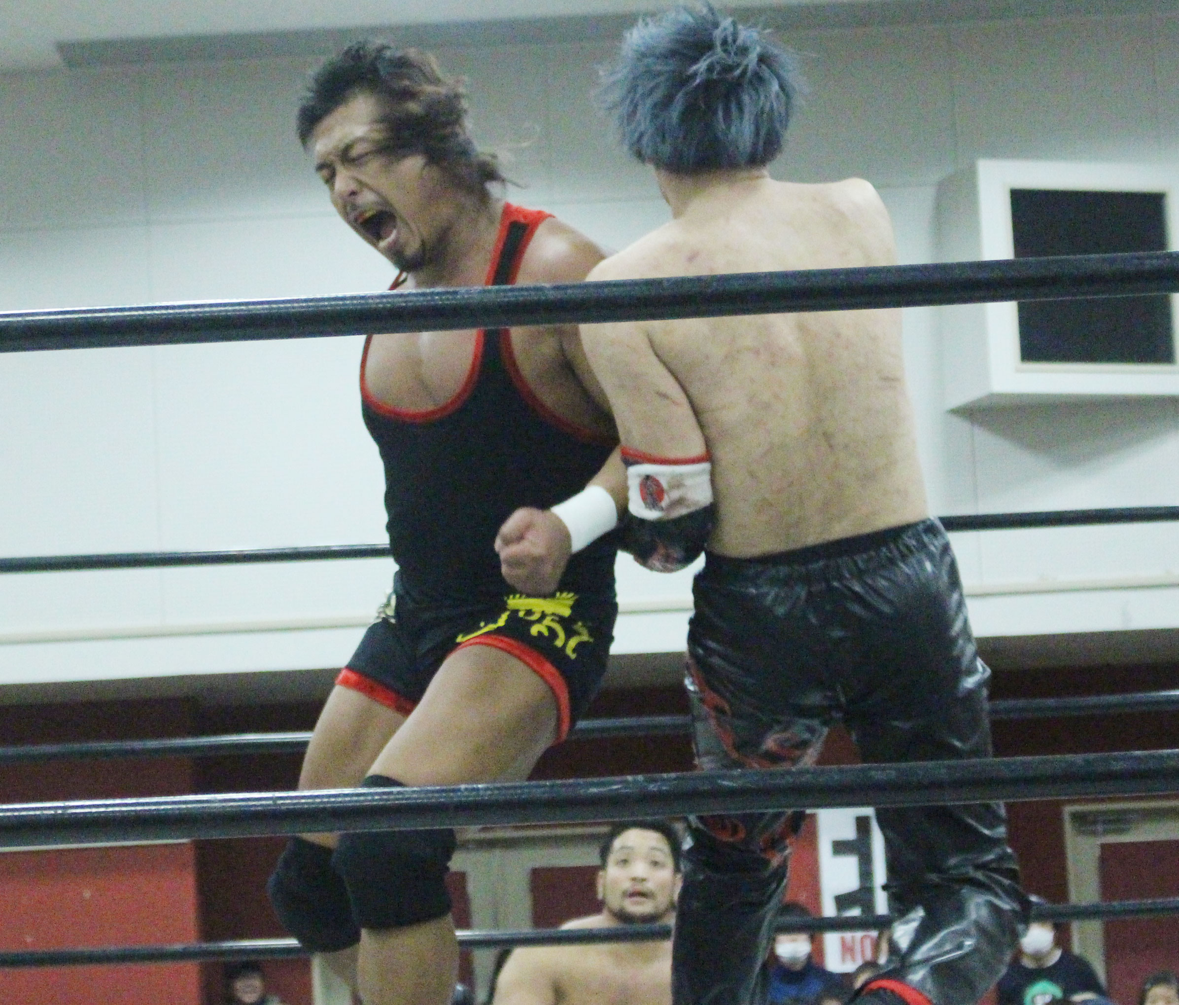 浜亮太 ○中之上靖文 宇藤純久(12分8秒 片エビ固め)関本大介 橋本大地 ×野村卓矢