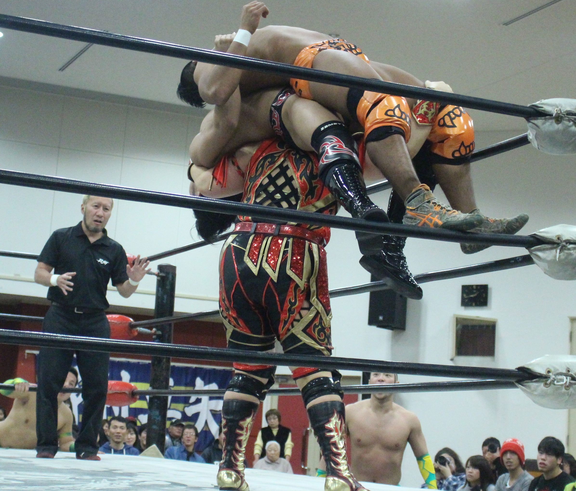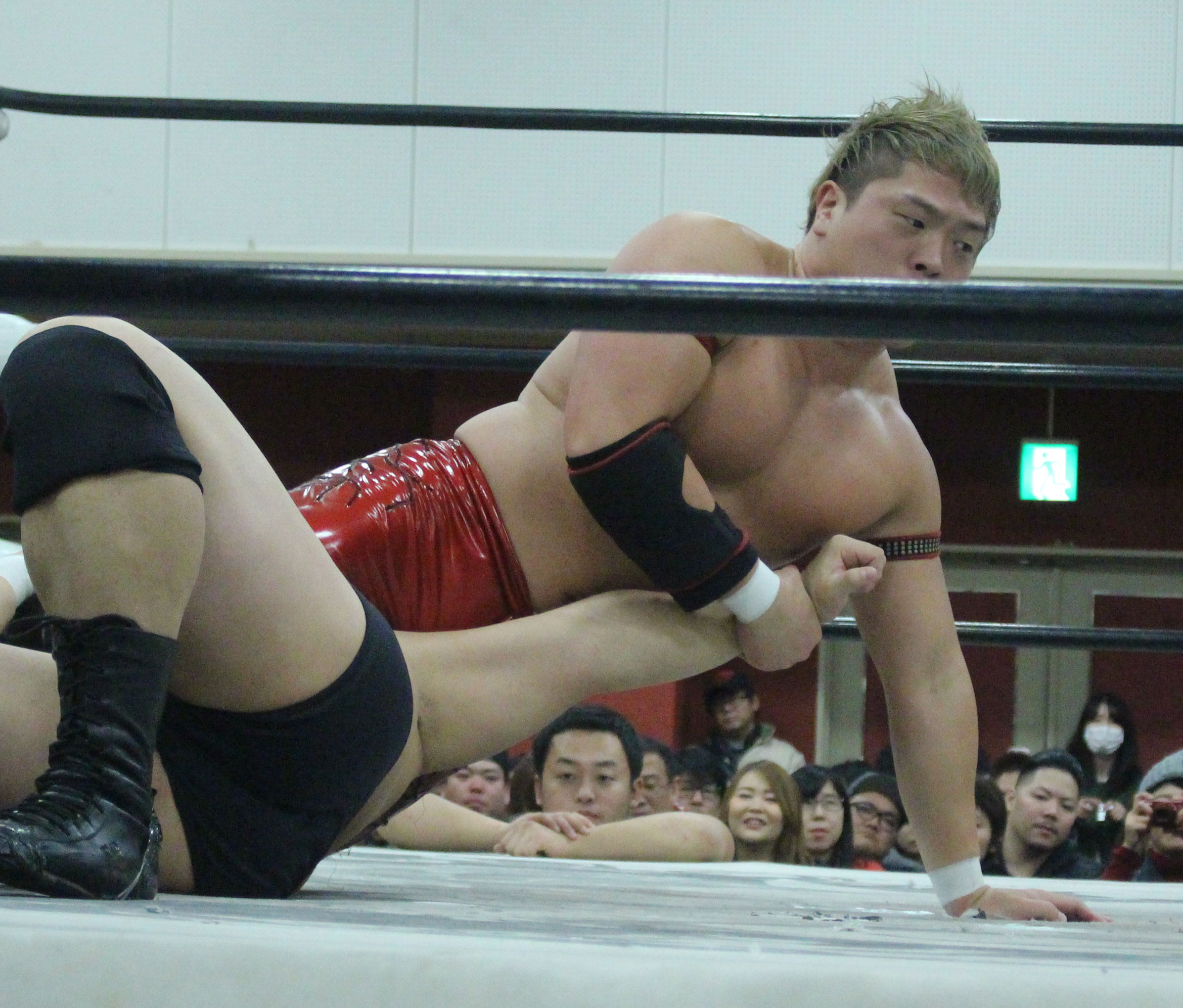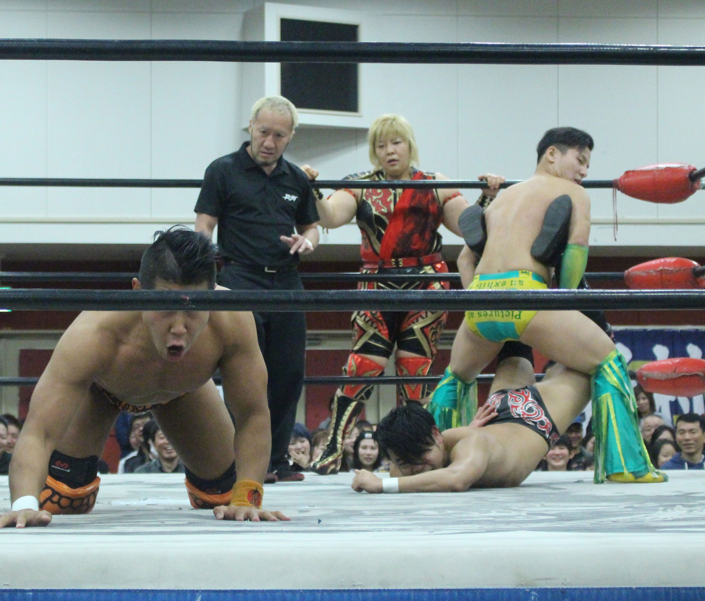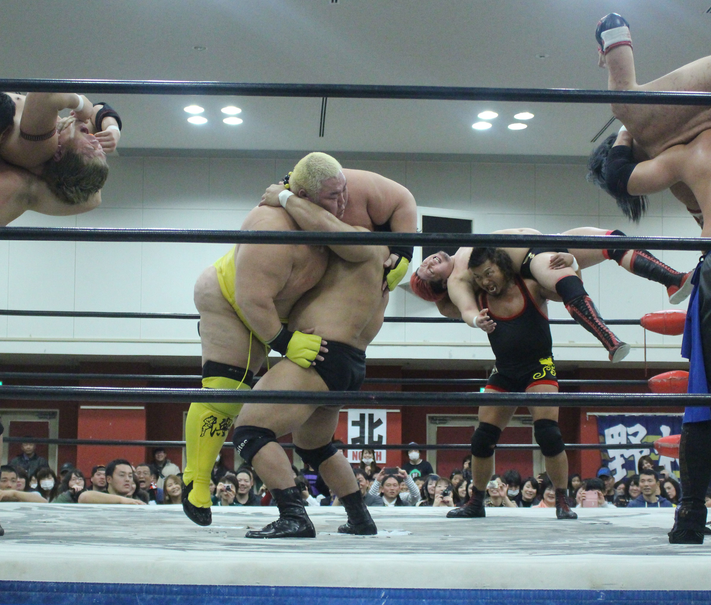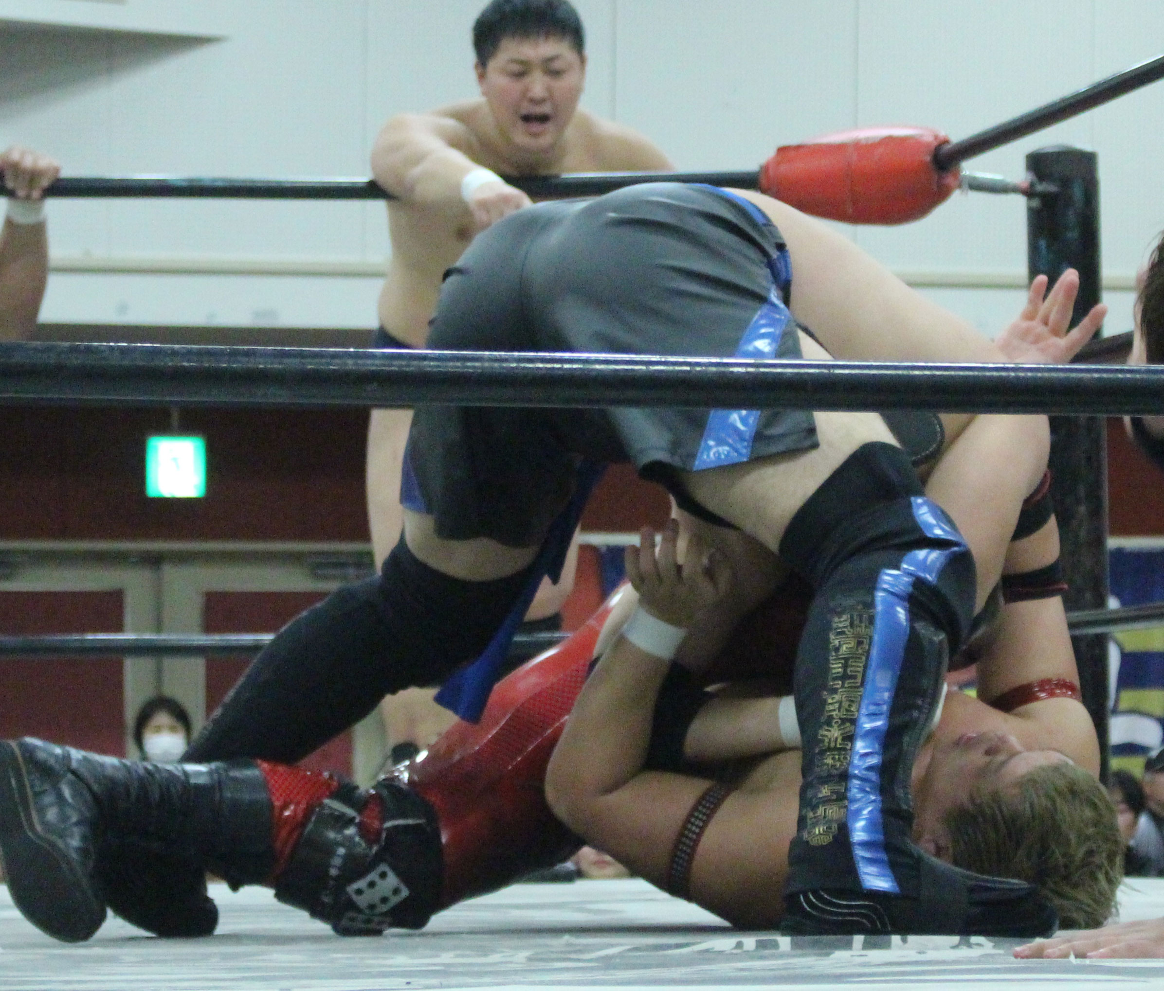 浜亮太 ○中之上靖文 宇藤純久(12分8秒 片エビ固め)関本大介 橋本大地 ×野村卓矢