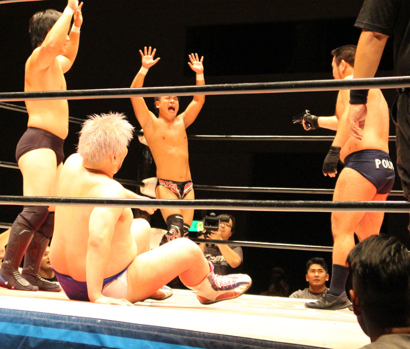 河上隆一 高井憲吾 ○宇藤純久(9分39秒 片エビ固め)浜亮太 中之上靖文 ×菊田一美