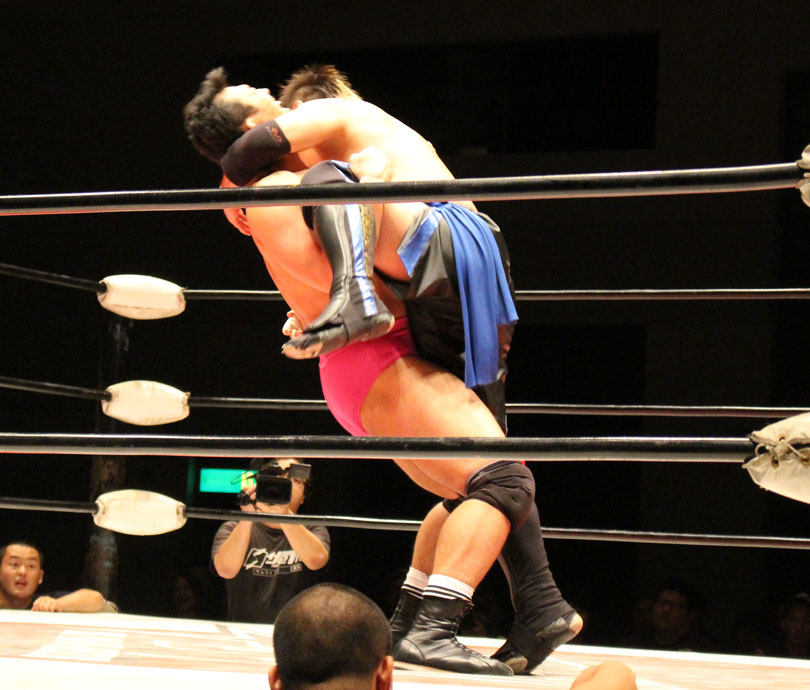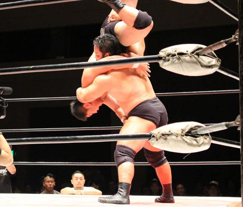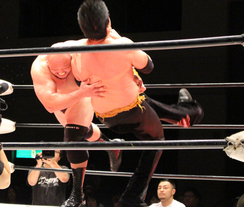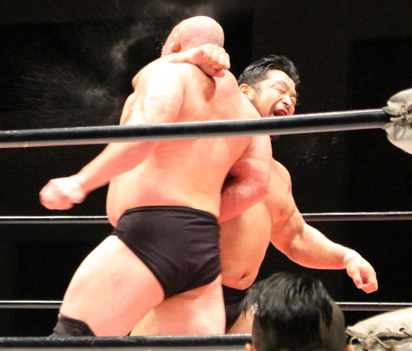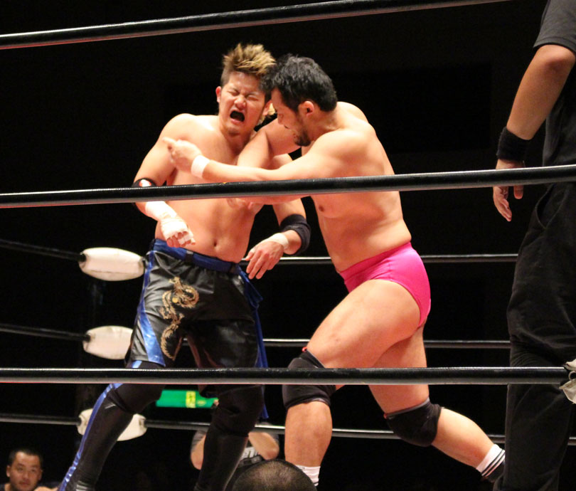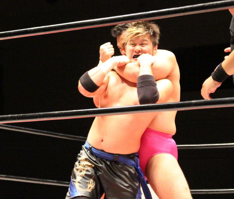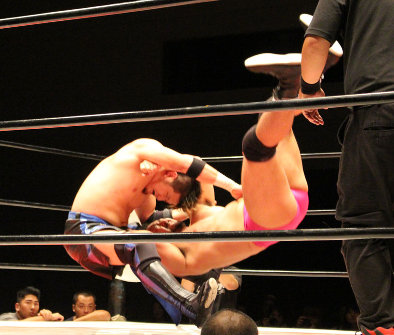 鈴木はエルボースマッシュからダブルアームスープレックス狙いは、大地が堪えると、鈴木は小鹿スペシャル78で捕獲、大地のエルボーやミドル、鈴木のエルボースマッシュと打撃戦になると、大地のキックをキャッチした鈴木はキャプチュードを決め、フルネルソンで絞めあげたあとでのドラゴンスープレックスからダブルアームスープレックスを狙うが、大地はリバース、しかし鈴木がすぐさまスリーパーで捕獲し絞めあげ、キックで逃れた大地にワンハンドバックブリーカーを狙うも、大地は膝蹴りで逃れる。