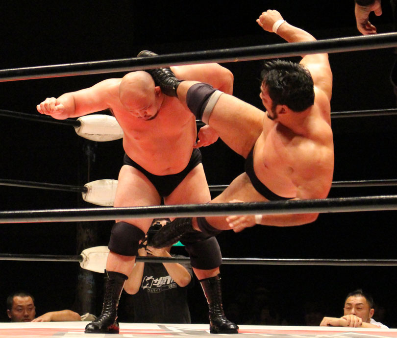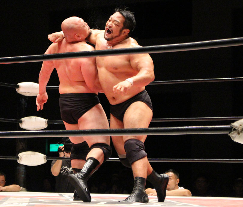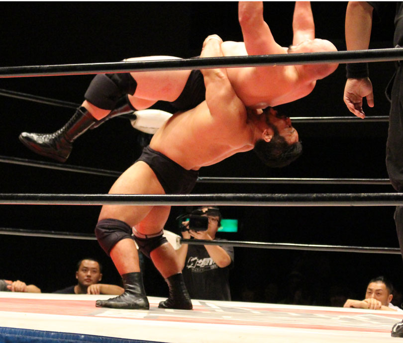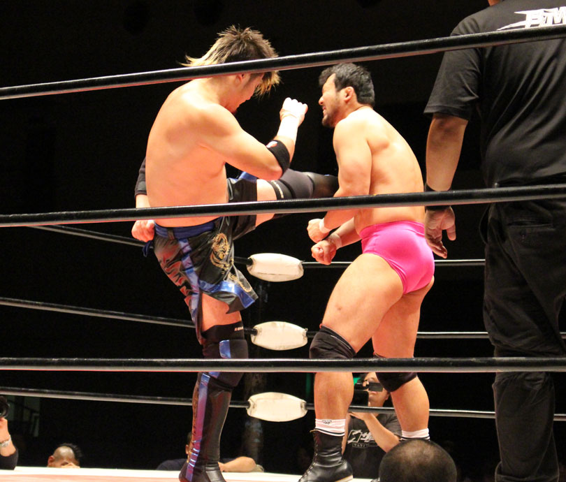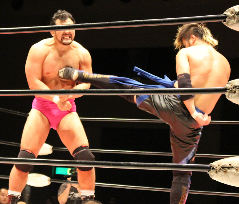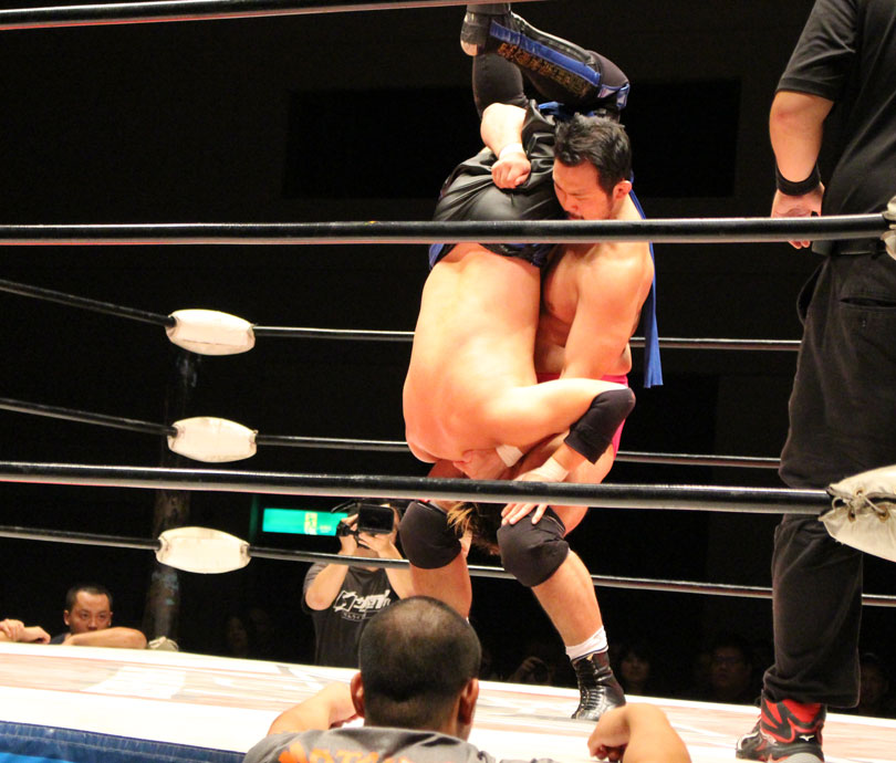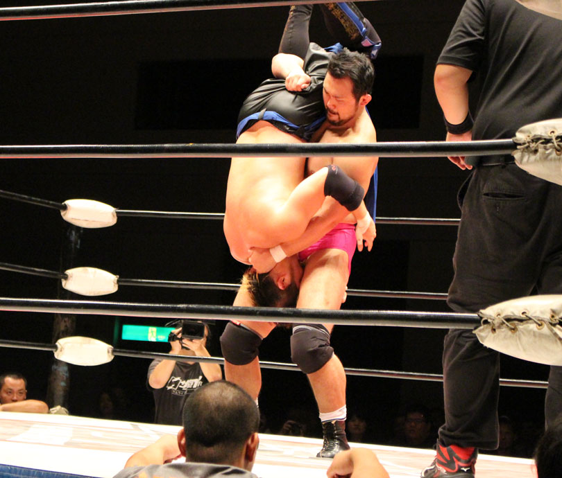 鈴木はエルボースマッシュからダブルアームスープレックス狙いは、大地が堪えると、鈴木は小鹿スペシャル78で捕獲、大地のエルボーやミドル、鈴木のエルボースマッシュと打撃戦になると、大地のキックをキャッチした鈴木はキャプチュードを決め、フルネルソンで絞めあげたあとでのドラゴンスープレックスからダブルアームスープレックスを狙うが、大地はリバース、しかし鈴木がすぐさまスリーパーで捕獲し絞めあげ、キックで逃れた大地にワンハンドバックブリーカーを狙うも、大地は膝蹴りで逃れる。