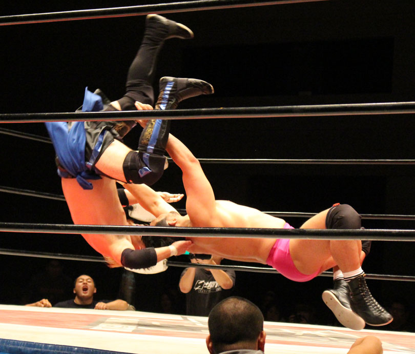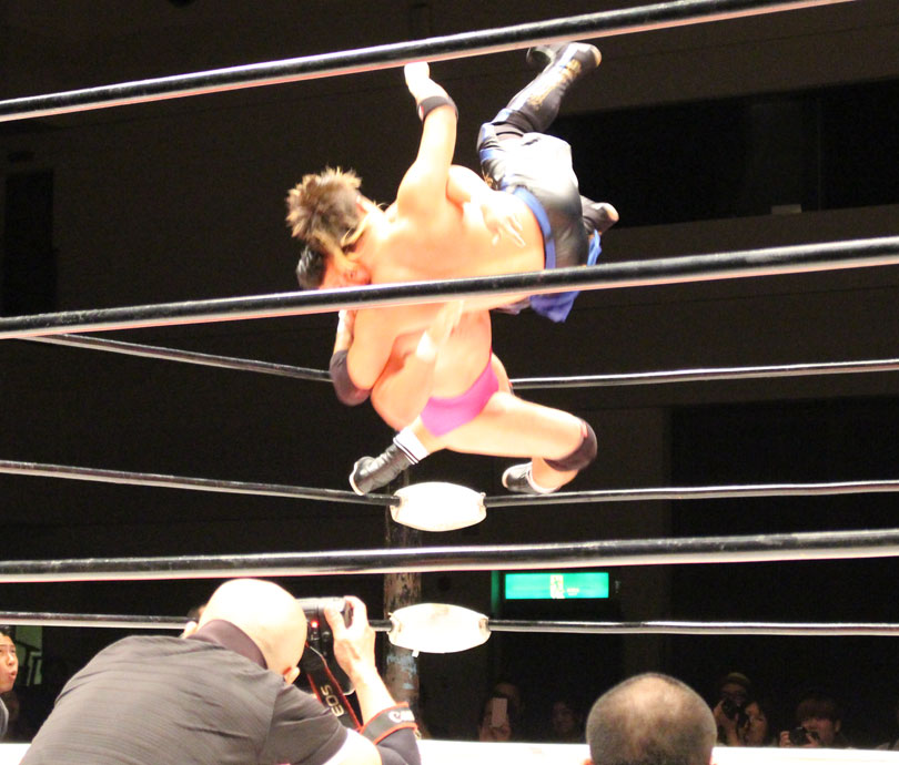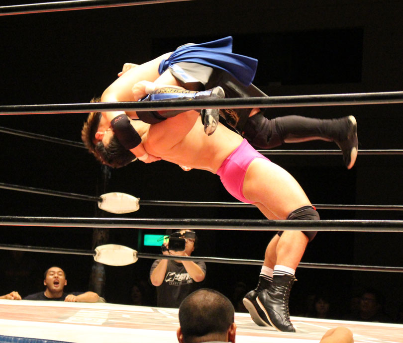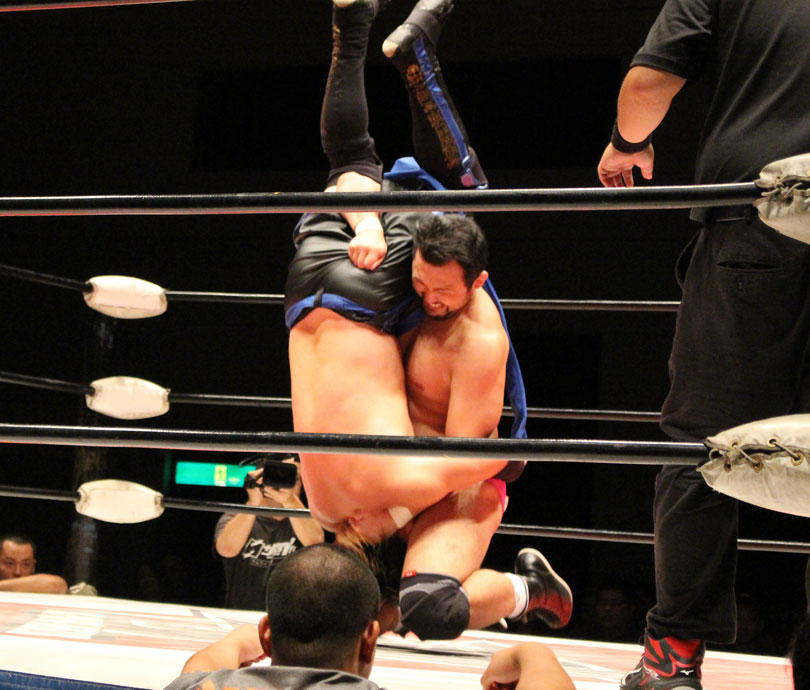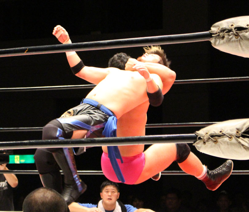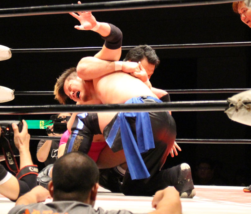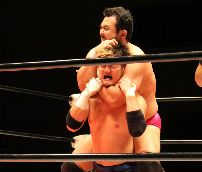 ここで勝負に出た大地はニールキック、後頭部へのシャイニングウィザード、ファルコンアローからシャイニングウィザード、DDTと畳み掛けると、ライジングDDTを狙うが、鈴木がジャーマンドライバーで切り返すとダブルアームスープレックスで3カウントを奪い王座を防衛した。