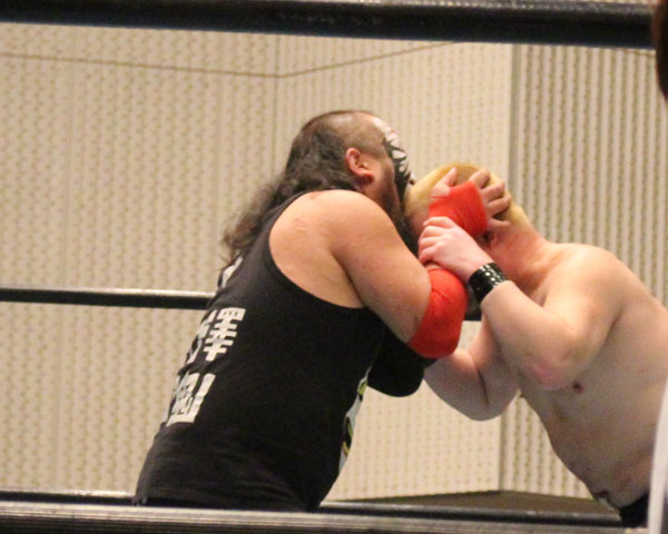 菅沼はパワースラムからランニングネックブリーカー、リバーススプラッシュ、ロックボトムと反撃するが、串刺しのアックスボンバー狙いを沼澤がかわしえコーナーに設置したイスに直撃させると丸め込んで3カウントを奪い完勝を収める。