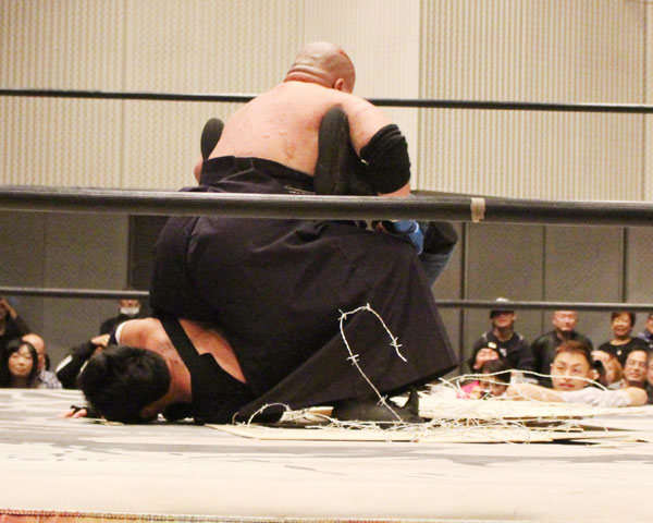 ○アブドーラ・小林(10分13秒 逆エビ固めwith有刺鉄線ボード)X植木嵩行