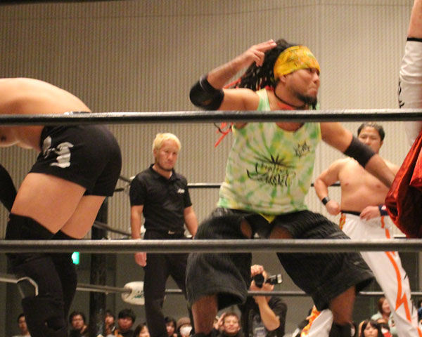 ○木高イサミ “brother"YASSHI 橋本和樹 藤田峰雄(12分24秒 ヨーロピアンクラッチ)橋本大地 谷嵜なおき 鈴木鼓太郎 X塚本拓海
