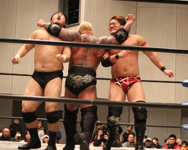○関本大介 岡林裕二 ボディガー(14分20秒 片エビ固め)浜亮太 河上隆一 X神谷英慶
