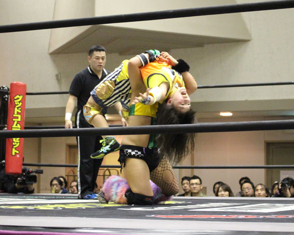 沙紀はジャイアントスイングで大回転し逆エビで捕らえるが、ことりは丸め込み技を連発、沙紀もアトミックドロップからラリアットで攻め込むが、リバーススプラッシュは自爆、だが沙紀も形勢を立て直してリバースパワーボム、ビックブーツ、カナディアンバックブリーカー、再度リバーススプラッシュを投下も、ことりはドロップキックで流れを変えると、最後はバードリッジで3カウントを奪い勝利となる。
