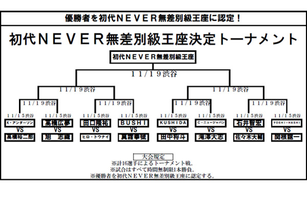新日本プロレスの若手中心の興行である「NEVER」がリニューアルされることになり、NEVERの王座が新設され、初代王者決定トーナメントの組み合わせが発表された。