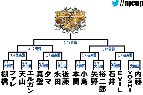 3月3日 大田区大会から開幕する「NEW JAPAN CUP2016」の組み合わせが発表された