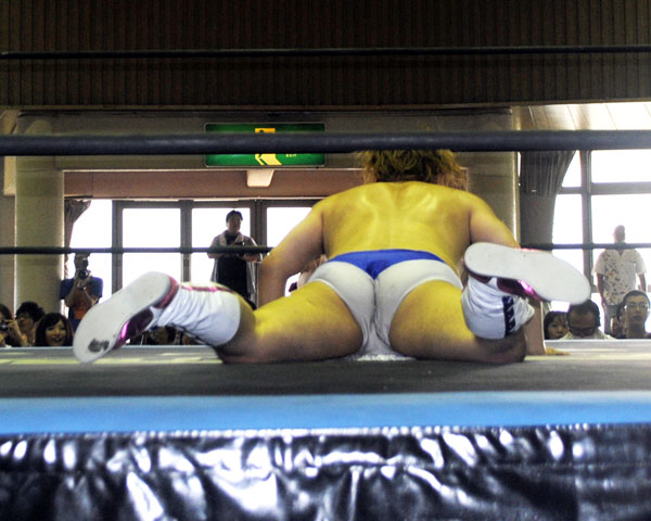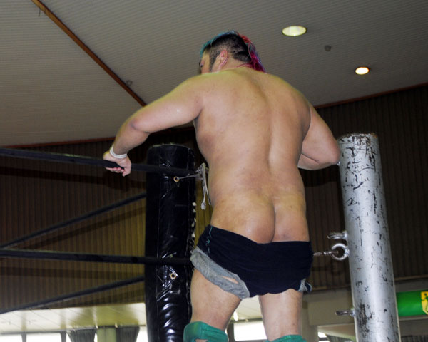 リングに戻るとディーノが入江を男色ドライバーで勝負に出るがクリアされるとゲイ道クラッチを決めるが、ケニーが自ら半ケツになってディーノをゲイ道クラッチで丸め込むと、その上を入江が半ケツになってゲイ道クラッチで丸め込むという半ケツの展開したが、最後はケニーがディーノを片翼の天使で降し、半ケツだらけのエニウェア戦を制したものの、あと2人足りないことを思い出すとまだ会場外ではHARASHIMAと光留が原っぱの上で攻防を繰り広げており、やっとリングに戻るが会場は既に撤収作業が開始。光留はHARASHIMAを追い詰めるが鶴見亜門GMが「もう終わったんだけど」と宥めると、光留は「またアンタの陰謀か!」と詰め寄るが、HARASHIMAが「体を鍛えているからだ!」で強引に締めくくり、半ケツだらけのエニウェア戦は全日本、DDT参戦でのハードスケジュールでのつかれ、パンクラス20周年記念に呼ばれなかった光留の徒労というオチで終わり、海での攻防に関しては「海は汚してはいけない」という教訓を改めて痛感して管理者側にバレないことを祈りつつ自分は会場を後にした。