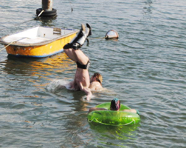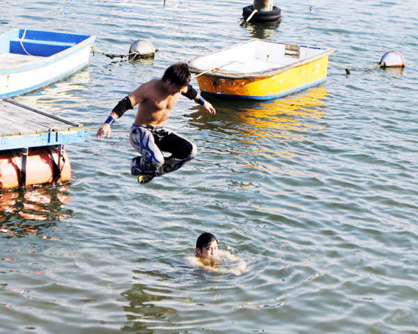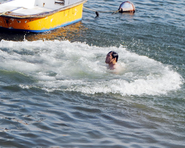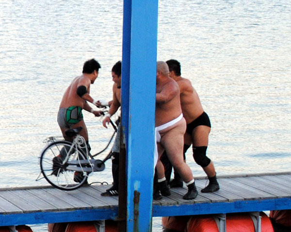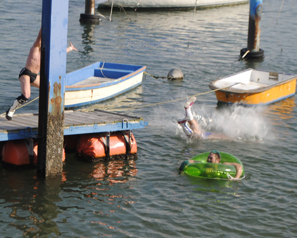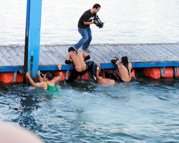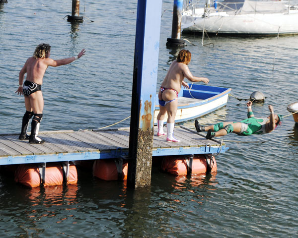 そして選手らは四日市湾へと向かい桟橋へ突入、足場の悪い桟橋でディーノと入江、ケニーが攻防を繰り広げるが遂にディーノのディープキスを受けた入江が海へと転落、泳げないのか溺れ始めるも松井レフェリーが浮輪を投入、浮輪をつけた入江は一人海水浴状態となる、しばらくしてケニーの波動拳でディーノも海へ転落、ケニーも海へ飛び込むが、ディーノがドサクサに紛れて入江の浮輪を取り上げまた溺れるも浅瀬だったこともあって僅かにある陸地から3選手は海から脱出、遅れて光留も海へ落ちてHARASHIMAが桟橋からの蒼魔刀を光留の後頭部に炸裂にして海の上でカバーするもカウント2でクリアされてしまう。
