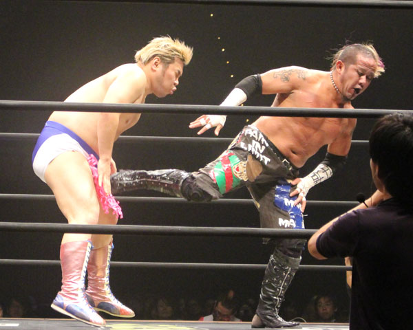 高木三四郎○ 飯伏幸太 伊橋剛太(15分3秒 エビ固め)ディック東郷 ×アントーニオ本多 佐々木貴