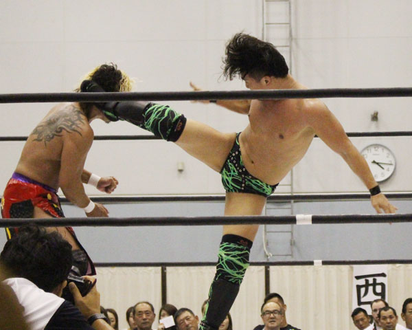 ○佐野直(7分36秒 片エビ固め)×長谷川
