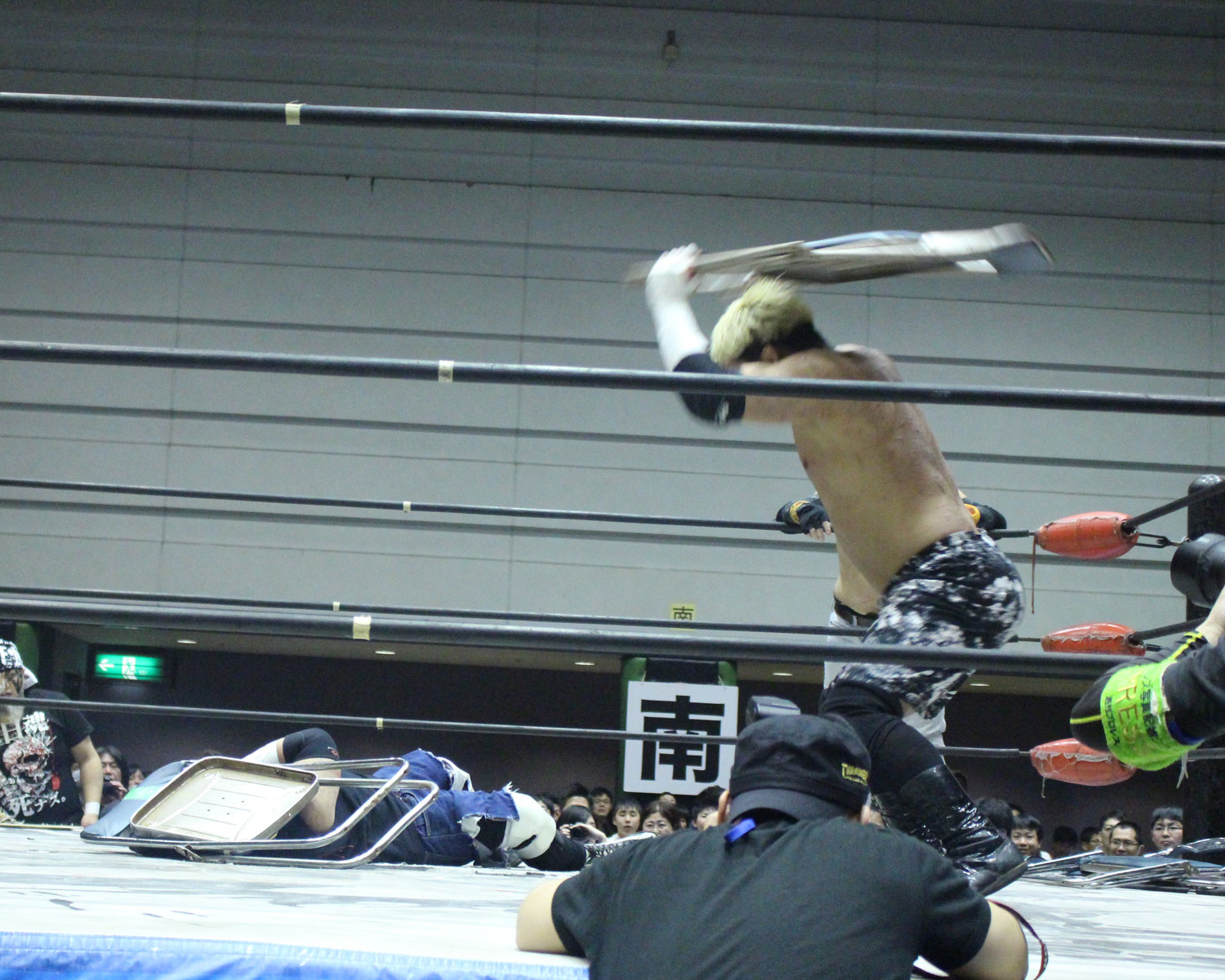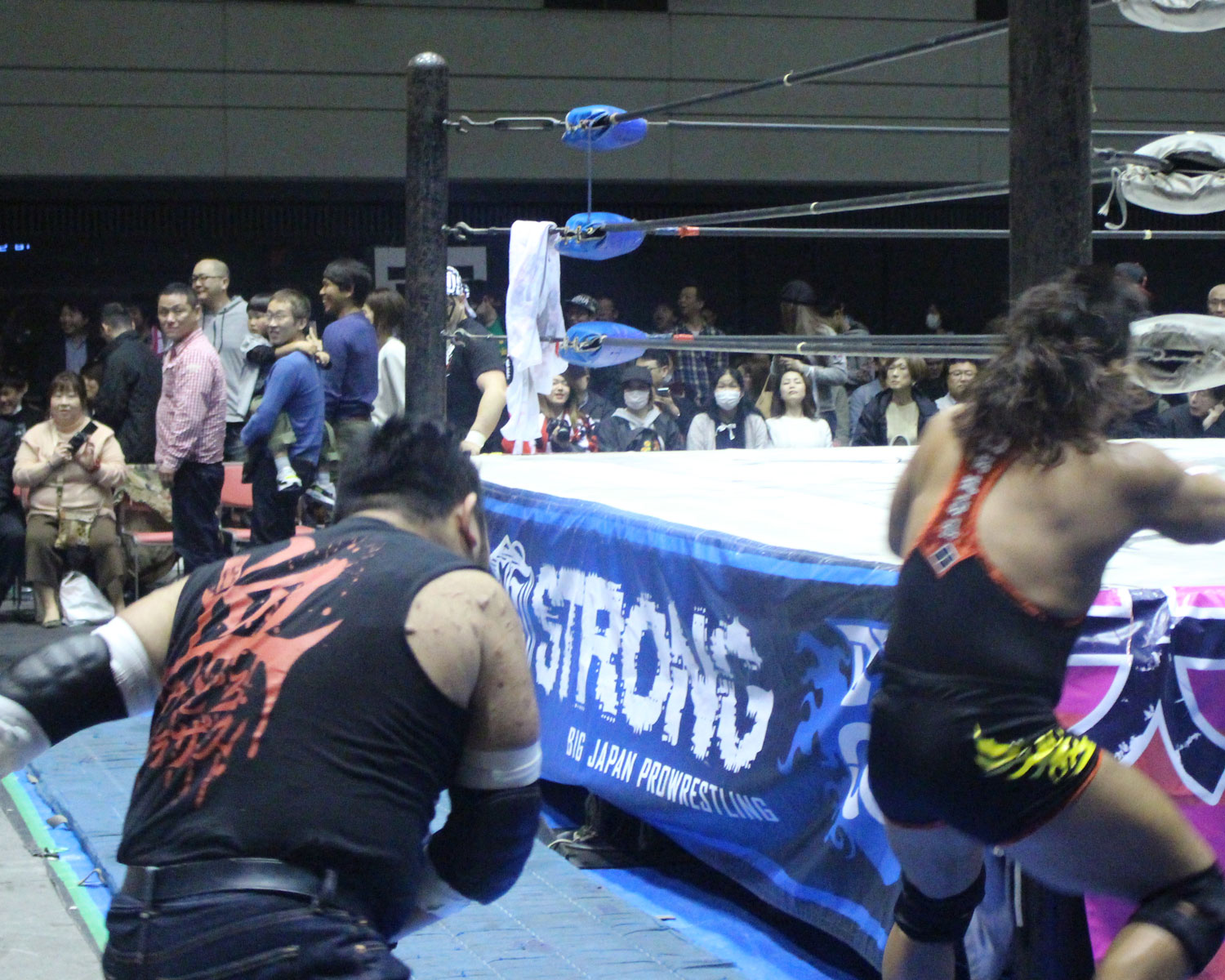 大阪府立で大日本を見るのも久しぶりでもあったが、第1試合から加藤が自らの頭突きで流血となるなど、激しい試合が多く、蛍光灯は使えなくてもその他のアイテムでデスマッチは盛り上げ、ストロングでも激しい試合を繰り広げた。第2試合を除いては・・・