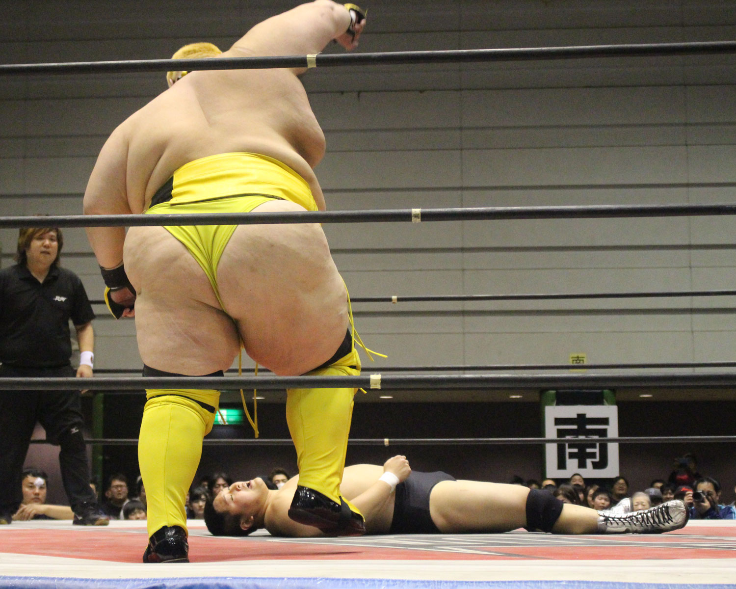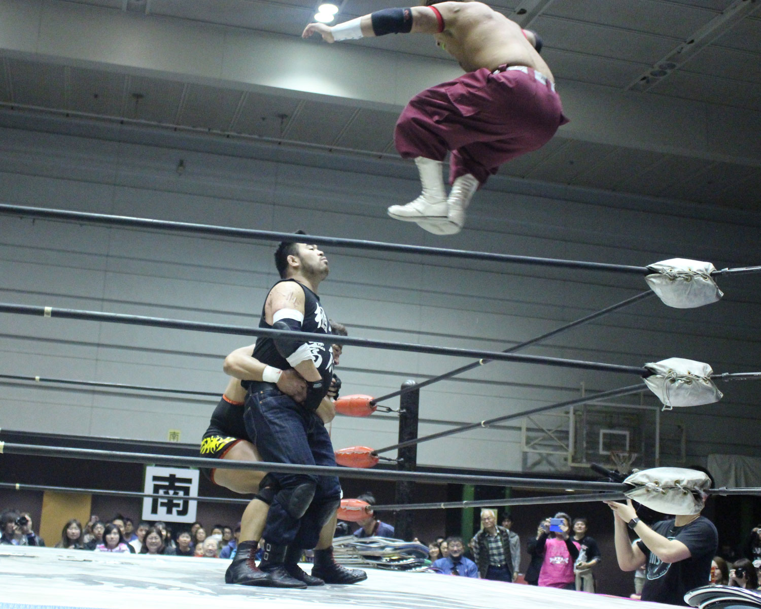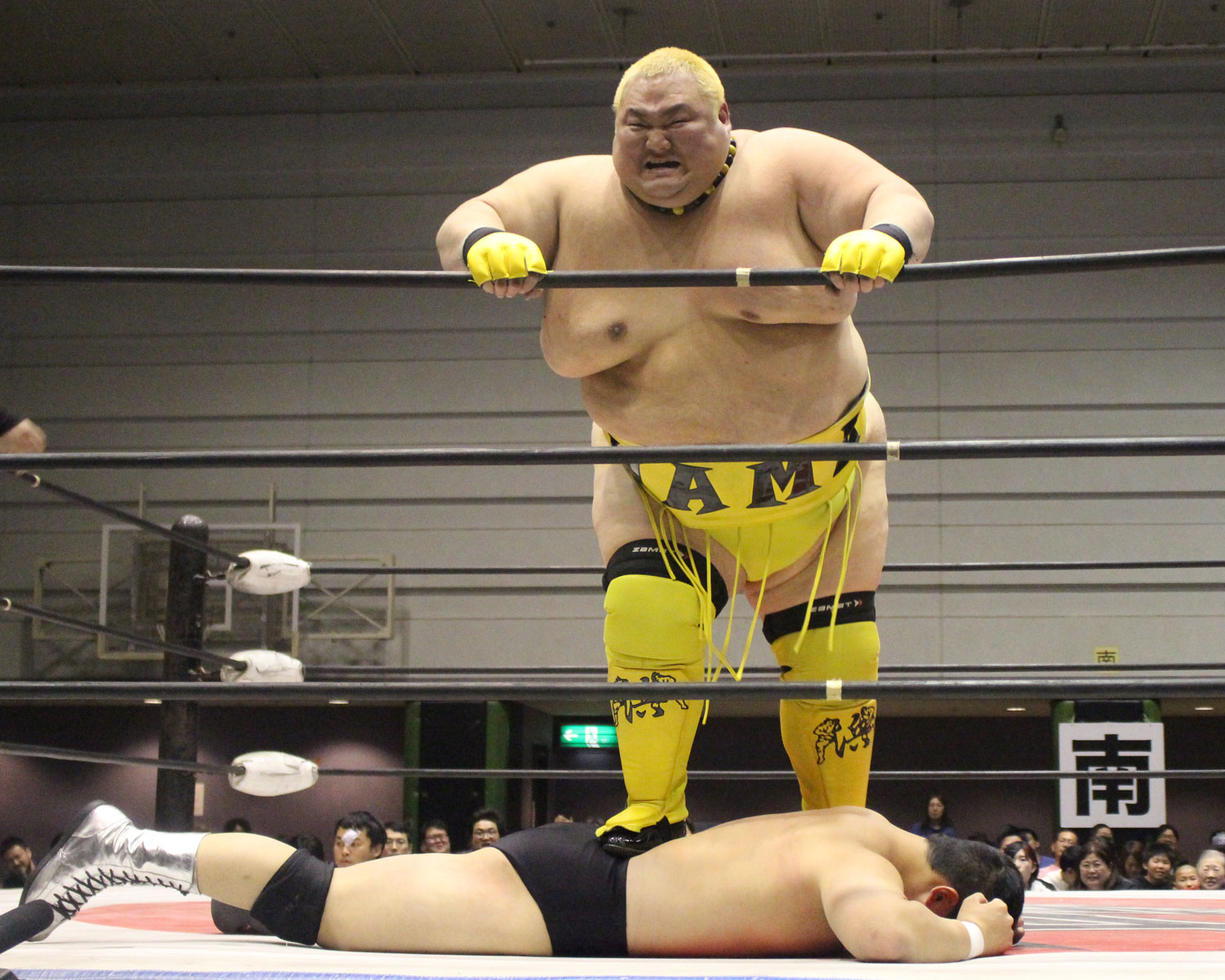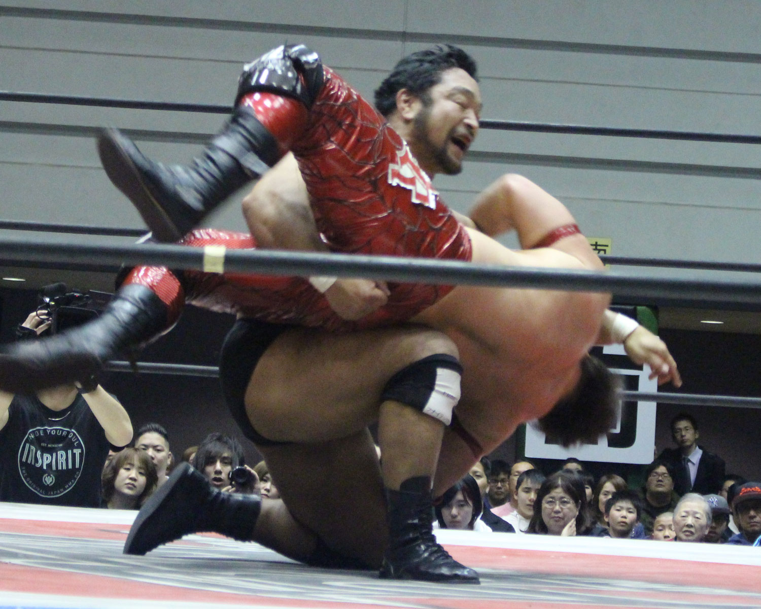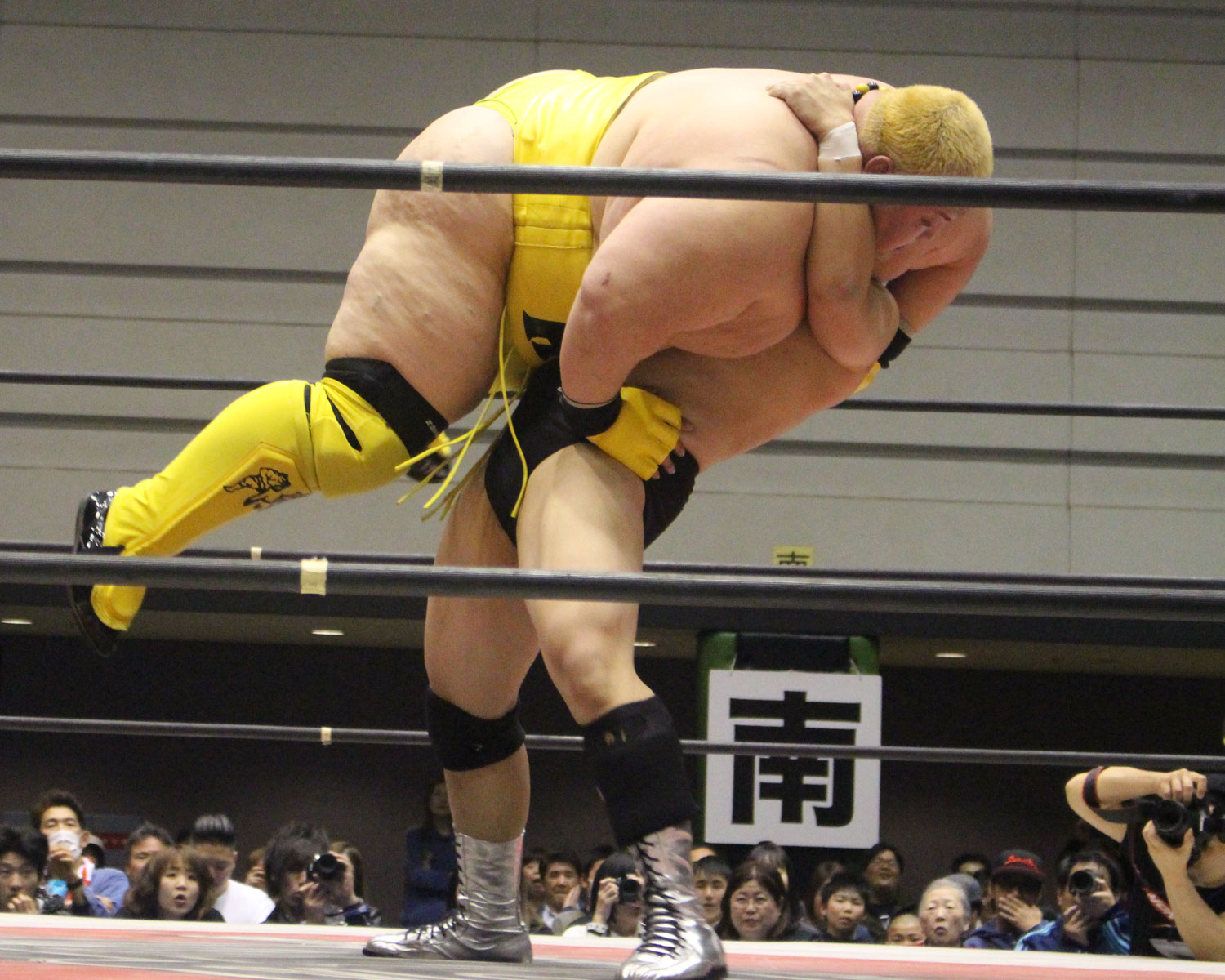 関本は投げ放しジャーマンも、起き上がった河上はランニングエルボーで応戦、両者ダウンの後で河上がハリケーンドライバーを狙うも、阻止した関本はサイドスープレックスからスピアーを連発する。