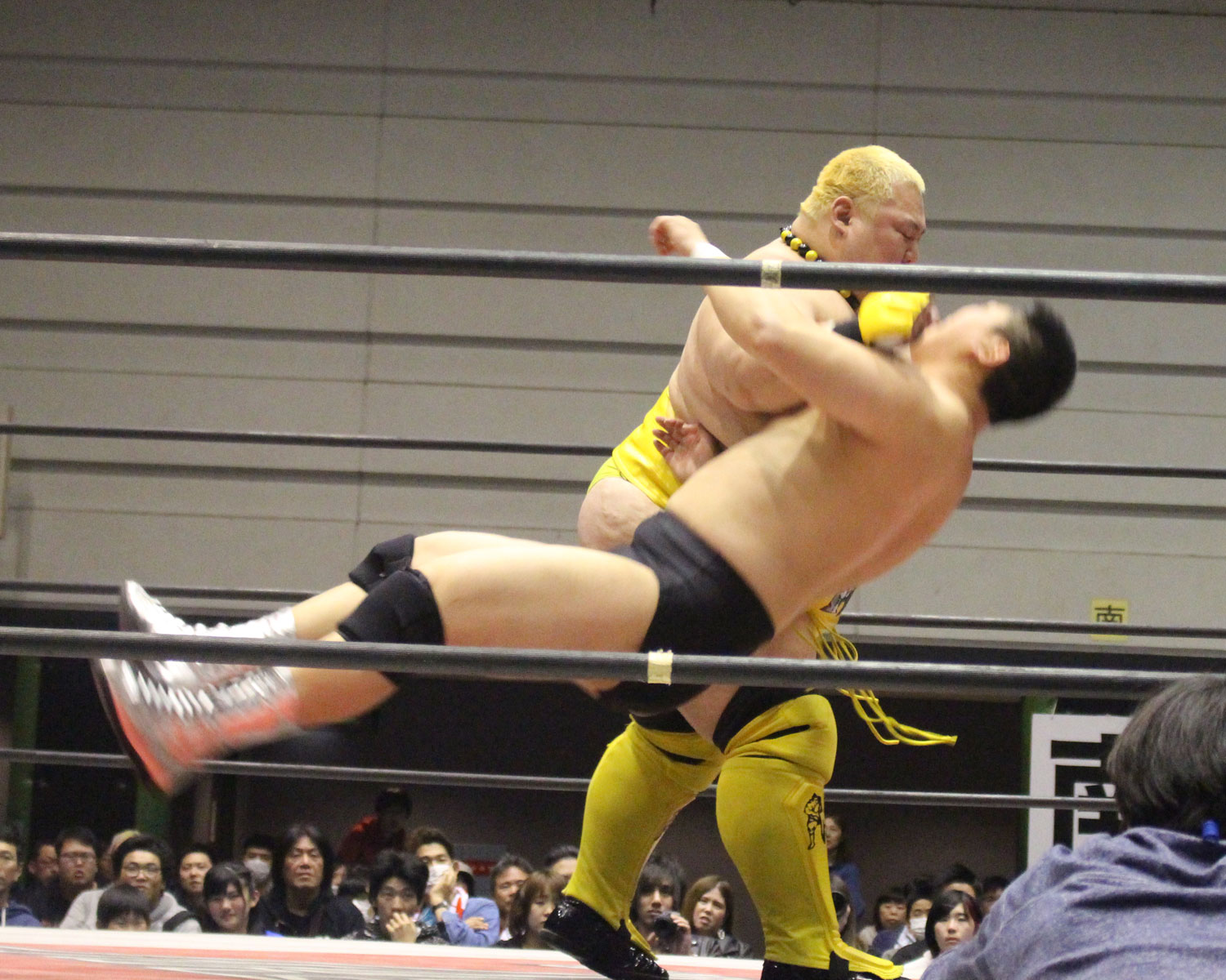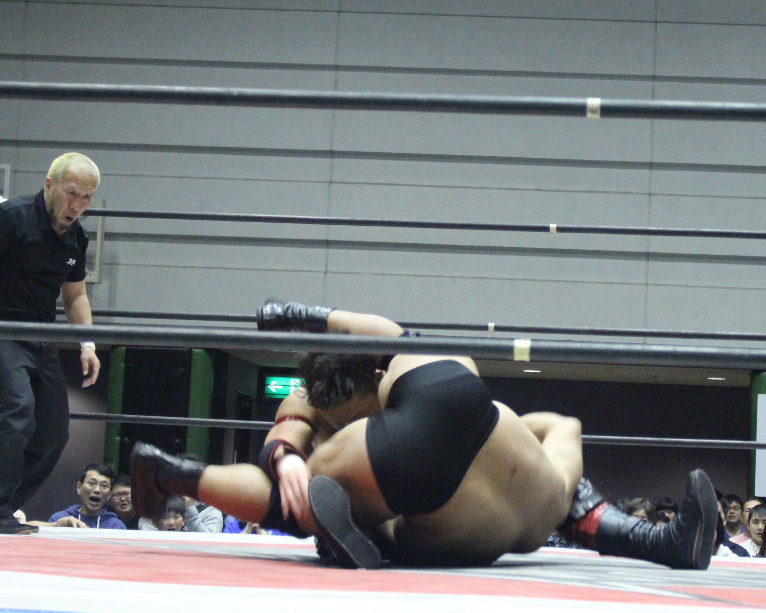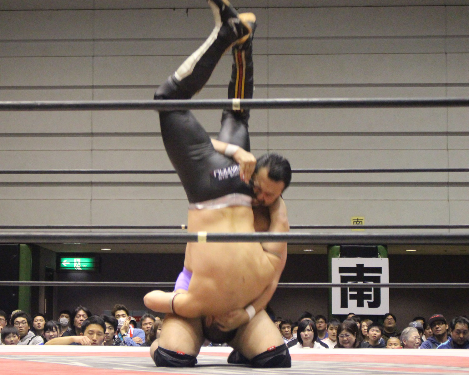 だが鈴木はジャーマンドライバーで突き刺すと、捻じ切るようなネックロックで絞めあげ、キャメルクラッチやフェースロックなどで徹底的に痛めつけにかかるも、エルボースマッシュをブロックした菊田威はトラースキックからフィッシャーマンズスープレックス、ダイビングフットスタンプと畳みかけ、正拳突きからスライディングキックと鈴木を追い詰めるが、鈴木はワンハンドバックブリーカーを決めてから強引に押さえ込んで3カウントとなり勝利も、鈴木は思わぬ苦戦を強いられた試合だった。