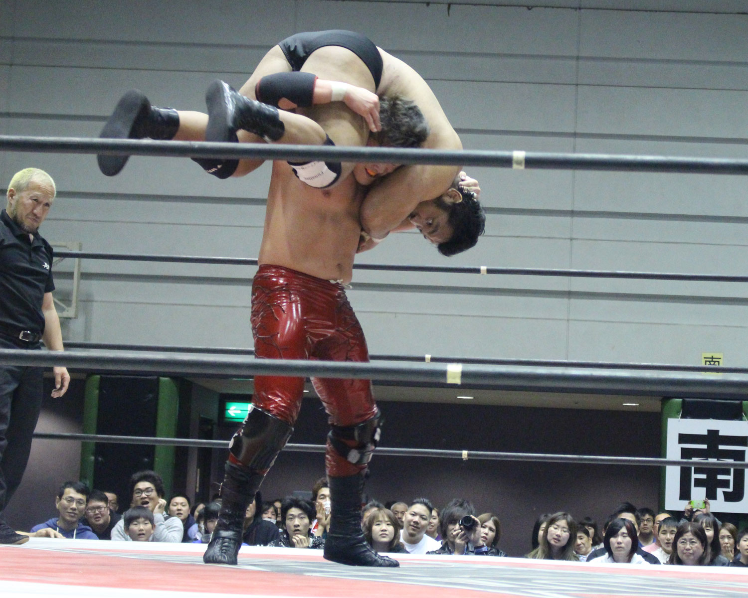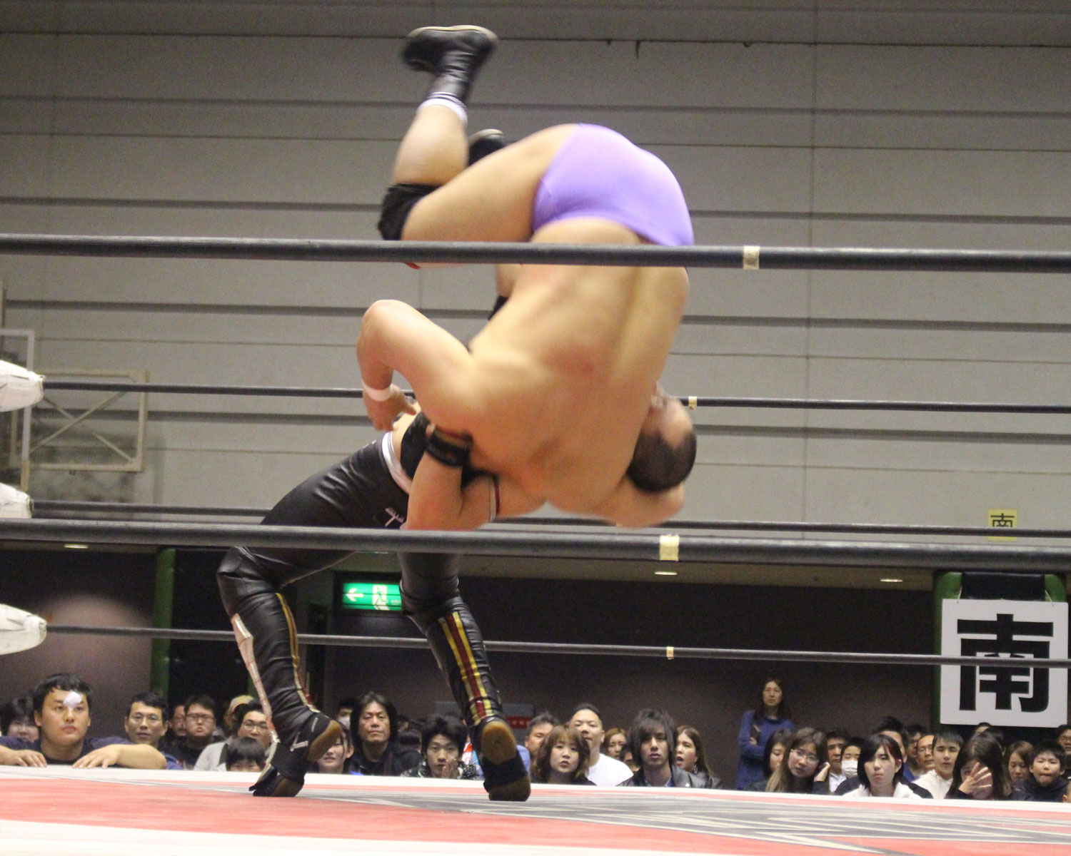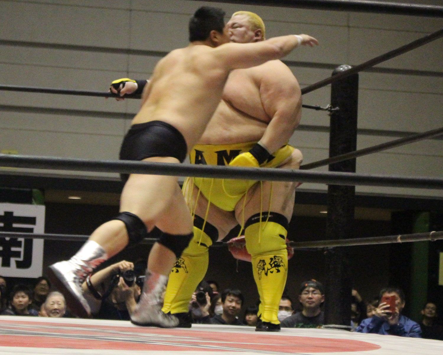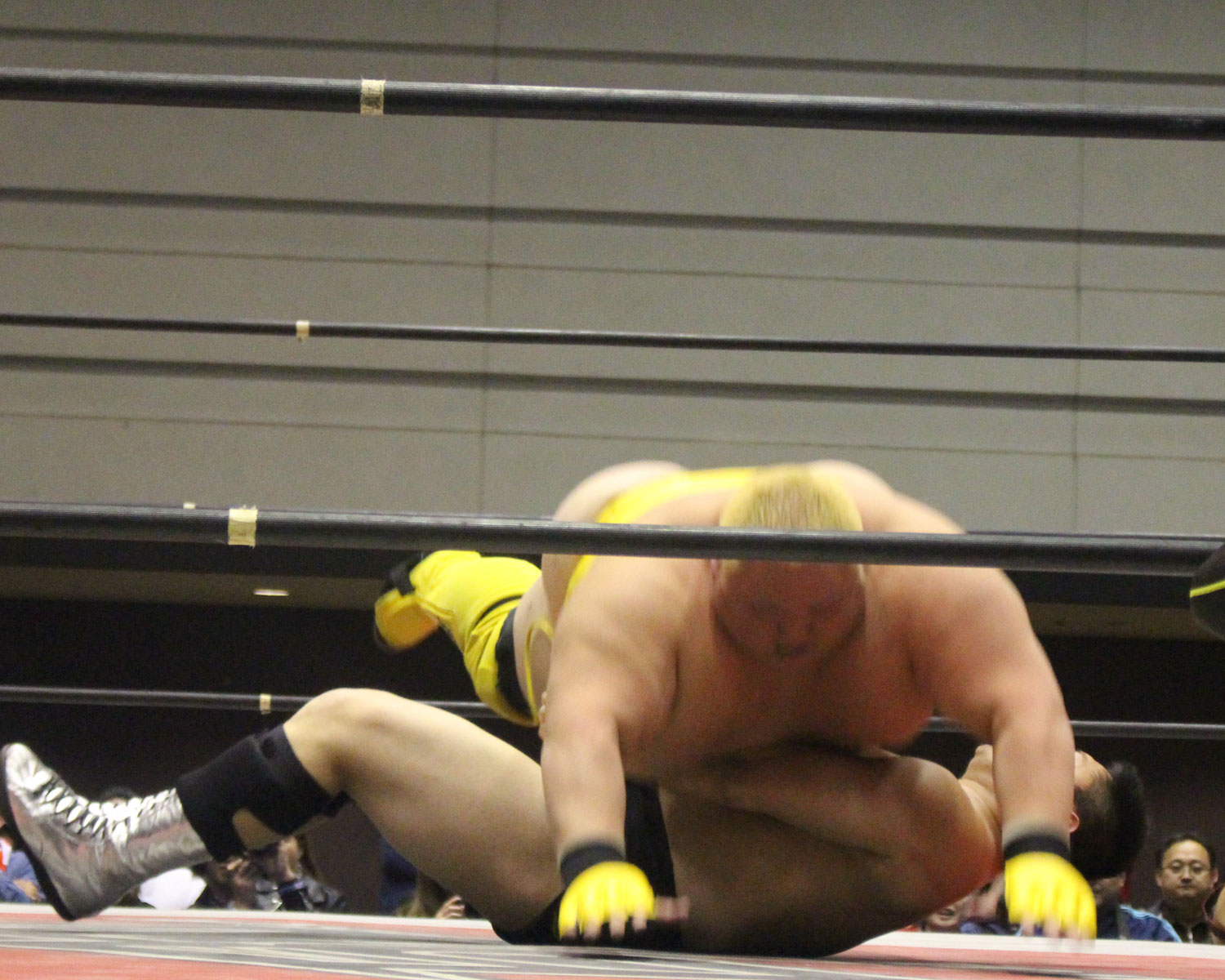 だが鈴木はジャーマンドライバーで突き刺すと、捻じ切るようなネックロックで絞めあげ、キャメルクラッチやフェースロックなどで徹底的に痛めつけにかかるも、エルボースマッシュをブロックした菊田威はトラースキックからフィッシャーマンズスープレックス、ダイビングフットスタンプと畳みかけ、正拳突きからスライディングキックと鈴木を追い詰めるが、鈴木はワンハンドバックブリーカーを決めてから強引に押さえ込んで3カウントとなり勝利も、鈴木は思わぬ苦戦を強いられた試合だった。