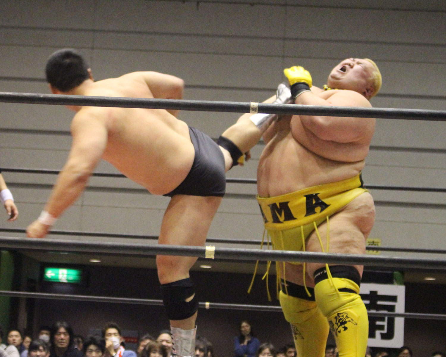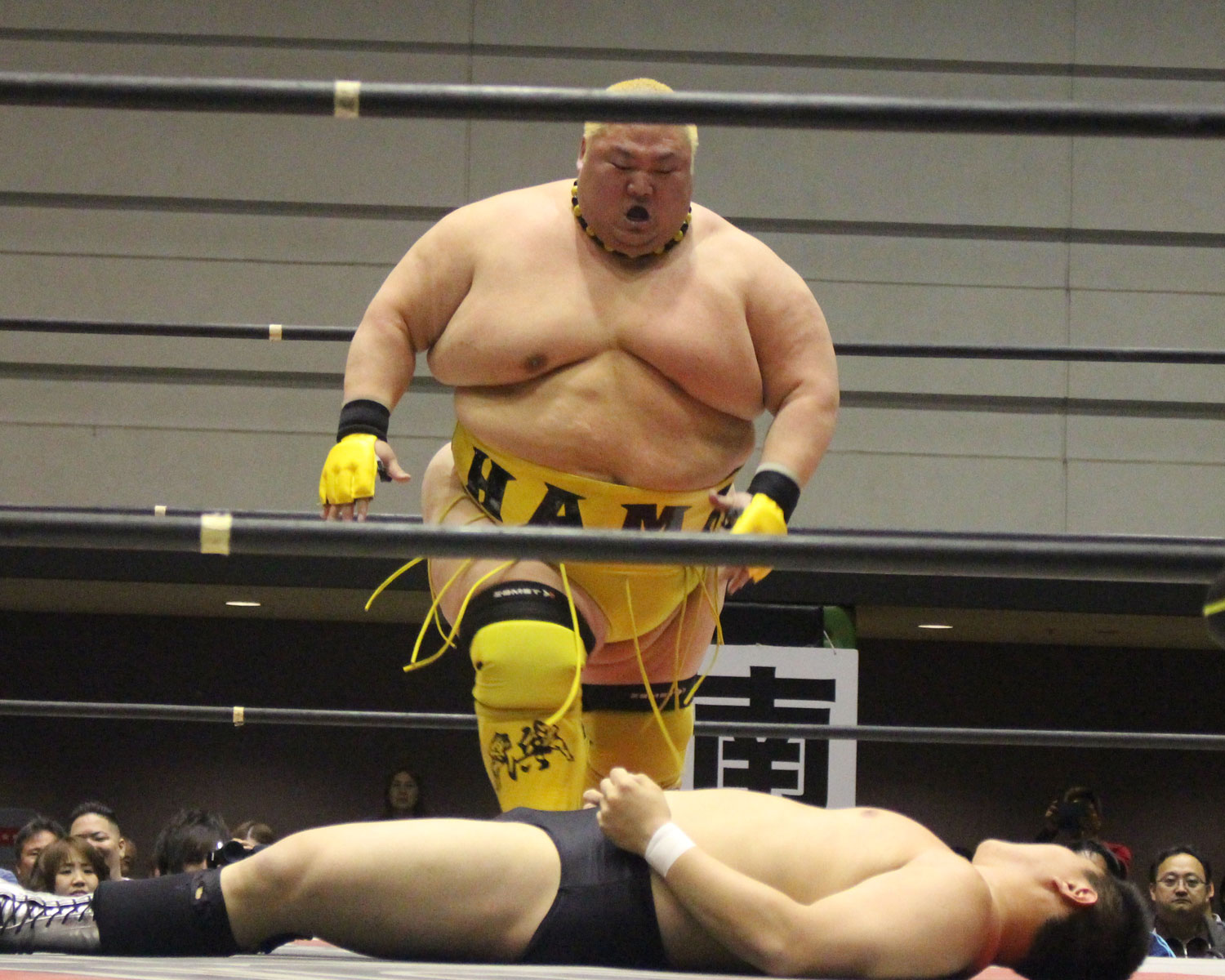 【浜の話】「(受け止めて勝ったが)受け止めてというか、デビューから間もない頃から俺知ってるんで、アイツ。一緒にタイトルも巻いたことあるし、数段力つけてますね。当たりすごい強かったです。後ろからラリアット食らった時フラッとなったもん。ビックリしちゃった。(まだまだ譲らない?)必死でしたよね。すごい、ベルト巻いてから変わったよアイツ、いいほうにね。でも一日の長で、プロレス生活も格闘技生活も俺も24年目入ってるからね。そのへんで、ホント経験の差だけで勝てた。力すごいよ。でもよかったです。(3勝目で明日大地と)まあ負けた試合もね、勝った試合も内容がいいので、明日は思い切っていきますよ。金星狙って思いっきりいきますよ」