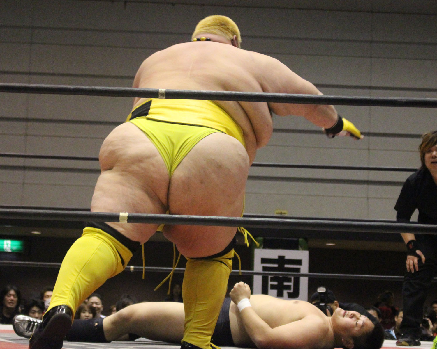 しかしダイビングショルダー狙いは、浜がデットリードライブで落とすと、重爆攻撃で神谷を追い詰め、神谷も延髄ラリアット、ラリアットの連発、トラースキック、ラリアットでやっと浜を倒すも、ボディースラム狙いは、浜の体重でつぶれ、最後はオオキドプレスの連発で3カウントとなり勝利、神谷は手痛い2敗目を喫し全公式戦を終えた。