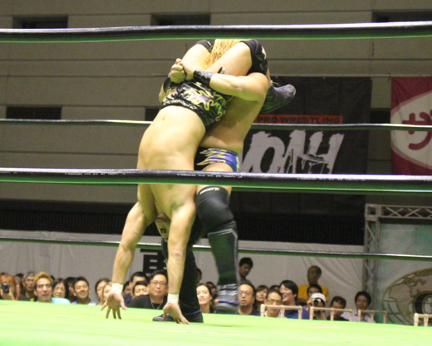 丸藤丸藤は捕獲式後頭部虎王を炸裂させると、腕を痛めたせいか横に崩れたがポールシフト式エメラルドフロウジョンで3カウントを奪いデビュー20周年を勝利で飾った。試合内容から見ても、今までと違って序盤からグラウンドからじっくり一点集中で下ごしらえするなど、ガンガン攻めていたKENTAではなくWWEでじっくり矯正されたイタミの試合を見せつけられ、丸藤も以前とは違うと感じたのか、ペースがつかめなかった。だが次第にイタミからKENTAらしさが出たところで、丸藤が一気に巻き返すことが出来たが、KENTAではなくイタミ・ヒデオになったことを改めて痛感させられた。しかしWWEでは使えなかったGAME OVERやgo 2 sleepも出すことが出来たからイタミしてみれば思い切りやれたのではないだろうか、そういった意味では今回の丸藤vsイタミは今までのオマージュ的なものではなく、現在進行形の戦いだった。