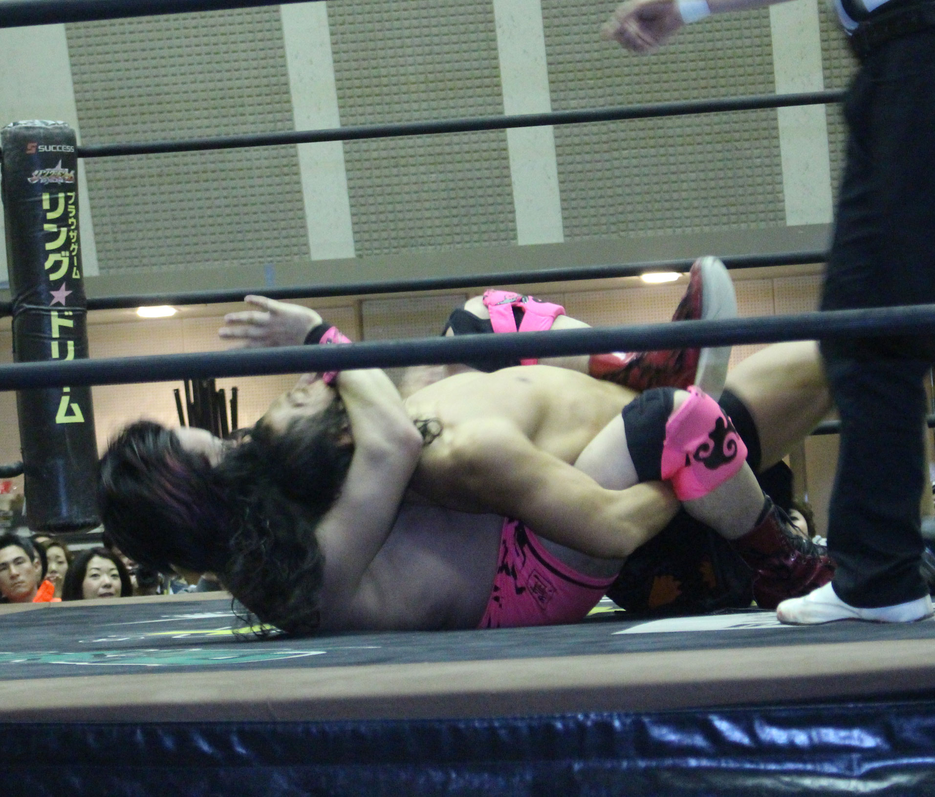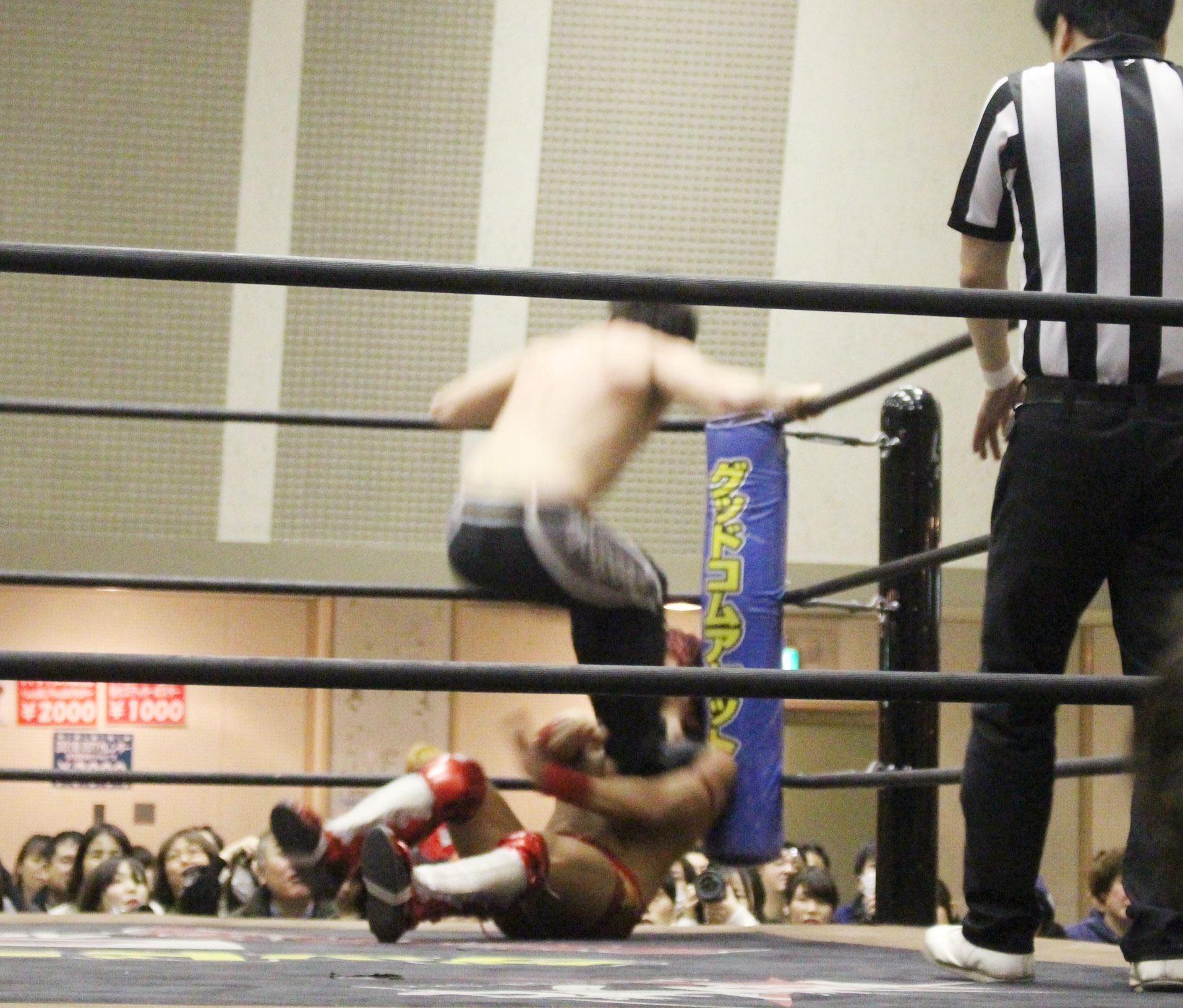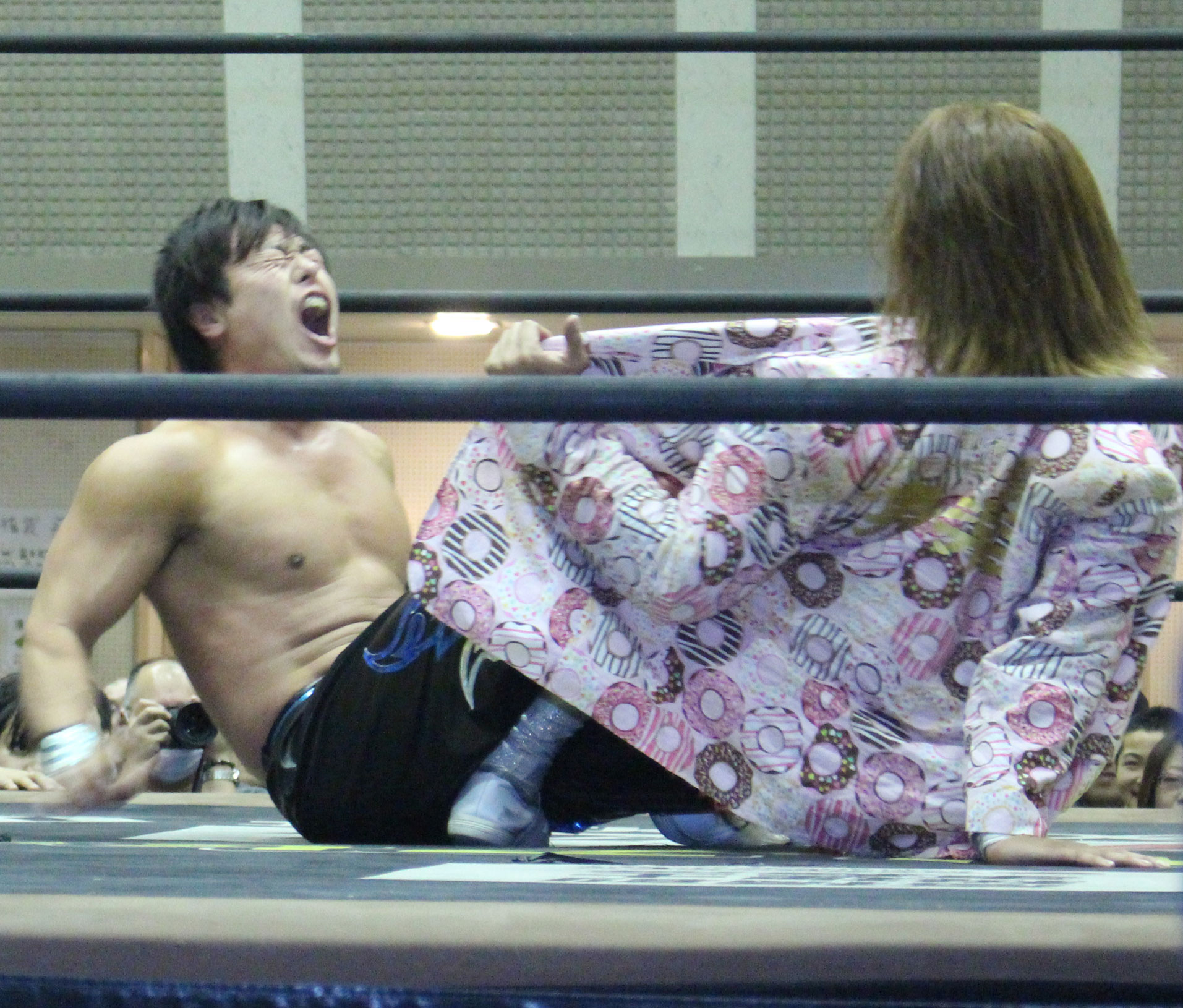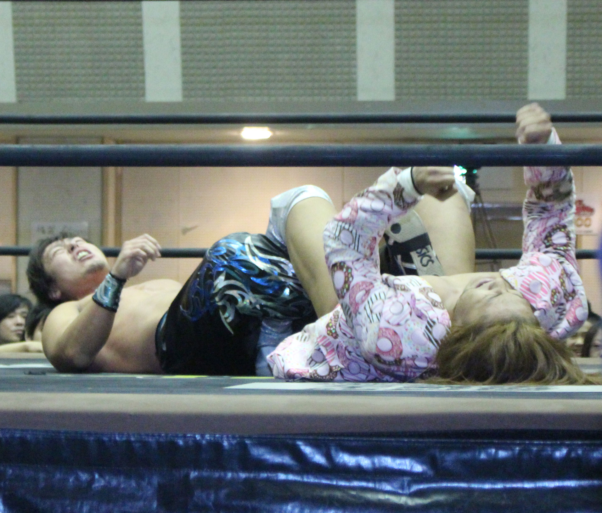 HARASHIMAにとってアンラッキーだったのはリングが壊れたこと、応急修理はされたものの、再び壊れる危険性もあったことで、HARASHIMAの使う技が制限されてしまった。リングが壊れなければ違った展開になったのかもしれない。