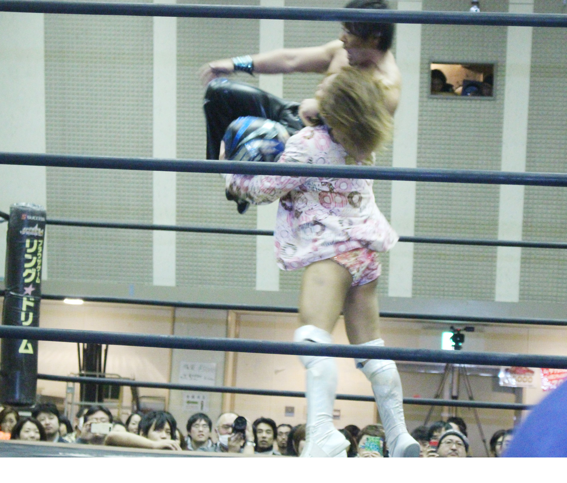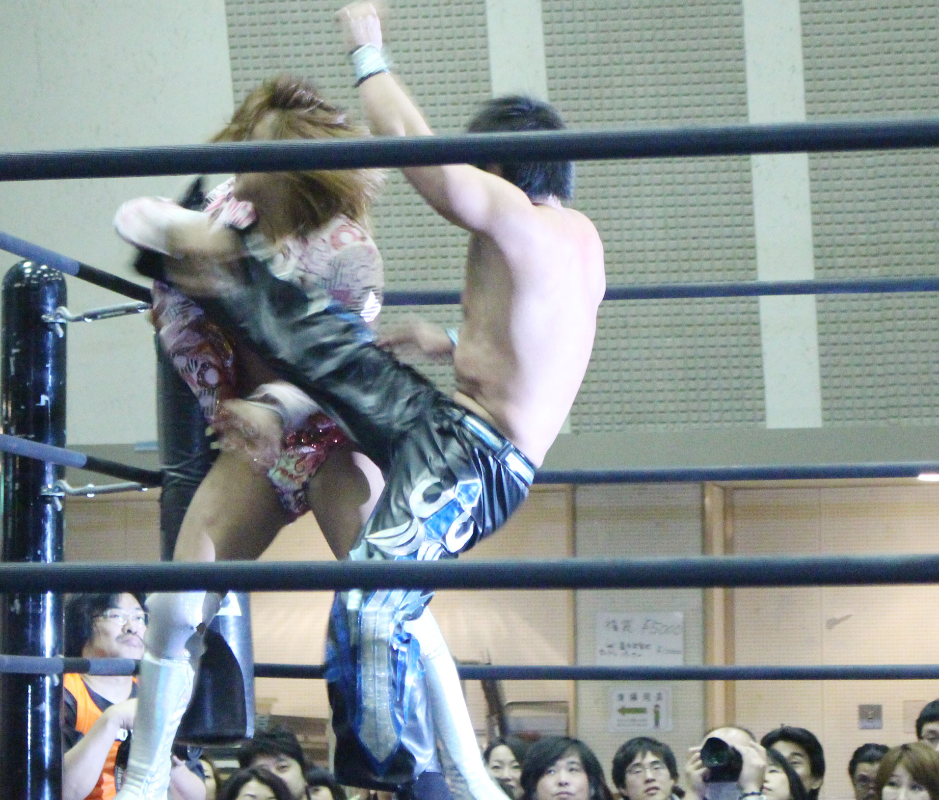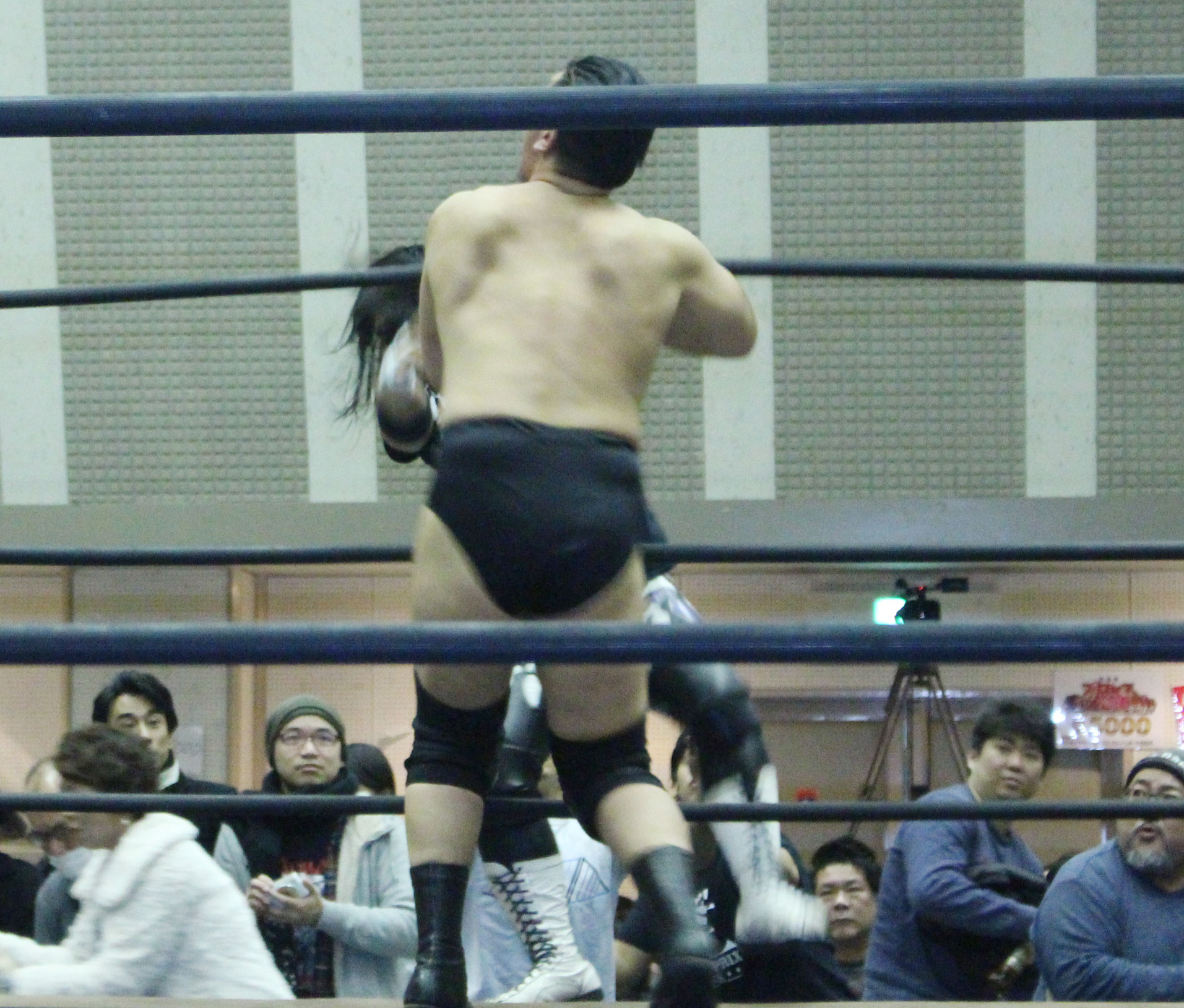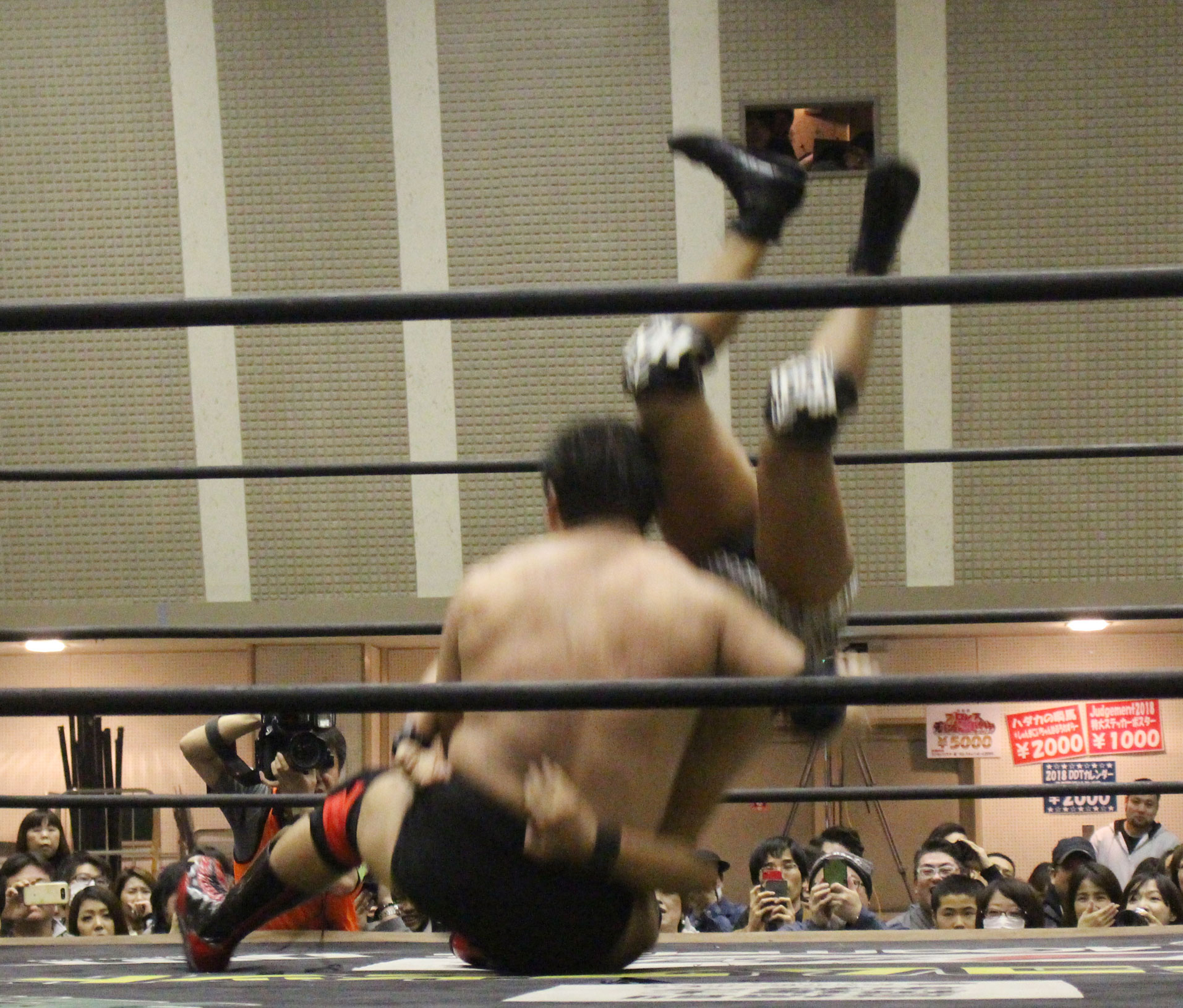 HARASHIMAにとってアンラッキーだったのはリングが壊れたこと、応急修理はされたものの、再び壊れる危険性もあったことで、HARASHIMAの使う技が制限されてしまった。リングが壊れなければ違った展開になったのかもしれない。