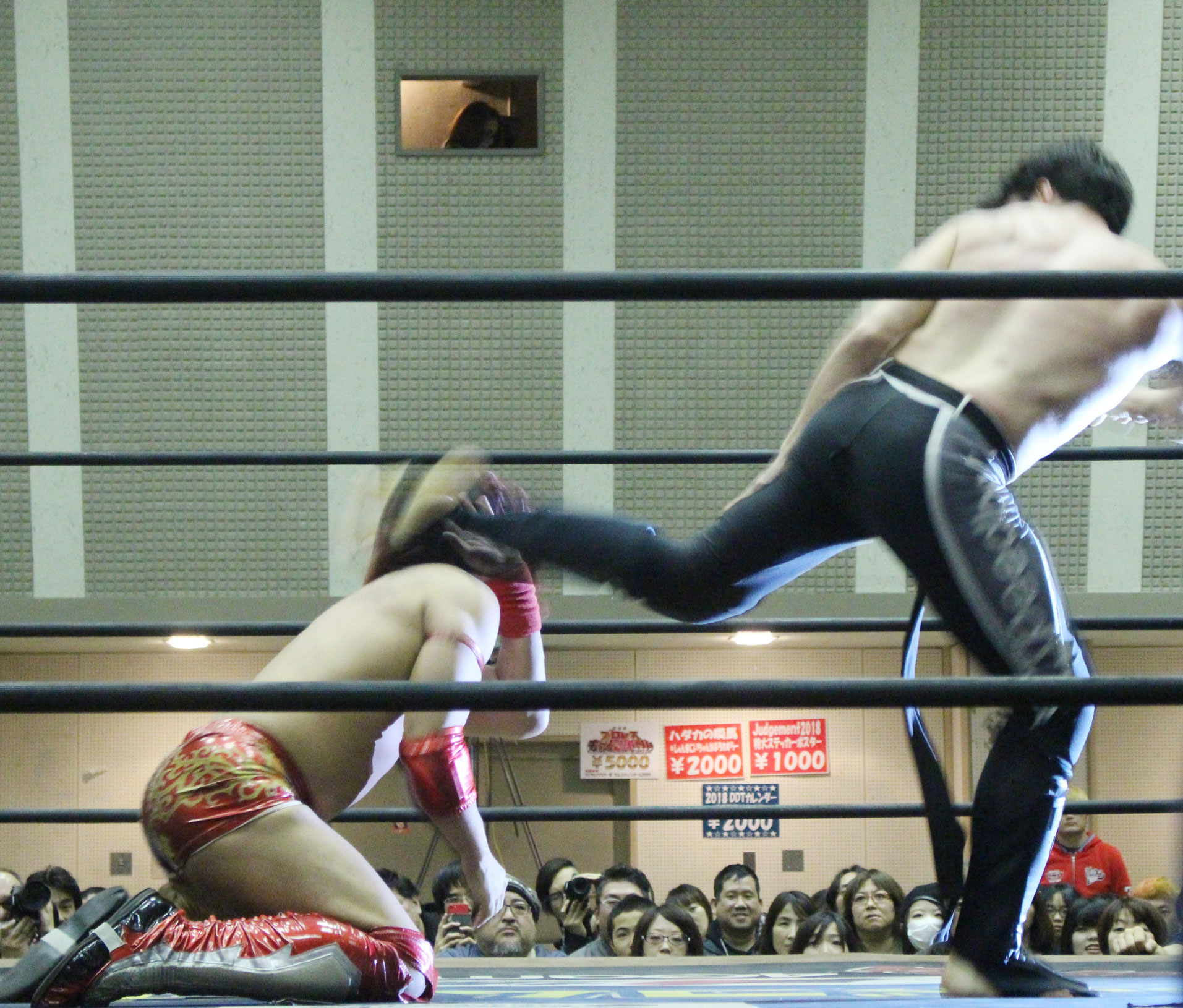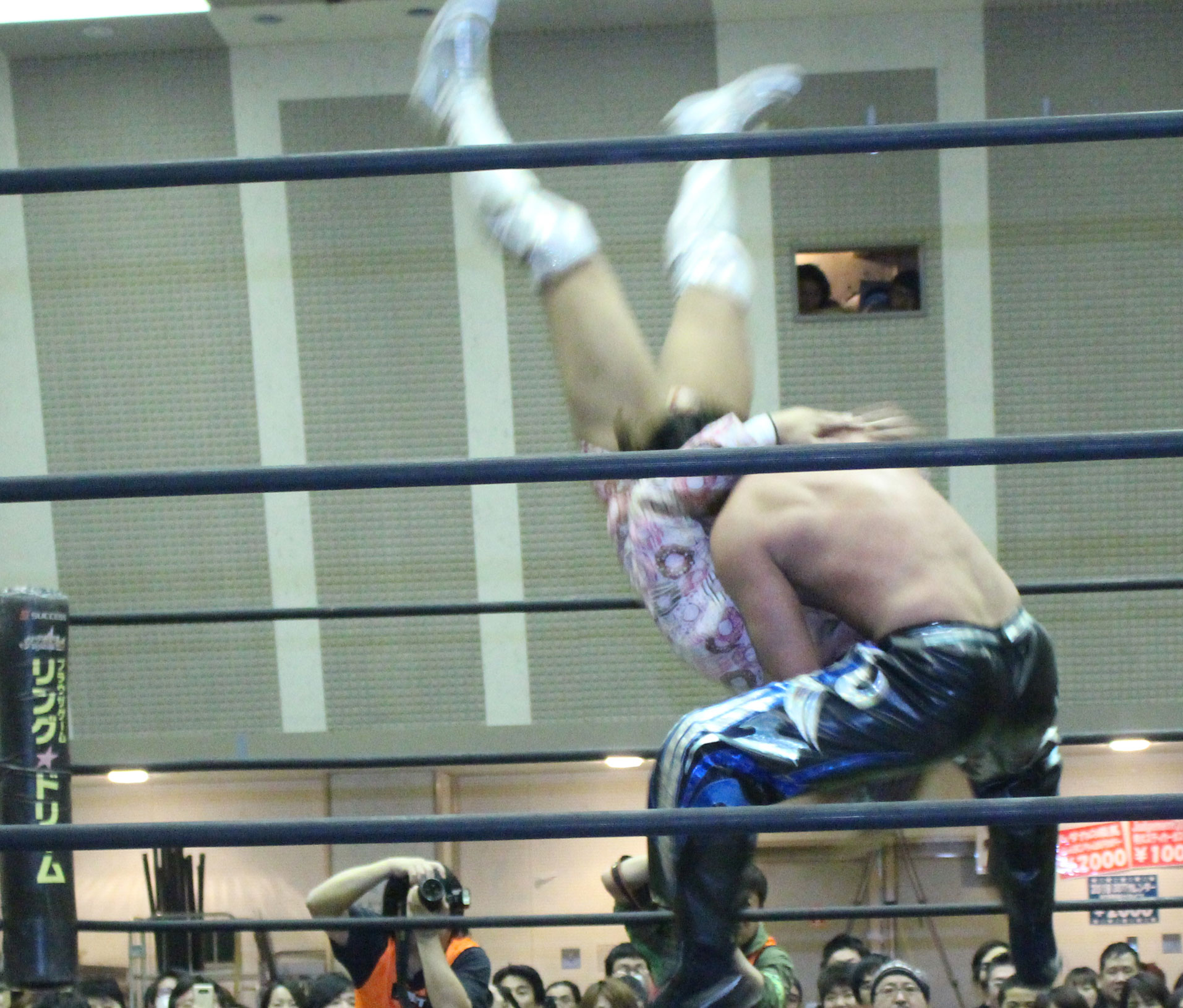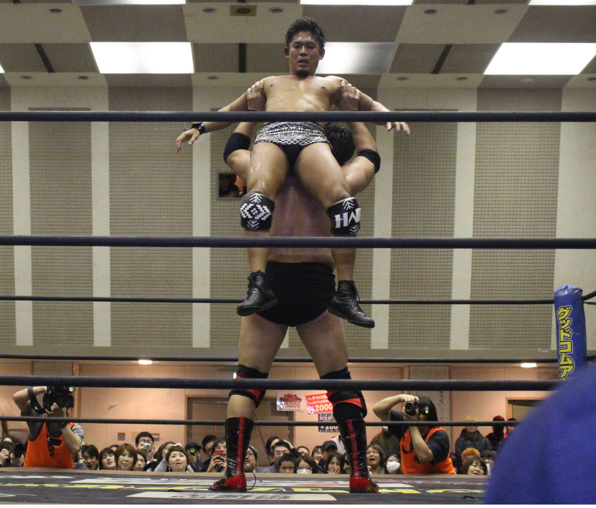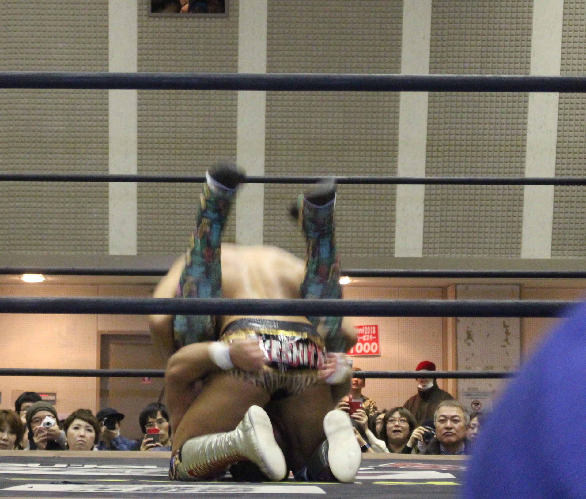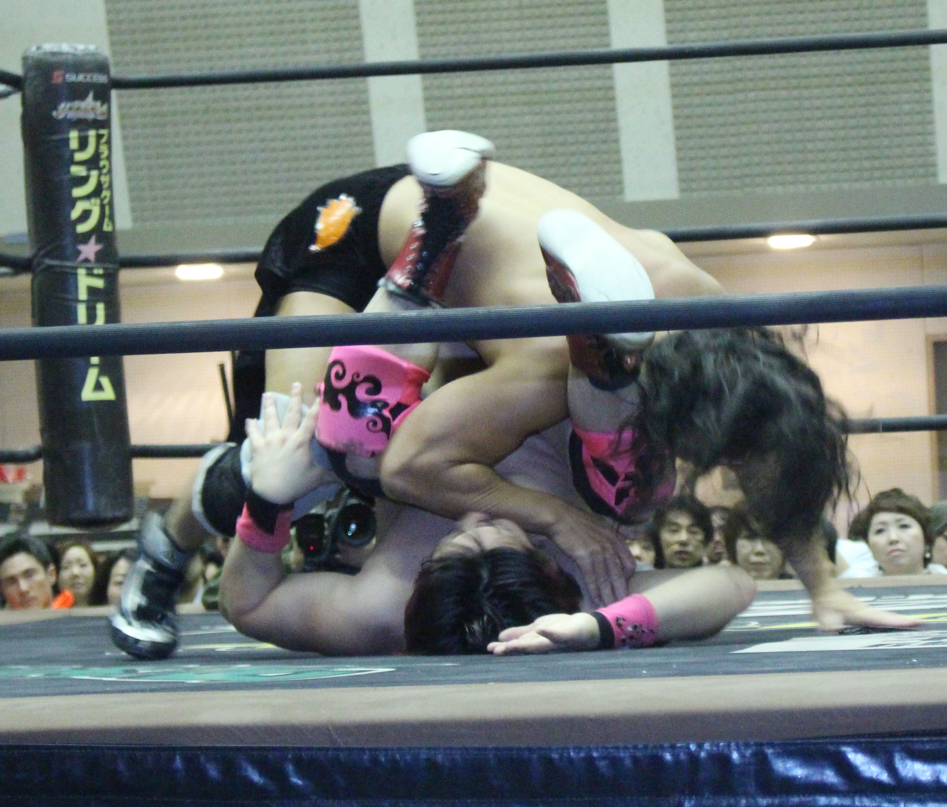 HARASHIMAにとってアンラッキーだったのはリングが壊れたこと、応急修理はされたものの、再び壊れる危険性もあったことで、HARASHIMAの使う技が制限されてしまった。リングが壊れなければ違った展開になったのかもしれない。