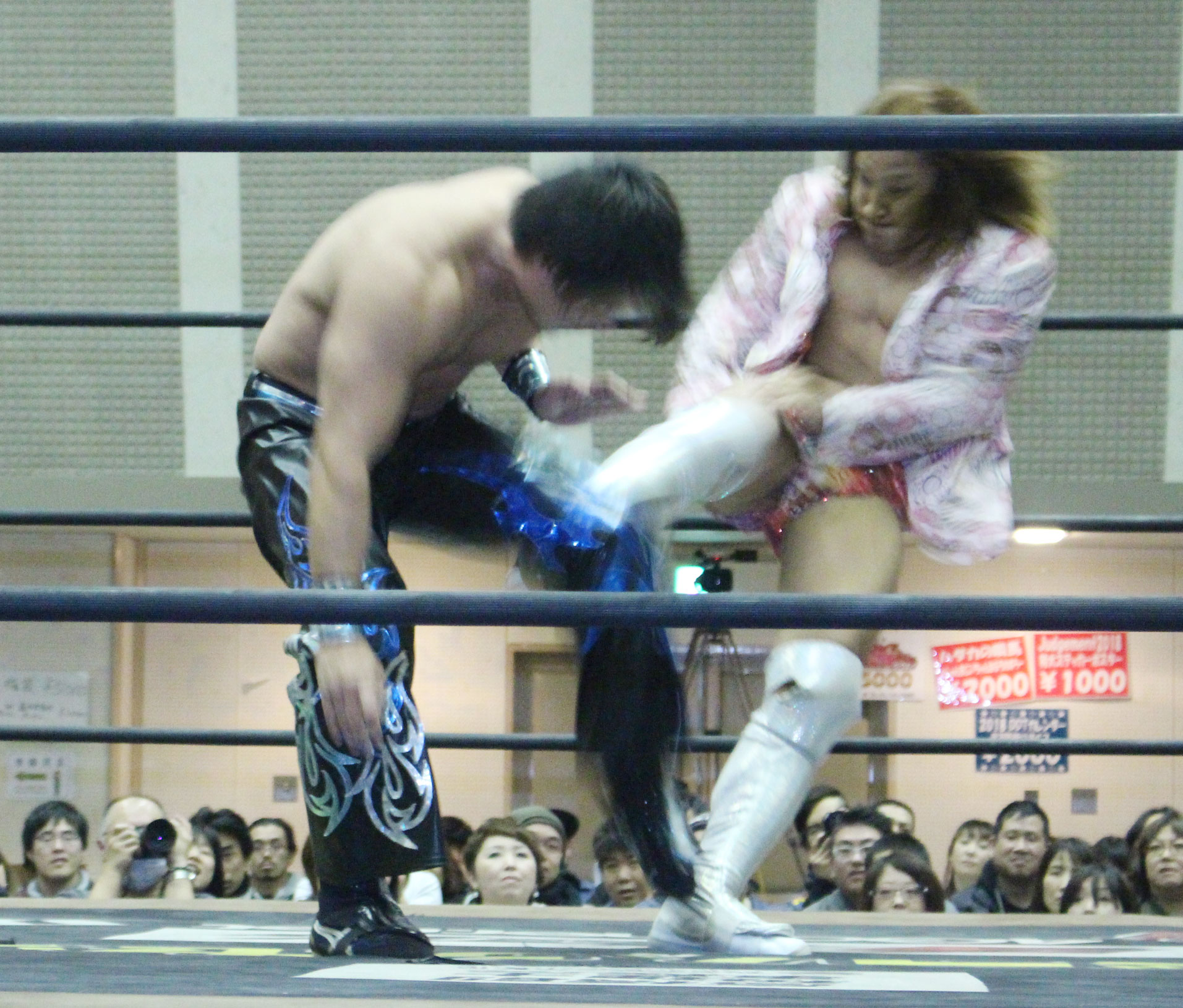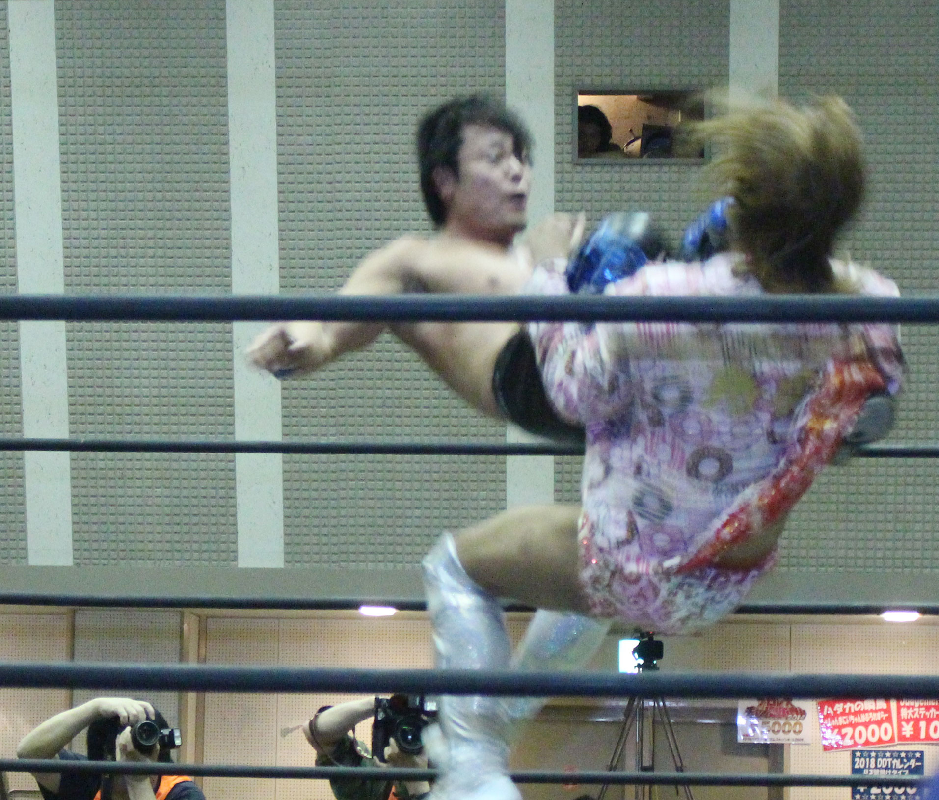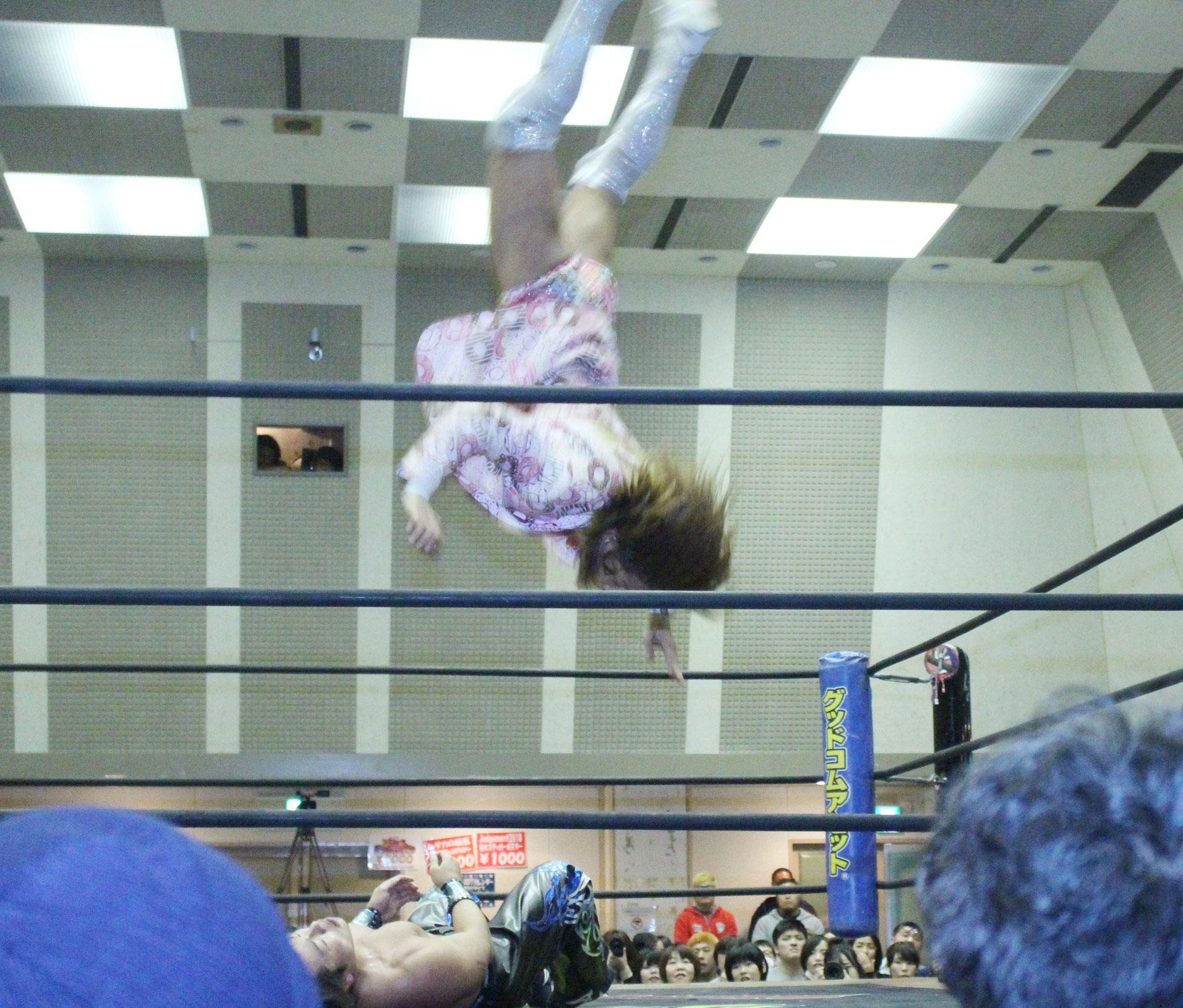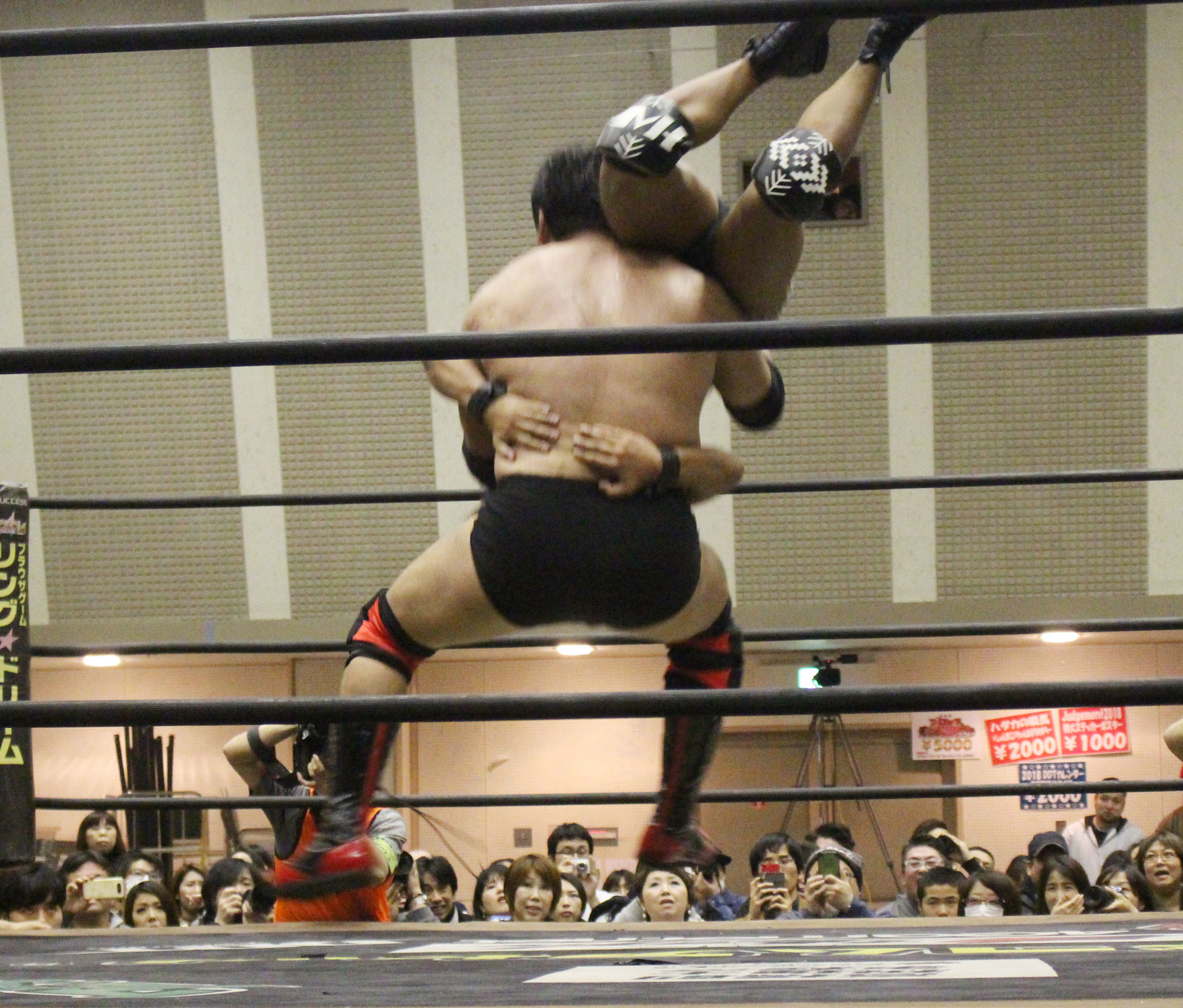 HARASHIMAにとってアンラッキーだったのはリングが壊れたこと、応急修理はされたものの、再び壊れる危険性もあったことで、HARASHIMAの使う技が制限されてしまった。リングが壊れなければ違った展開になったのかもしれない。