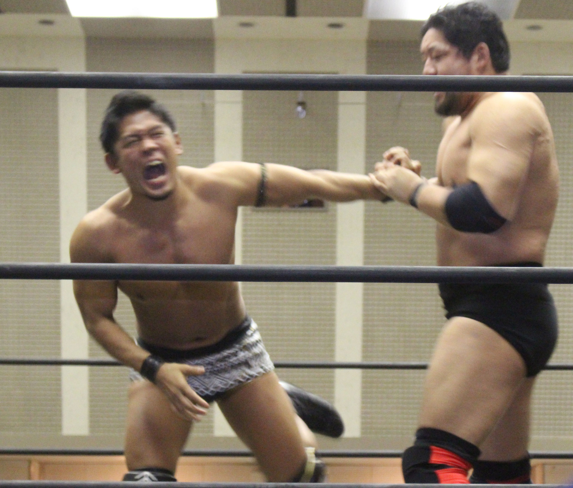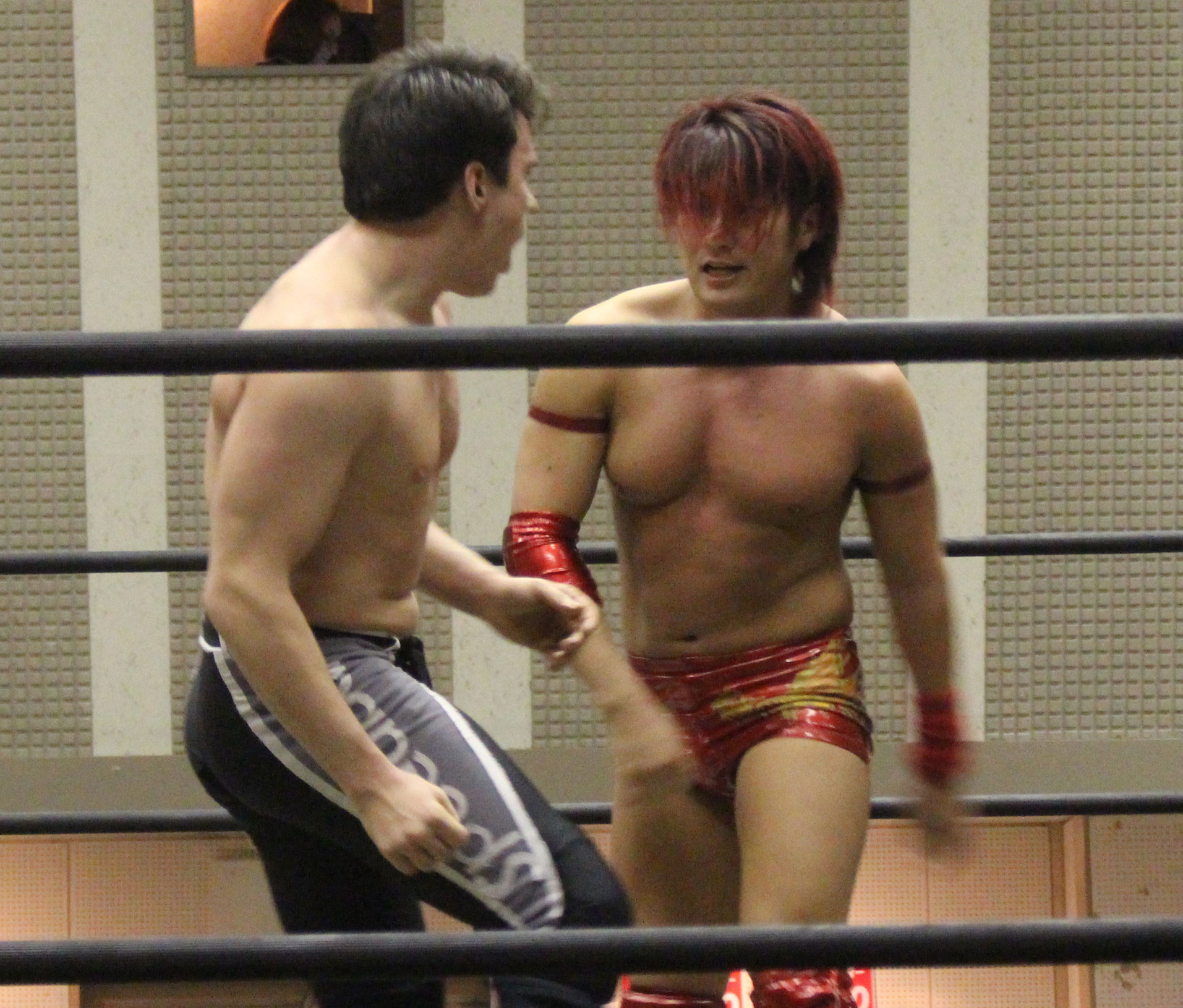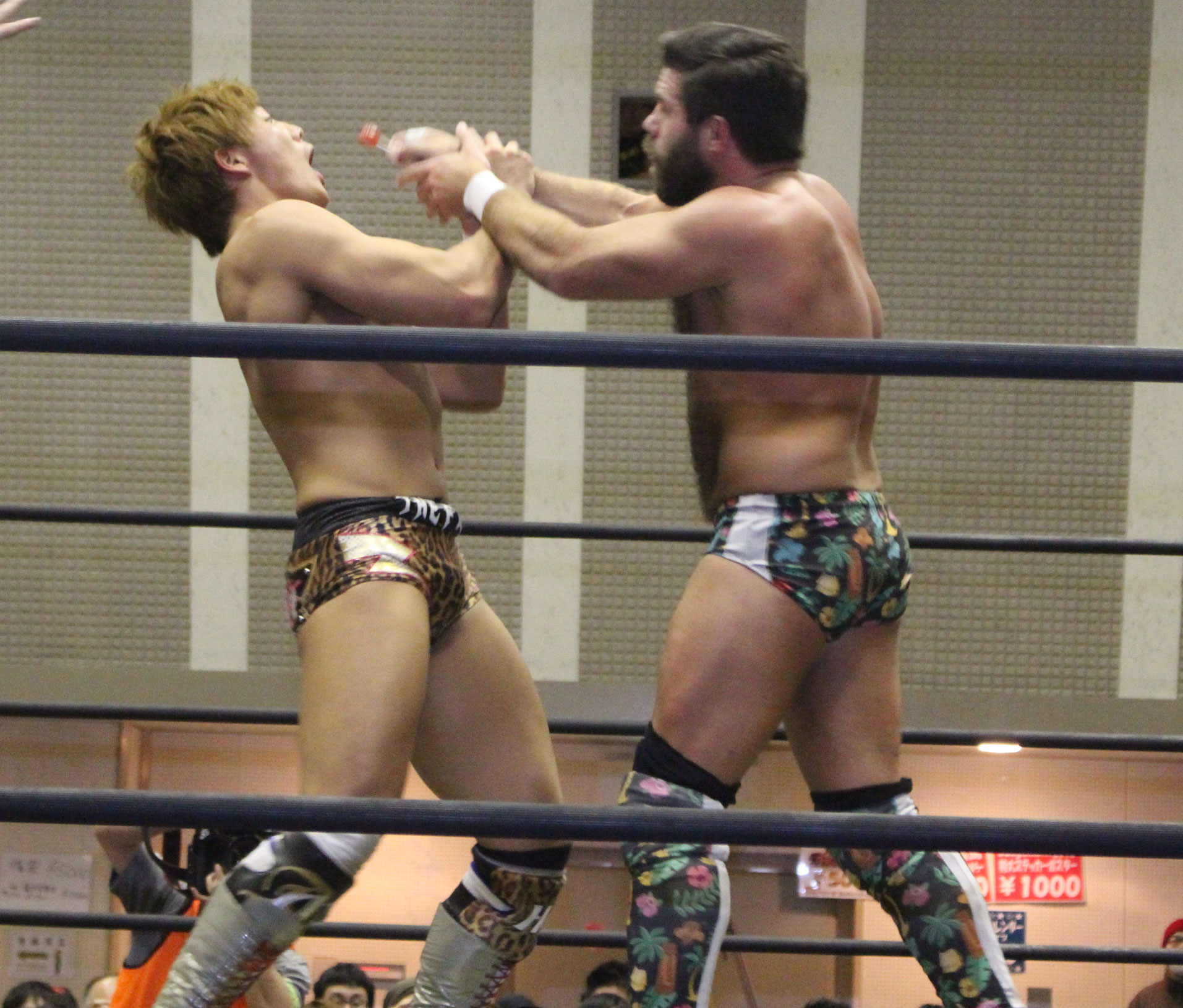 佐々木大輔 ○遠藤哲哉 マッド・ポーリー(15分7秒 片エビ固め)竹下幸之介 彰人 ×マイク・ベイリー