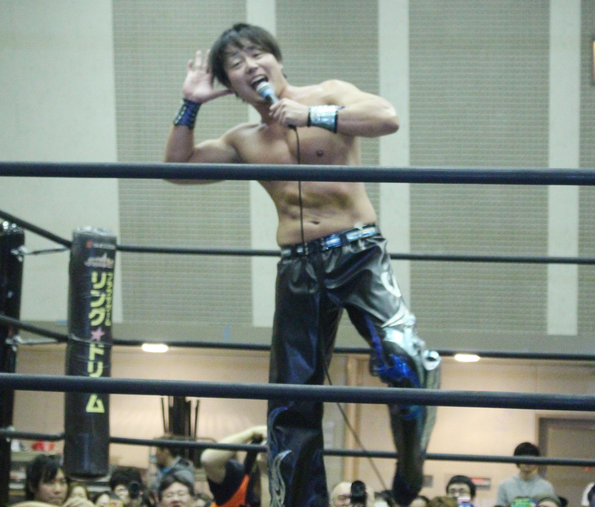 イケメン 「(体育座りをして遠くを見ながら)僕の…処女を失いました。本来ならば強姦罪で警察に被害届を出したいところなんですけど、まだDDTに出たいのでDDTに出てるあいだは被害届を出しません。以上です。……あ、両国!(イスに座り直して)両国でこの違った形というか、よりエンターテインメントなシングルマッチが出来ると思うと、ゾクッとしましたね。いまやっと。リングでは何言ってるか全然分からなくて。ケツの穴で会話を聞いていたって感じです。ディーノさんの耳に入った言葉が俺のケツの穴から、俺の脳みそに伝わってきて一瞬何のことか分からなかったんですけど、ササダンゴマシンさんが俺と闘いたいって! 何で?」――それだけDDTにイケメン選手が出ているので、自分のポジションが危ういという危機感からだと言ってましたが。