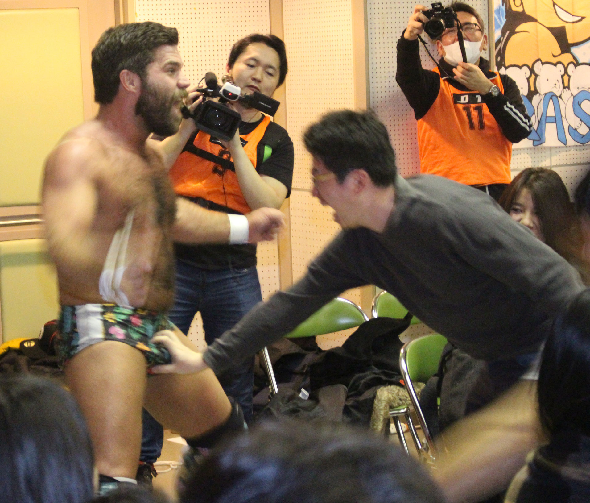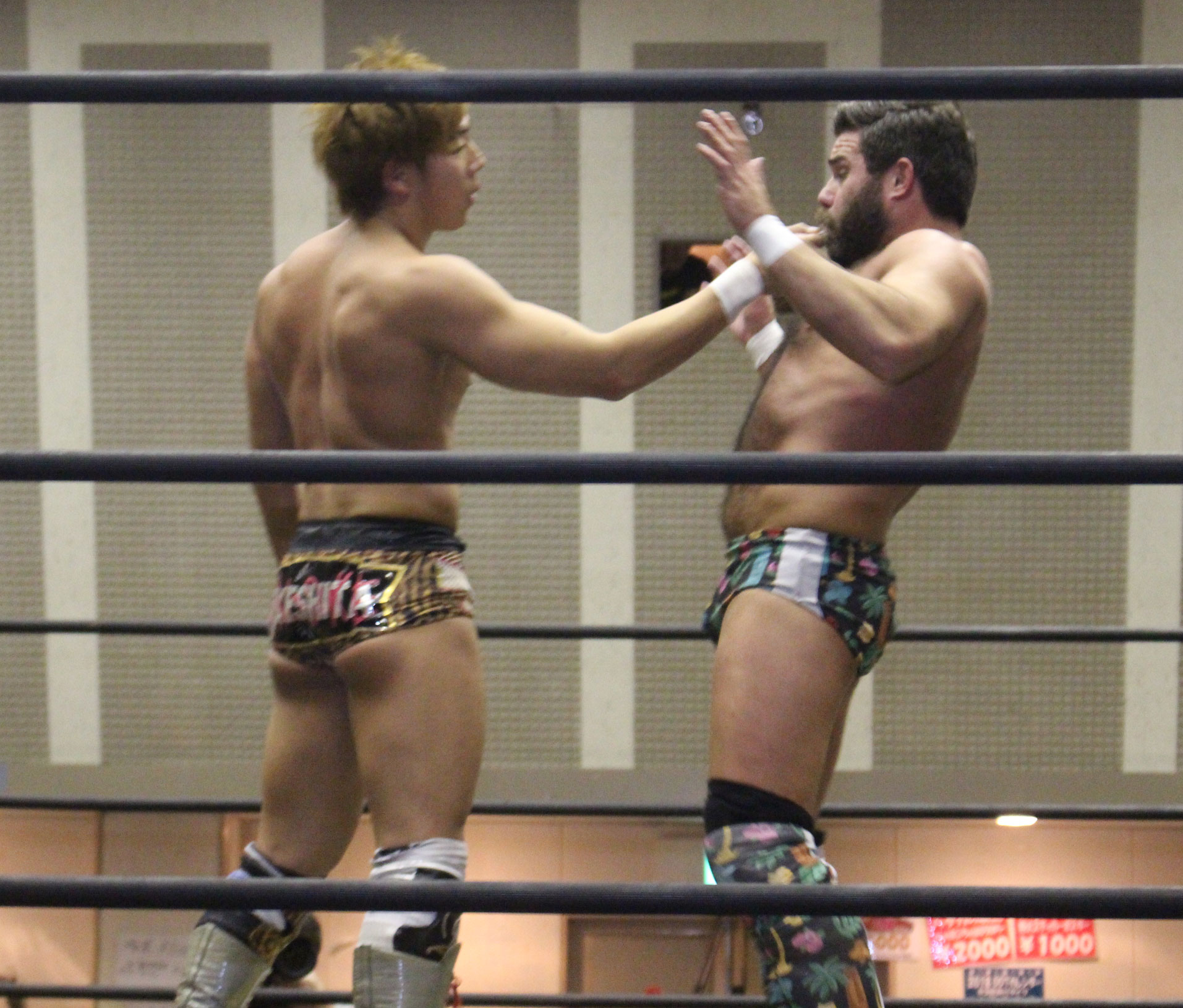 ▲男色ディーノ 石井慧介(9分47秒 無効試合)黒潮"イケメン"二郎 ▲ジョーイ・ライアン