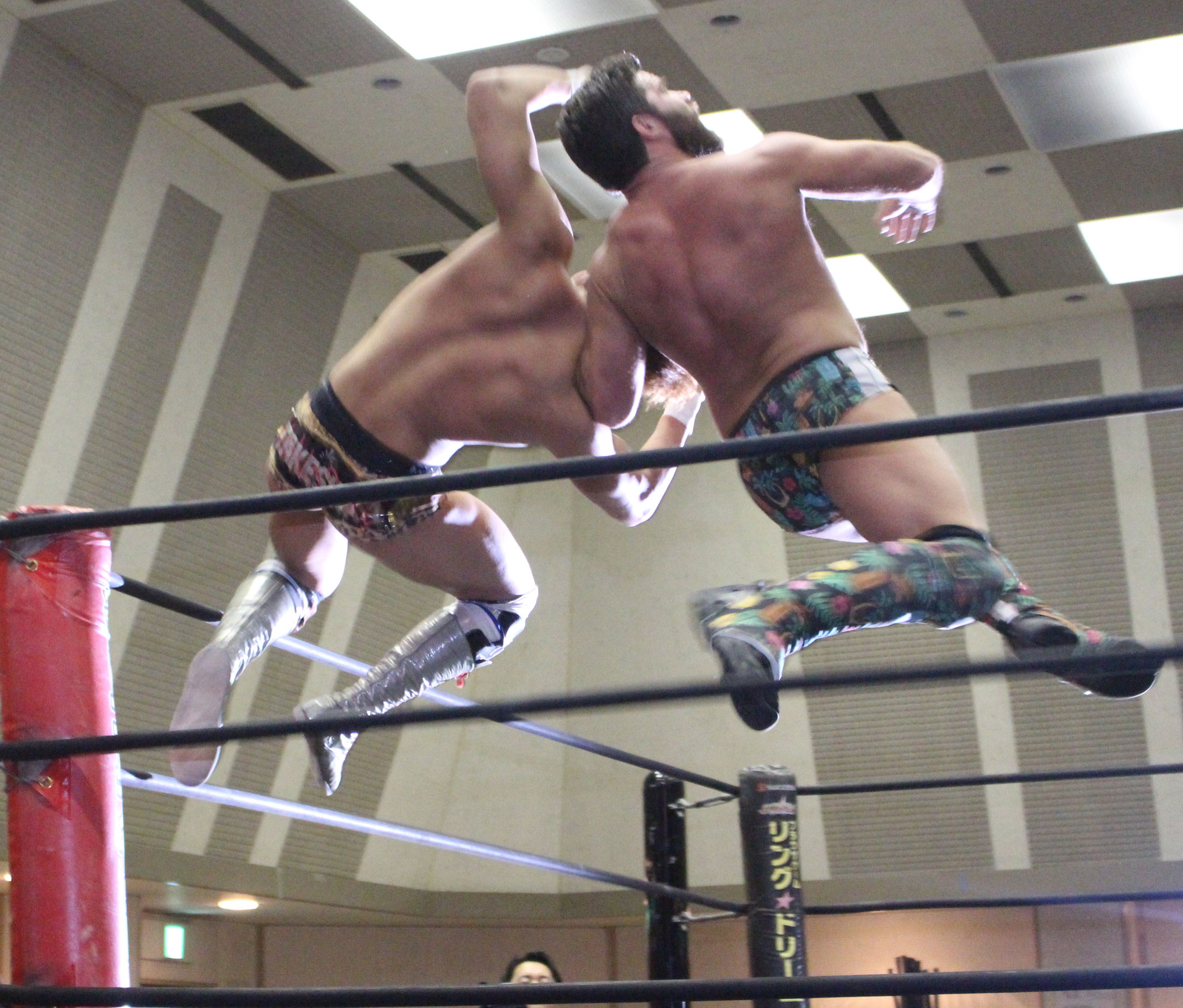 ※ダイビングダブルニードロップ もう1チームは高尾蒼馬&岩崎孝樹◇第4試合◇