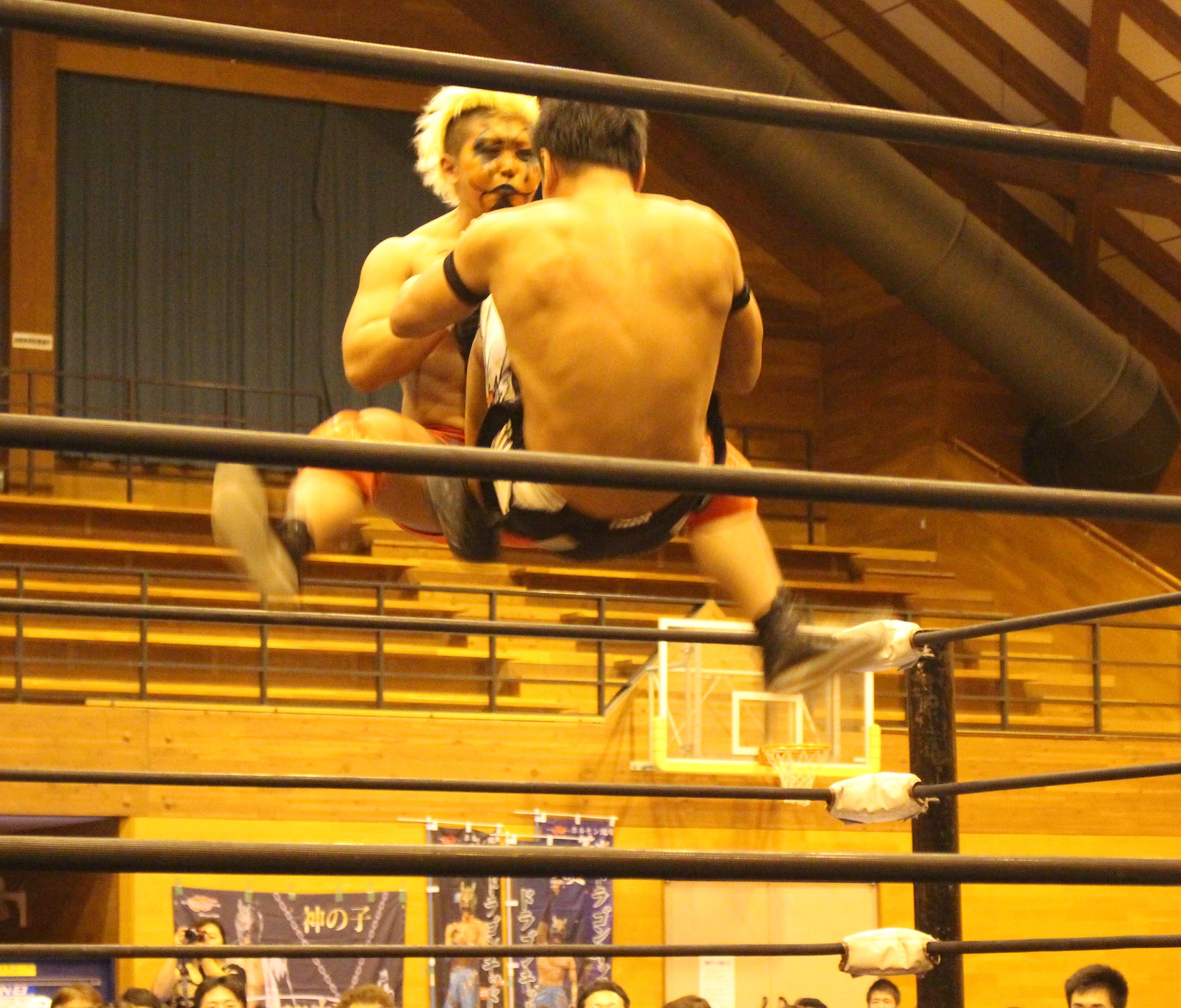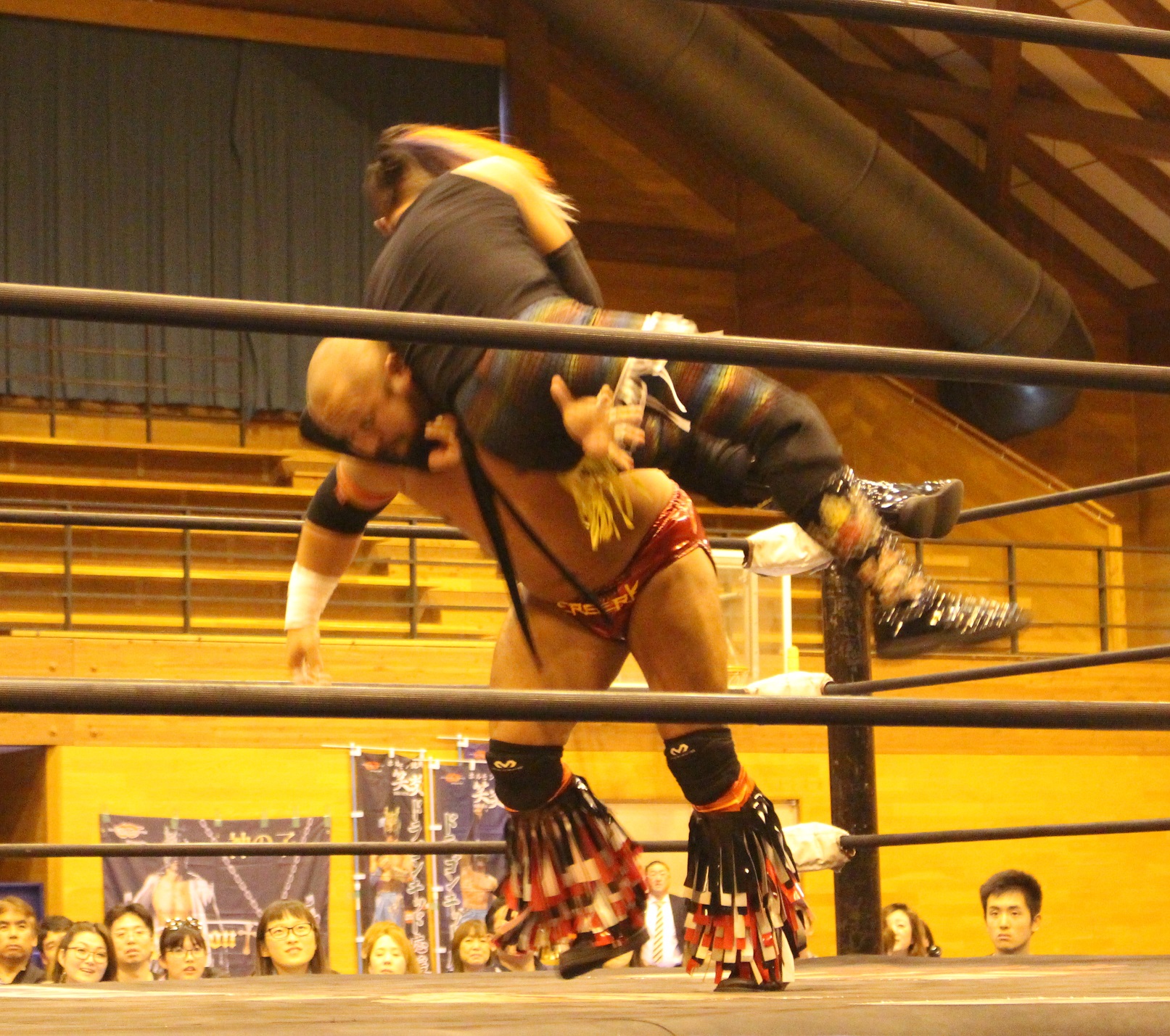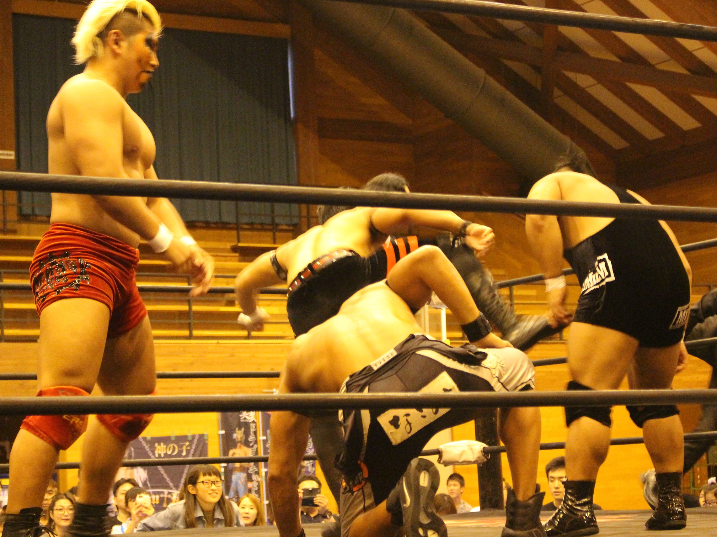 第3試合のオーバージェネレーションvsMaxiMuMでゴングキッズタイムが行われ、MCでファンに改めてKagetoraがオーバージェネレーション入りしたことを発表して紹介、女の子二人がゴングを鳴らすが、Ben-Kにビビッてしまい、3回もゴングが不発。セコンドのCIMAもBen-Kにツッコミ、さすがのBen-Kも苦笑いする。