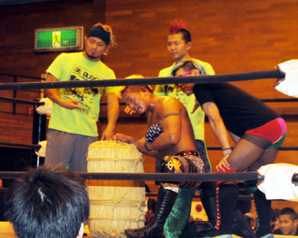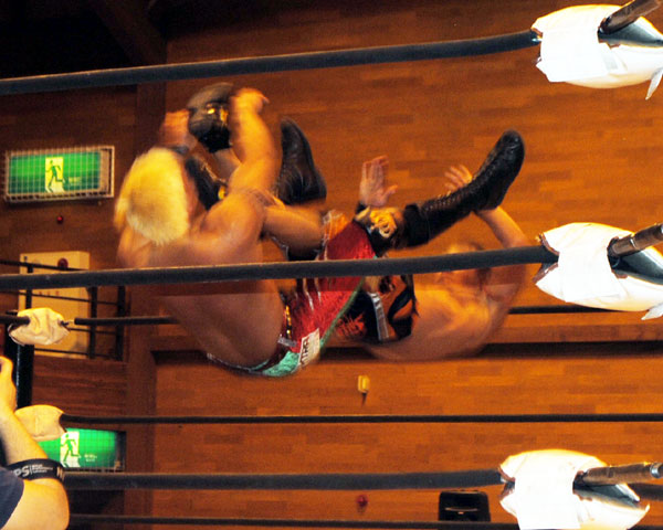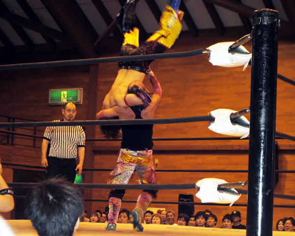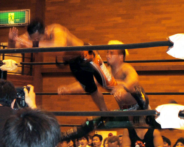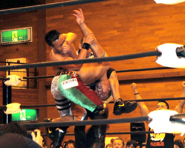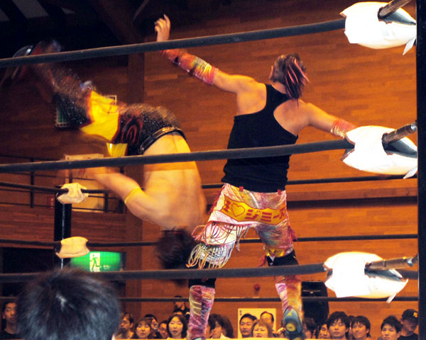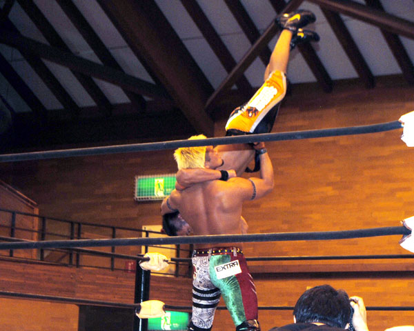 ○ジミー・ススム ジミー・神田 Mr.キューキュー“谷嵜なおき"豊中ドルフィン(11分28秒 体固め)土井成樹 サイバー・コング ×問題龍