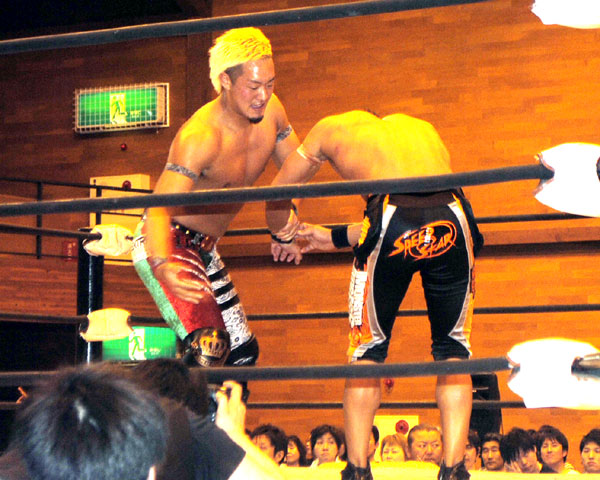 鷹木信悟 ○戸澤陽(13分39秒 デッドリフトジャーマン・スープレックス・ホールド)ドラゴン・キッド Xスペル・シーサー