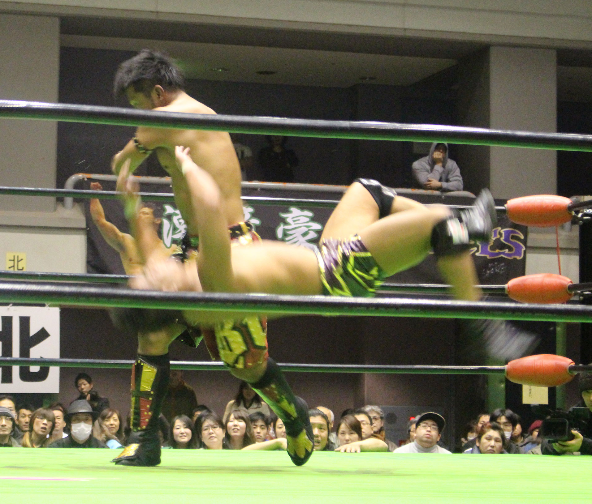稔「今日はYO-HEY&HAYATAが防衛すると思ってたけど…まぁいいや。GHCジュニアタッグ、いただきにまいりました」