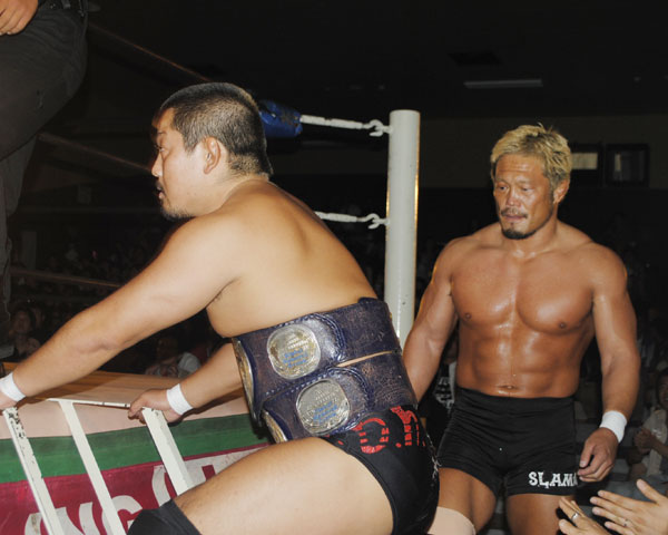 セミのGHCタッグ選手権(王者)丸藤正道、杉浦貴vs(挑戦者)矢野、飯塚は王者組が奇襲をかけて先手を奪うも、CHAOSがラフで流れを変えると二人がかりの攻撃などで主導権を握り続ける、解説の佐々木健介は「丸藤は怒るべきなのでは」とコメントしていたが、丸藤の長所であるマイペースさがこの試合に限っては欠点になってしまっていた。終盤には王者組が連係で矢野を捕らえ一気に勝負に出るが、場外の丸藤が飯塚によって手錠に拘束され鉄柵に固定されると、孤立した杉浦が飯塚のアイアンフィンガー、矢野の急所打ち、鬼殺しからの鏡割で3カウントを奪い王座奪取、内容的にもCHAOSの完勝で試合後に丸藤が鉄柵を蹴り上げて怒りを露にするが、遅すぎたとしか言いようがなかった。